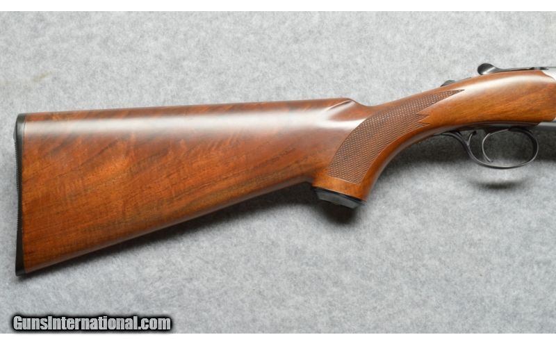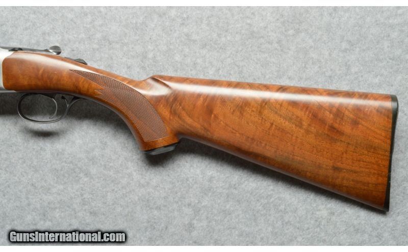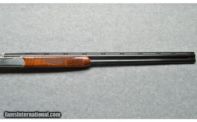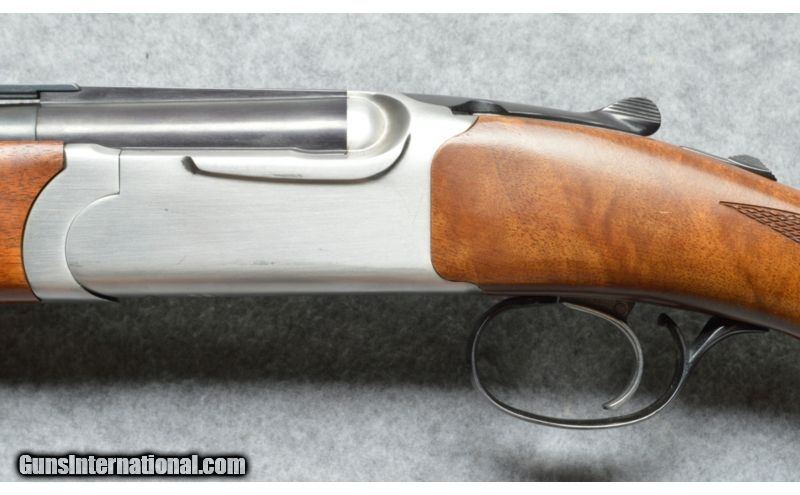 Description: Lower barrel choke has damage. May have been partially unscrewed at last firing. SOLD Manufacturer: Modern Manufacture. Caliber Info: 28 Gauge Chambers: Break action over under. Metal Condition: Semi gloss bluing on the barrel with no signs of wear, receiver is finish in satin stainless steel. Wood Condition: Natural finish walnut checkered stock and matching fore end. Bore Condition: Bright and shiny. Barrels: 28 inch round blue barrels. Triggers: Single stage trigger, barrel select safety on the rear tang. Stock Dimensions: 14 1/8 inch LOP. Fore End: Checkered walnut fore end to match the checkered pistol grip stock. Butt Pad: Black synthetic butt pad. Weight: Interchangeable chokes, upper and lower are both Full. Sights: Gold dot at the muzzle. Chokes: Interchangeable chokes, upper and lower are both Full. Item Location: Berlin, MA |
