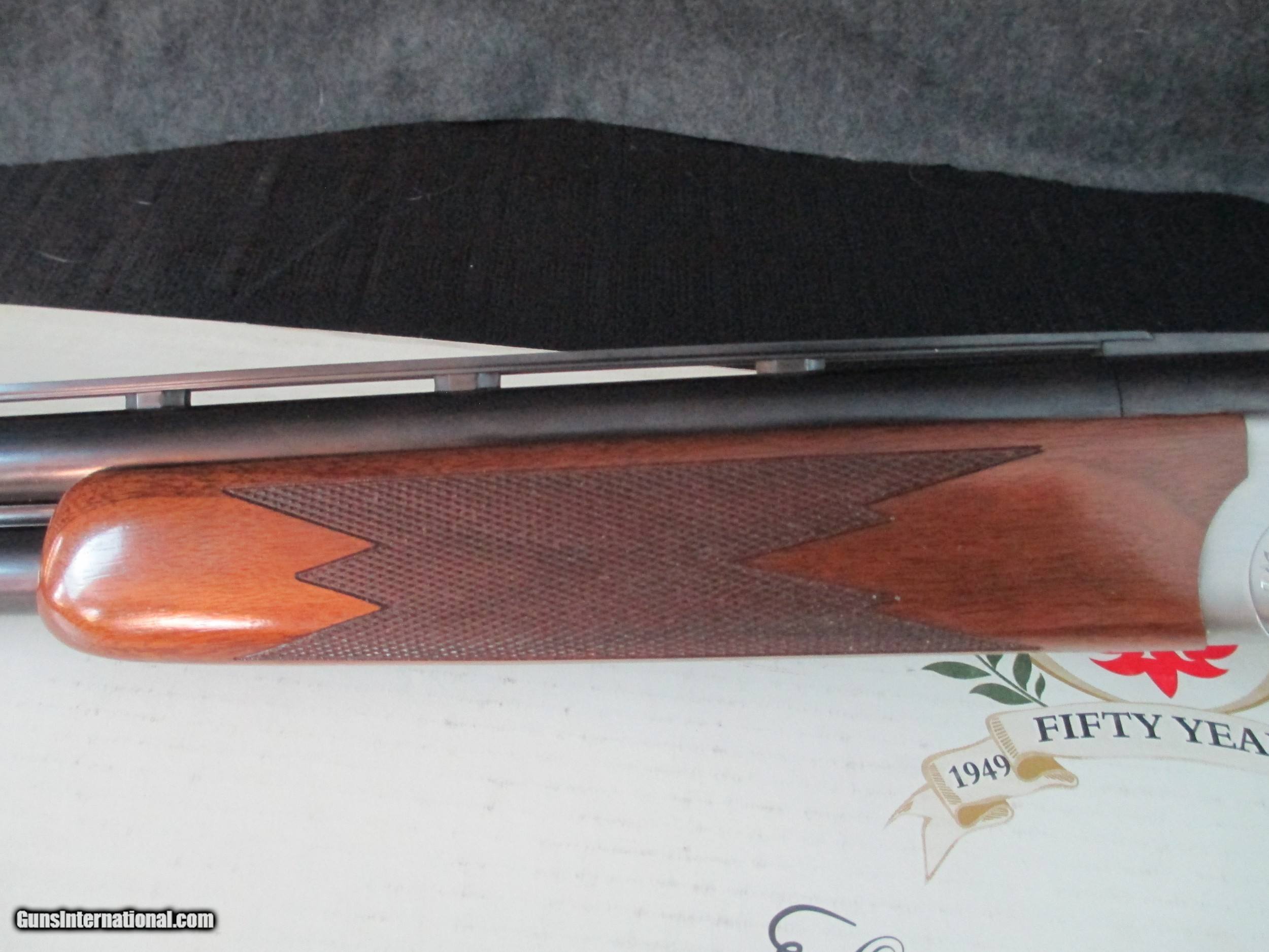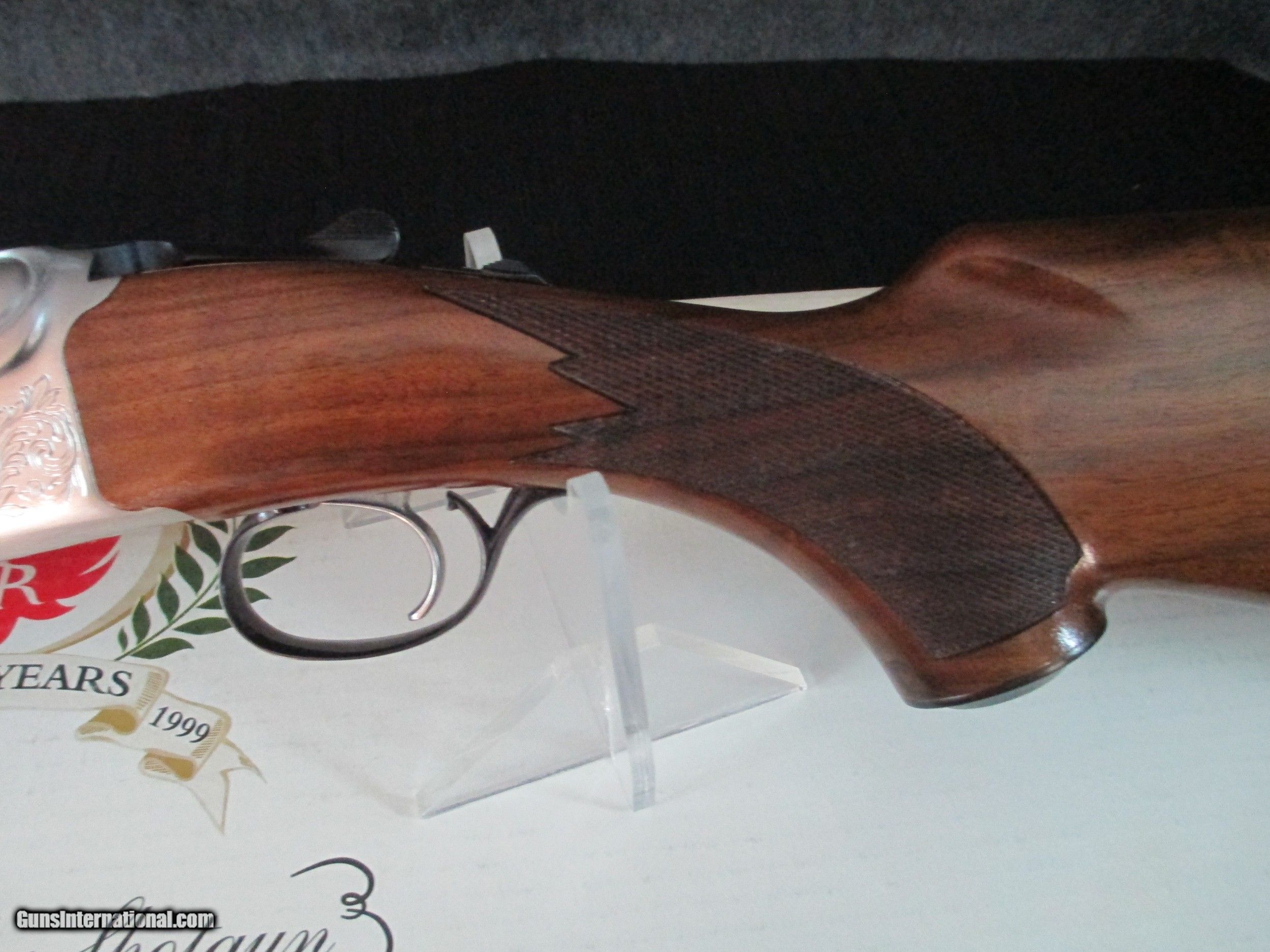 Description: SOLD .Ruger Red Label 50th Anniversary .12 gauge with 28 inch vent rib barrels. Metal is excellent. Beautiful shotgun. Lockup lever is well to the right of center indicating little or no use. Gorgeous wood. Has a couple of tiny marks at heel of stock--TINY. Auto ejectors, single selective mechanical trigger, and auto safety. Comes with original box, manual, choke tube set, and choke tool. I am not a dealer. These come from a private collection. I have one of these in .28 ga, .20 ga, and .12 ga. Can be bought as a set. Call for special pricing on the set. You will need to find a dealer who will accept shipment from a private individual. If interested, it is best to call or text me. 417-844-5828 SOLD Manufacturer: Ruger Model: Red Label Serial Number: 411-34856 |