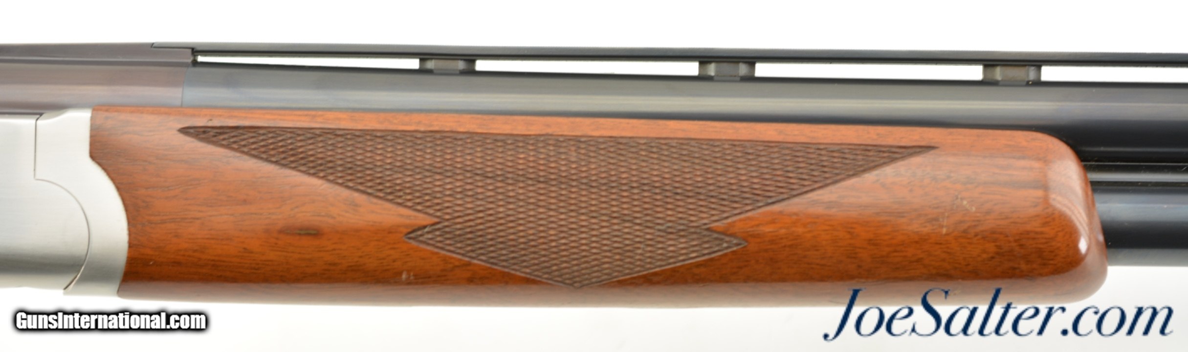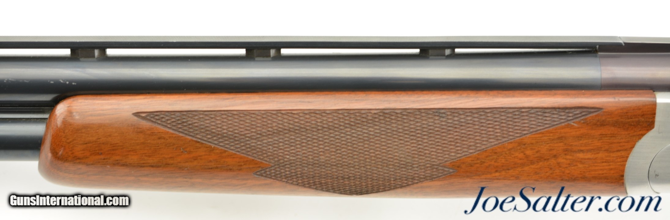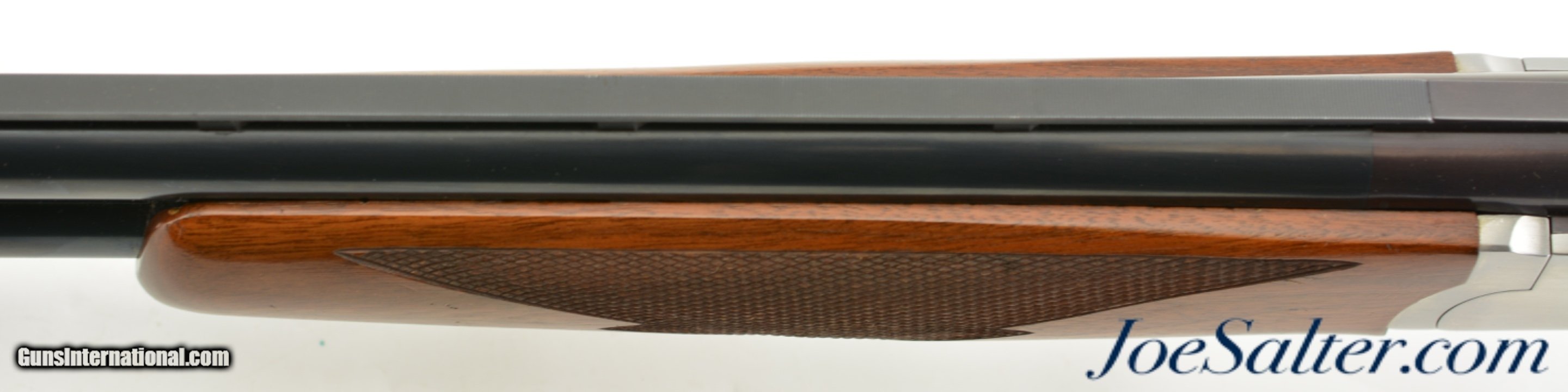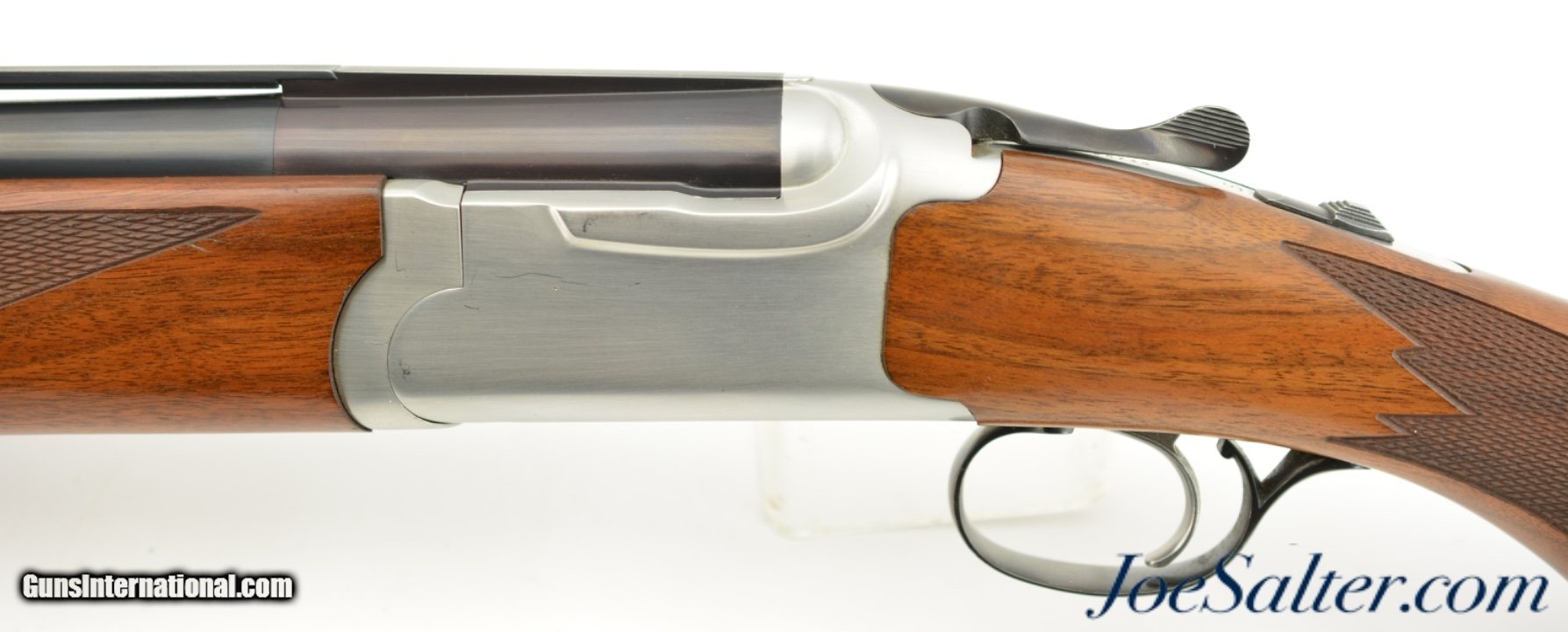 Description: Serial #410-26745, 12 Gauge (3" Chambers), 26 inch vent rib barrels with bright, excellent bores with Ruger screw in chokes of Improved Modified and Improved Cylinder. This is the Ruger Red Label over/under shotgun manufactured in 1987 featuring selective ejectors. In excellent condition the single trigger, barrel select safety retains about 96-98% of the original blue finish on the barrel with slight wear at the muzzle and scattered mild use marks and scratches with the receiver showing the same. The checkered walnut stock and forearm are likewise excellent showing slight use marks and finish level contusions. The LOP is 14" over the original Ruger black rubber pad. A great multi purpose shotgun ready for the field or sporting clay course. It comes with the original manual and choke wrench. FFL SOLD |