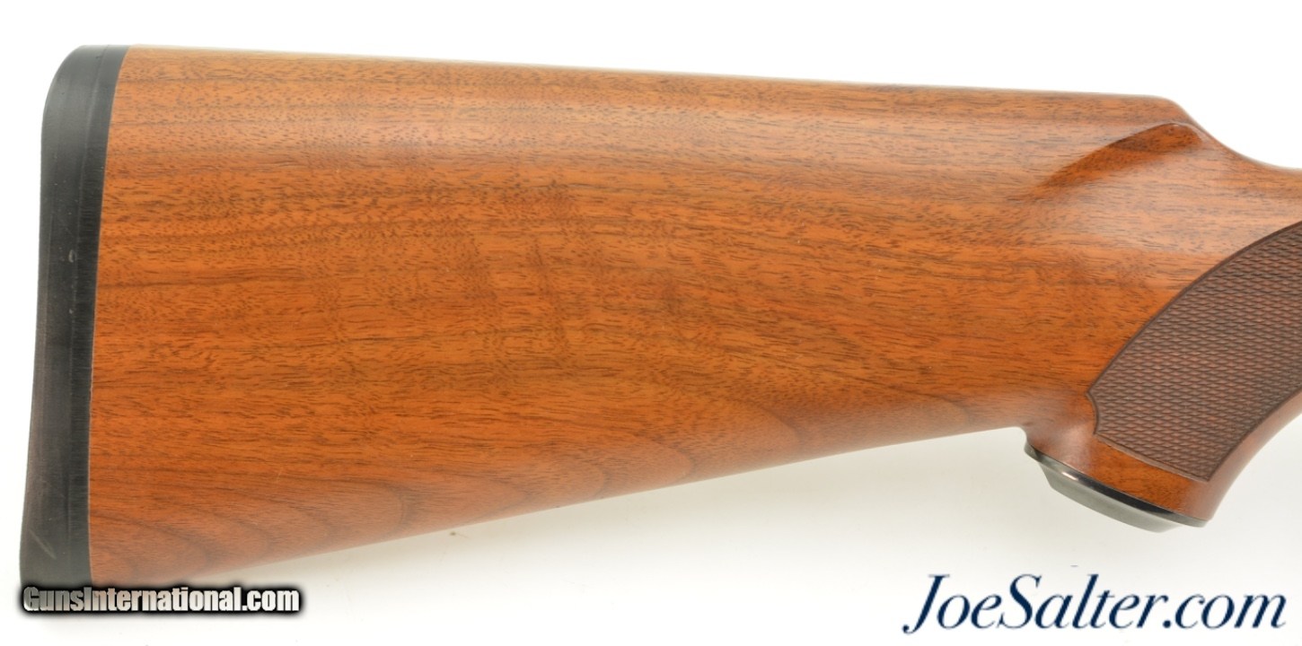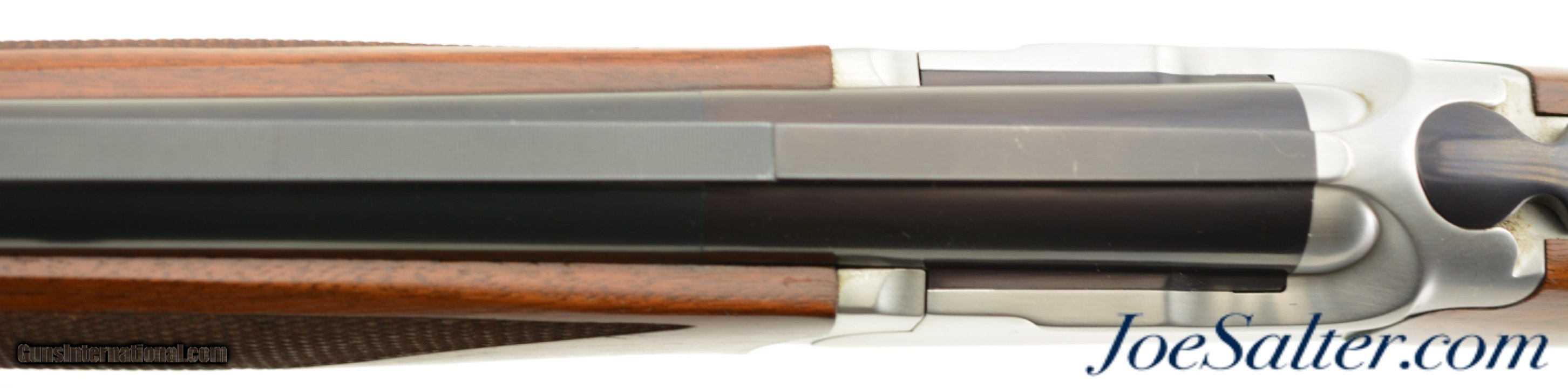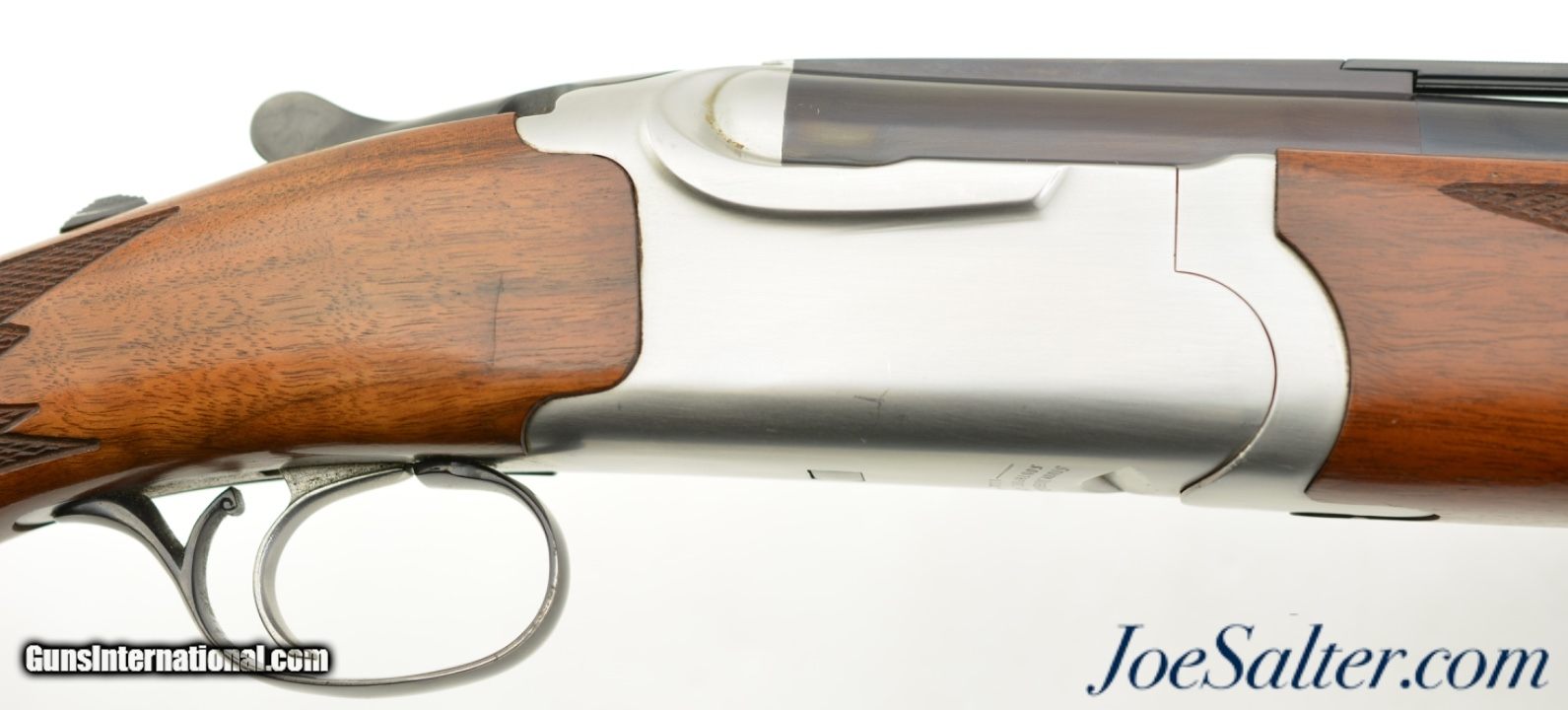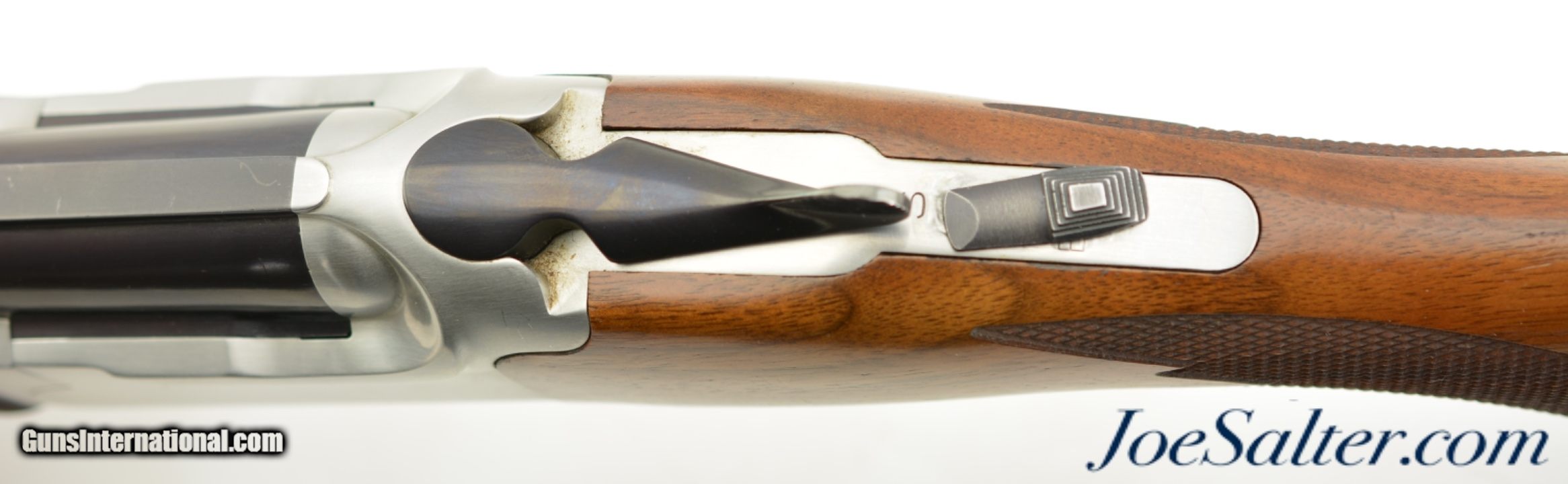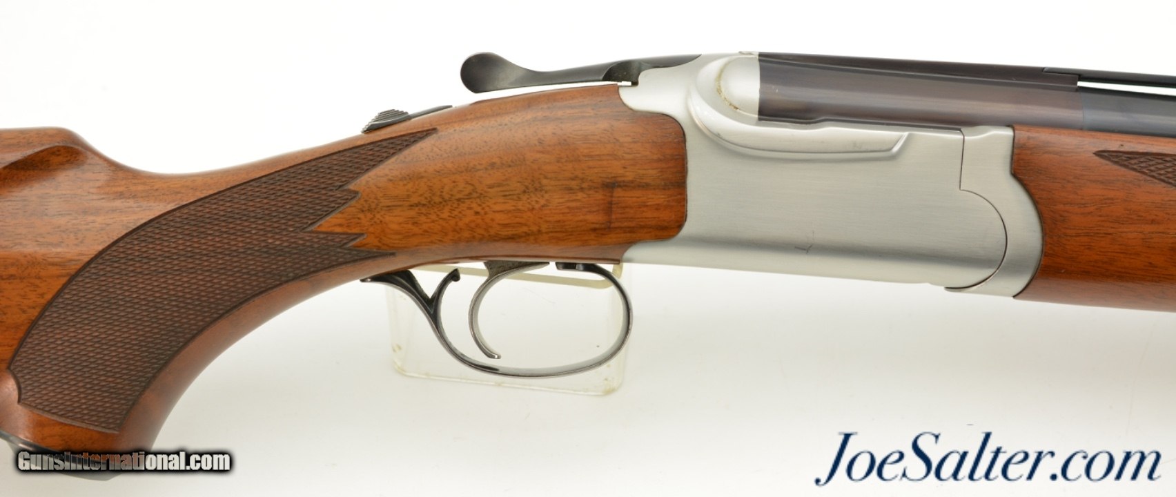 Description: Serial #410-26745, 12 Gauge (3" Chambers), 26 inch vent rib barrels with bright, excellent bores with Ruger screw in chokes of Improved Modified and Improved Cylinder. This is the Ruger Red Label over/under shotgun manufactured in 1987 featuring selective ejectors. In excellent condition the single trigger, barrel select safety retains about 96-98% of the original blue finish on the barrel with slight wear at the muzzle and scattered mild use marks and scratches with the receiver showing the same. The checkered walnut stock and forearm are likewise excellent showing slight use marks and finish level contusions. The LOP is 14" over the original Ruger black rubber pad. A great multi purpose shotgun ready for the field or sporting clay course. It comes with the original manual and choke wrench. FFL SOLD |
