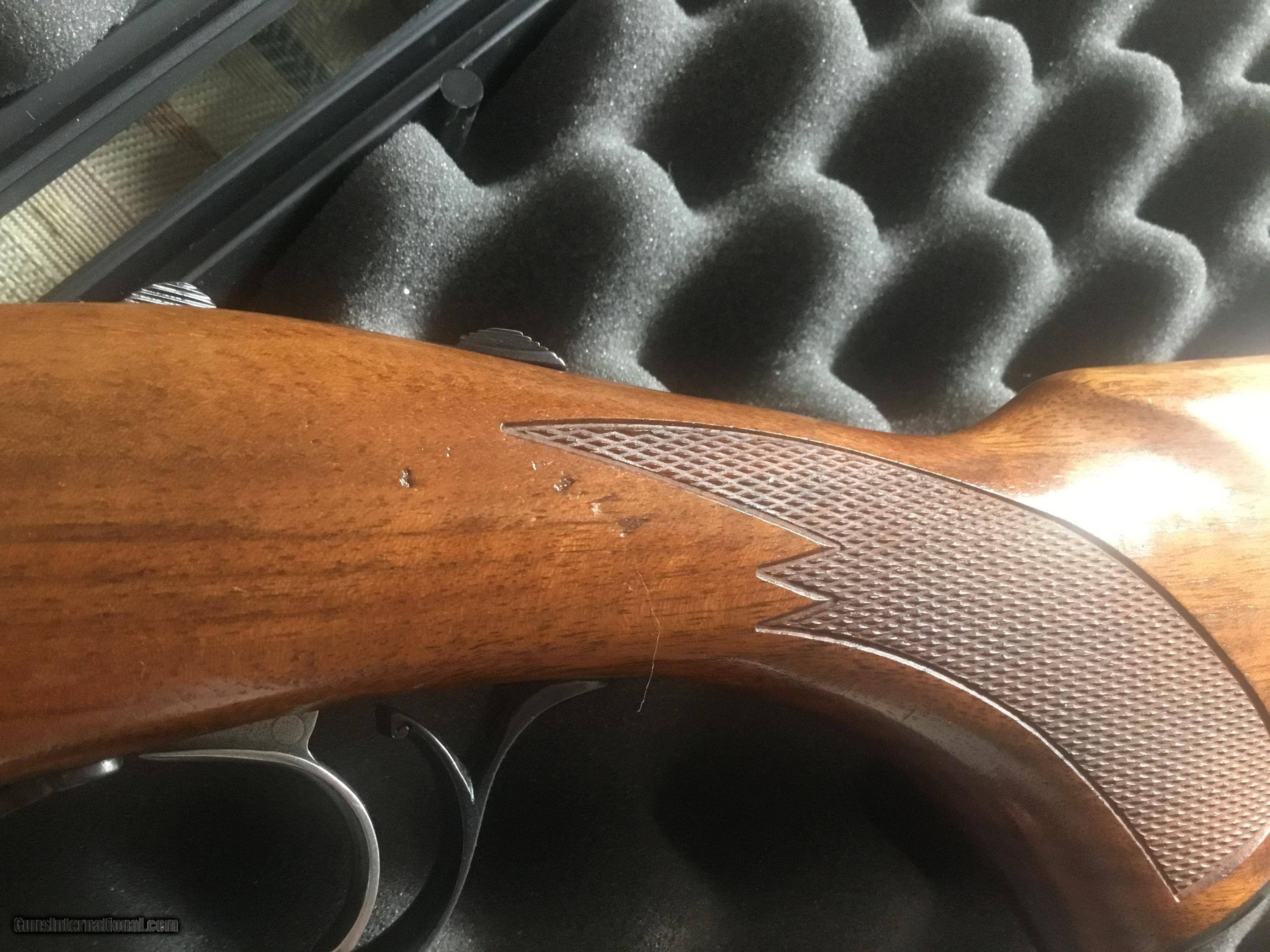 Description: Serial number dates it to 2006. This is a used shotgun. It weighs 6 lbs and has 28” vent rib (single bead), split barrels, with 6 choke tubes [SK-IC(2) -MOD(2)-FULL]. No tube wrench, but a government issued tube remover (a penny) works great (included). Photos do not show the 2 installed tubes (IC/MOD) The LOP is 14 & 1/4" over a pistol grip. Single selective trigger with automatic safety, automatic ejectors. There are a few safe dings on the left side of the pistol grip and the right side of the vent rib so the price reflects the flaws. The gun is a flexible and unique upland field companion. Shipped in hard plastic case. $1,800 shipped to your FFL. No trades pls. At the suggestion of a more experienced seller, I have added pictures of the muzzle, butt plate, stock wood, and ejectors. For those unfamiliar with automatic ejectors, only the fired shells are flung out of the action when opened. SOLD Shotgun Gauge: 28 Gauge Manufacturer: Ruger Model: Red Label Barrel Length: 28” Ejectors: Yes Condition: Good Rib: Yes Weight: 6 lbs Extras: Tubes Case: Yes Item Location: VA |