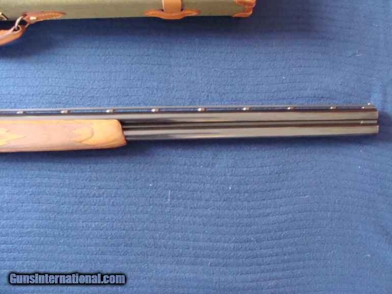 Description: New, in carry case, test fired only,12 ga over/under shotgun, 28 inch barrels with full, modified and open cylinder, screw in chokes. Gun valued by FFL dealer as 98% plus. There are a couple of very small scratches on the stock, bluing on the barrels is 98%. There were less than 3000 of the Woodsides made between 1995 and 2002, so they are fairly rare. I think this may be the one of the nicest examples in existence. SOLD |