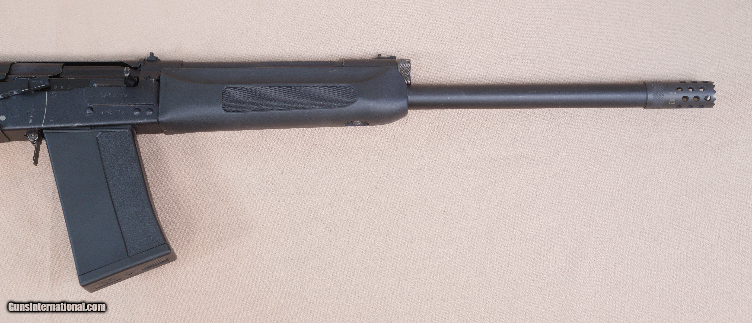 Description: **SOLD**Here we have a hard to find Saiga-12 CANTA semi auto shotgun in 12 gauge. The Saiga-12 is a shotgun available in a wide range of configurations, patterned after the Kalashnikov series of rifles and named after the Saiga antelope native to Russia. Like the Kalashnikov rifle variants, it is a rotating bolt, long-stroke gas piston operated firearm that feeds from a square magazine. All Saiga-12 configurations are recognizable as Kalashnikov-pattern guns by the large lever-safety on the right side of the receiver, the optic mounting rail on the left side of the receiver and the large top-mounted dust cover held in place by the rear of the recoil spring assembly. Saiga firearms are meant for civilian domestic sale in Russia, and export to international markets. This particular example is in pretty good overall condition with signs of use on both sides of the receiver and on the trigger guard. The muzzle device appears to be aftermarket and is made by SCM Tactical. The pistol grip cap is awol and there are some marks on the stock and a few gouges in the wrist area. The 18" barrel has a good bore. Though not perfect this Saiga-12 would make a good gun to put behind the seat of a pickup while working on the farm or ranch. PRICE: $695.00 We are Antique & Modern Firearms in Lexington, KY, a dealer of fine firearms since 1974. PH. 859-276-1419 We Buy, Sell, and Trade Firearms & Knives. Have an Individual Firearm, Firearms Collection, or Firearms Estate to sell, let us know, and we can buy or consignment sell it for you. NOTE: No additional fee for a Credit Card payment. SOLD Shotgun Gauge: 12 Gauge Manufacturer: Izhmash Model: Saiga-12 CANTA Serial Number: M08404260 Barrel Length: 18 inches Condition: Good Metal Condition: Good Bore Condition: Very Good strong rifling Action: Semi Automatic Item Location: Kentucky |