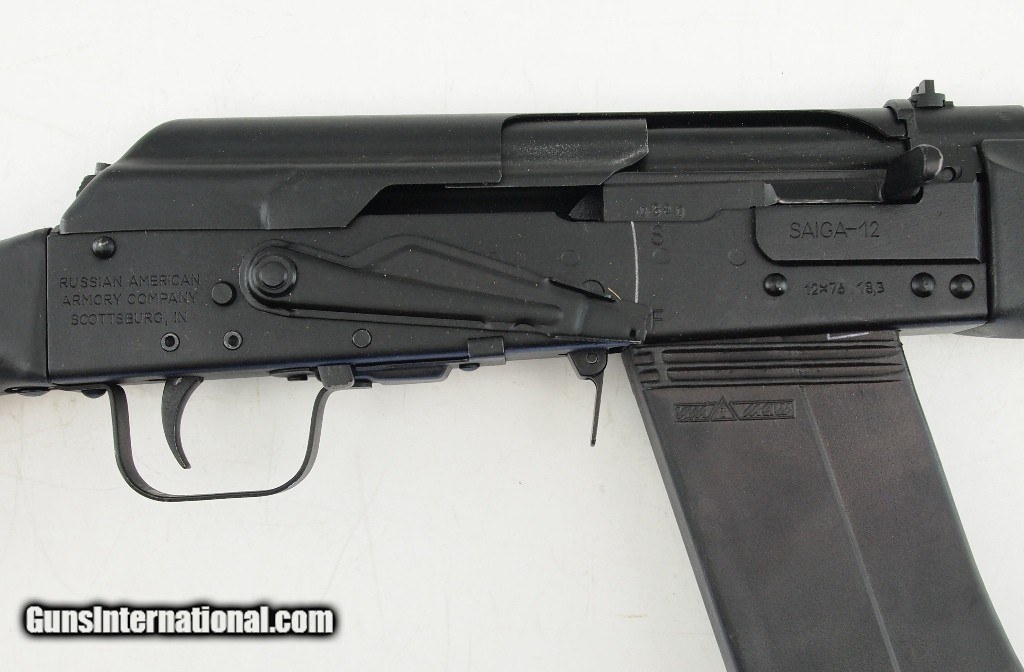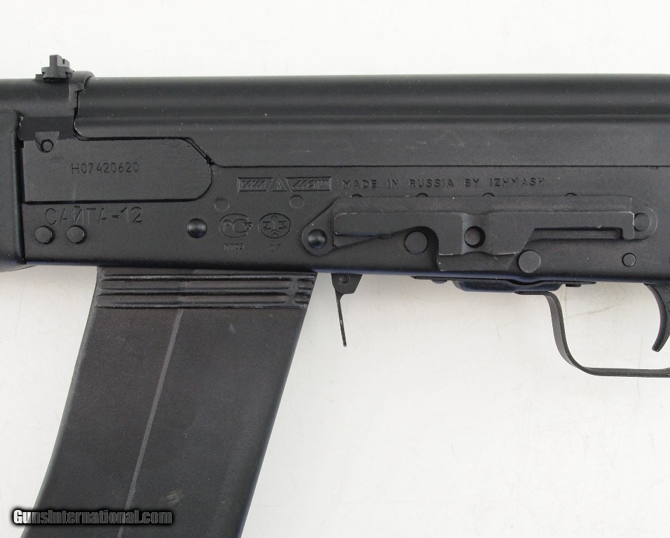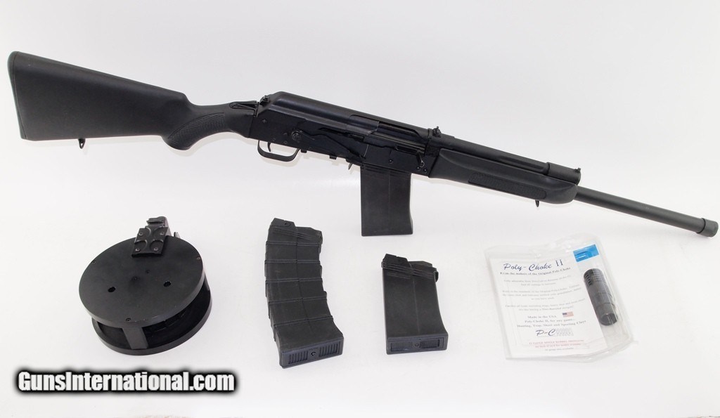 Description: IZHMASH Saiga 12 12 GA, 19" bbl, bright shiny smooth bore, black finish, rear notch sight, white bead front sight, black checkered butt stock - forearm, optics rail on left side of receiver, sling loops, LOP - 13 1/2", one Poly Choke II, two 5 round magazines, one 10 round magazine, one 15 round drum magazine. Add 3% for Credit Card Shipping $50.00 SOLD |