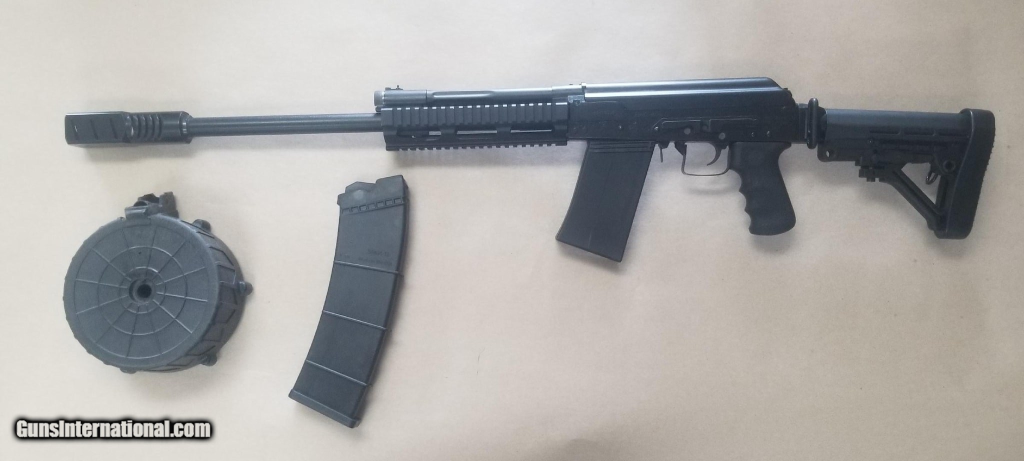Description: Guns Listing ID: 510476 THIS SHOTGUN IS AWESOME ! EQUIPPED WITH A MULTIPLE MAGAZINES ( 5 ROUND, 10 ROUND & 20 ROUND DRUM ). FEATURES THE US VERSION OF THE VEPR 12 \"MOLOT\" GK-01 BRAKE (MUZZLE BRAKE). THREE WEAVER/PICTANNY RAILS ADDED TO THE SHOTGUN FOR ADDITIONAL ACCESSORIES OF YOUR CHOICE. SOLD Manufacturer: IZHMASH Model: SAIGA 12 W/EXTRAS Condition: Used - Non-Certified Barrels: 18.5 BARREL Gauge Info: 12 GA Finish: BLACK |