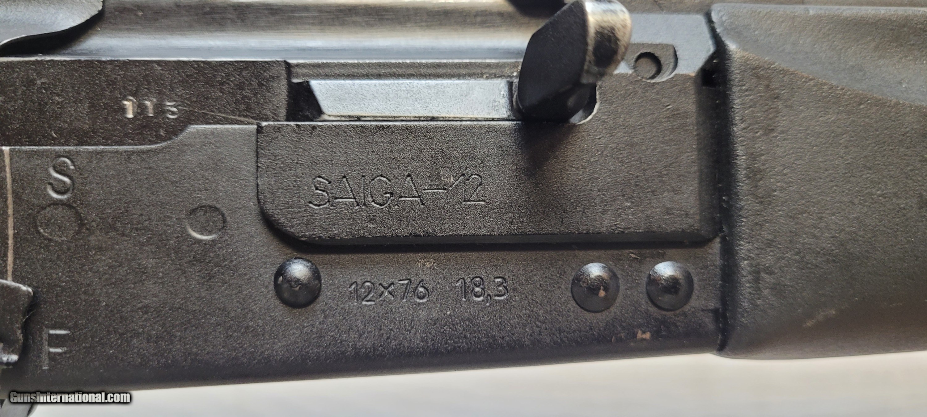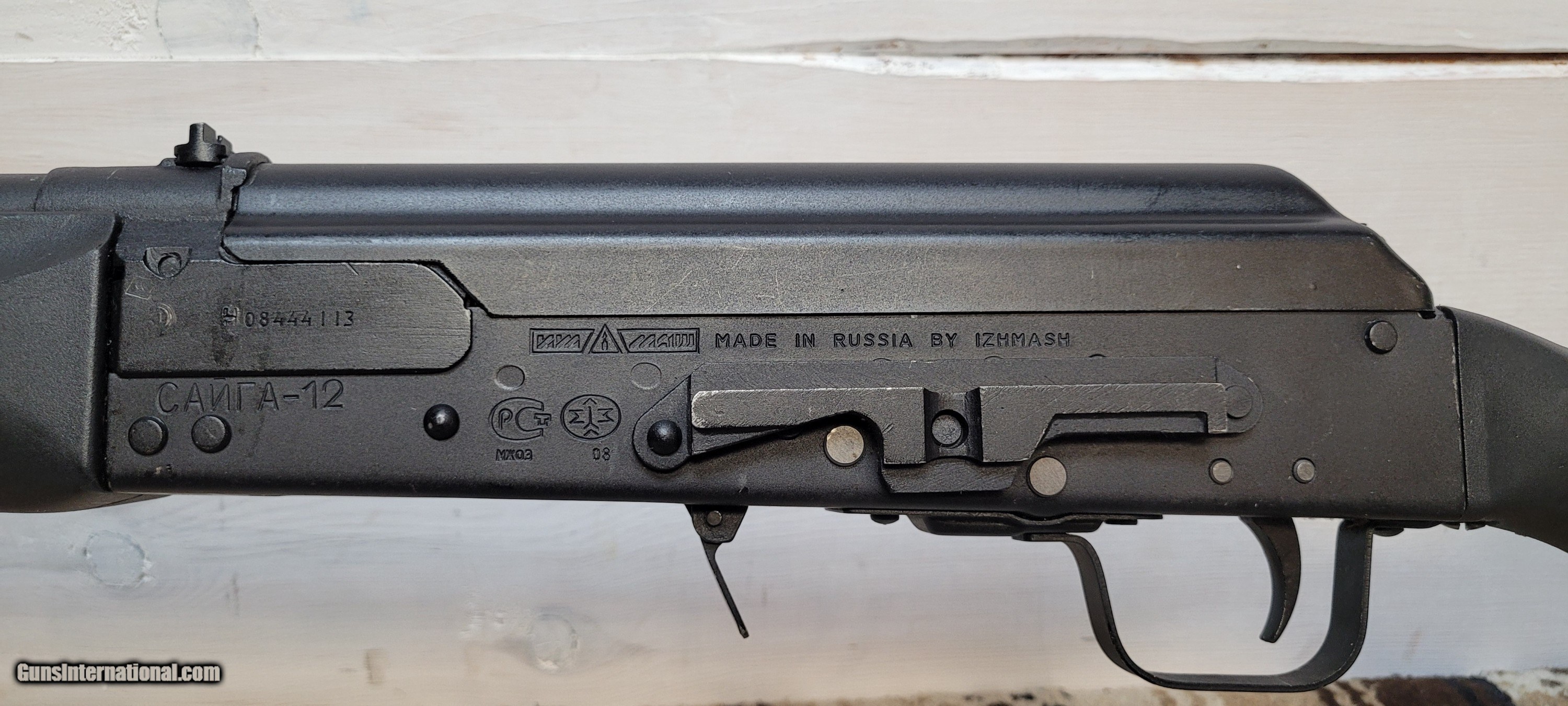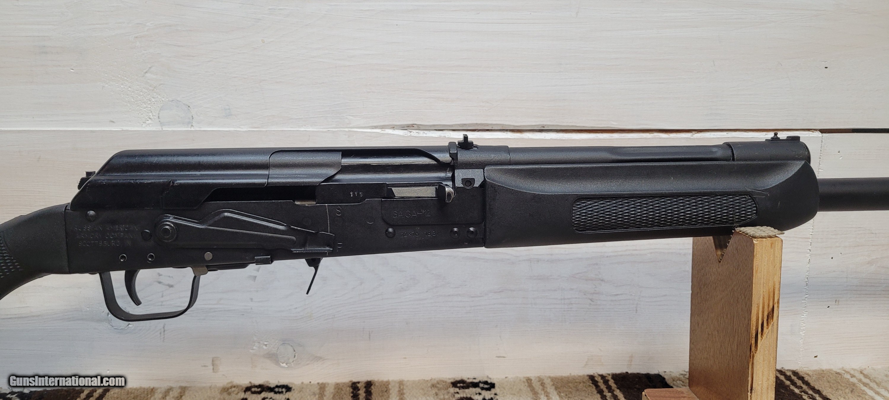 SOLD Shotgun Gauge: 12 Gauge Manufacturer: IZMASH Model: SAIGA Serial Number: H08444113 Condition: VERY GOOD Metal Condition: VERY GOOD Bore Condition: VERY GOOD Stock: POLYMER Fore End: POLYMER Butt Pad: RUBBER Sights: IRON |