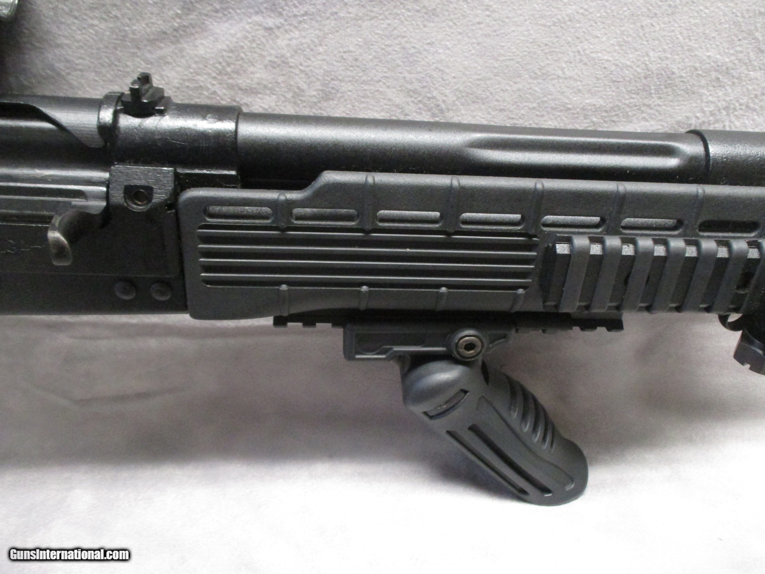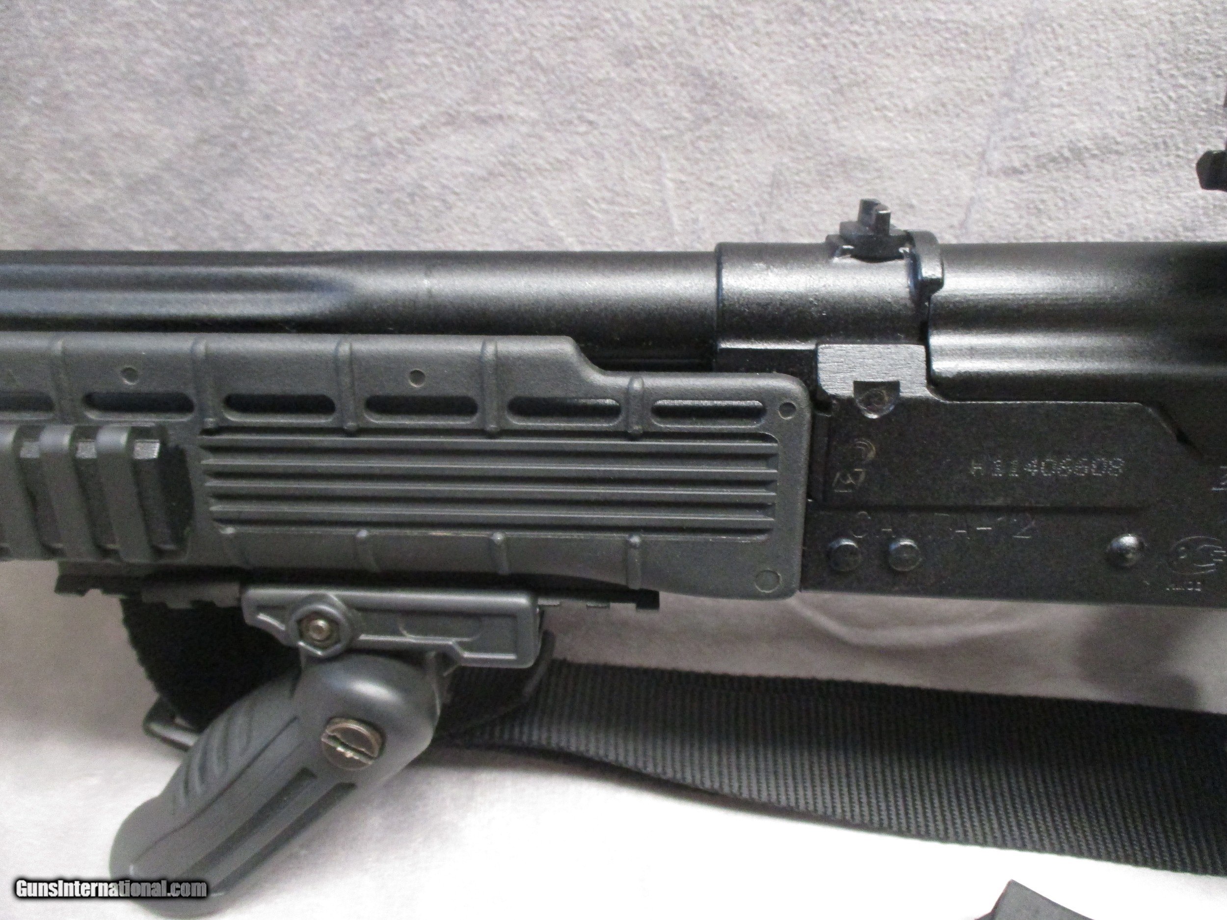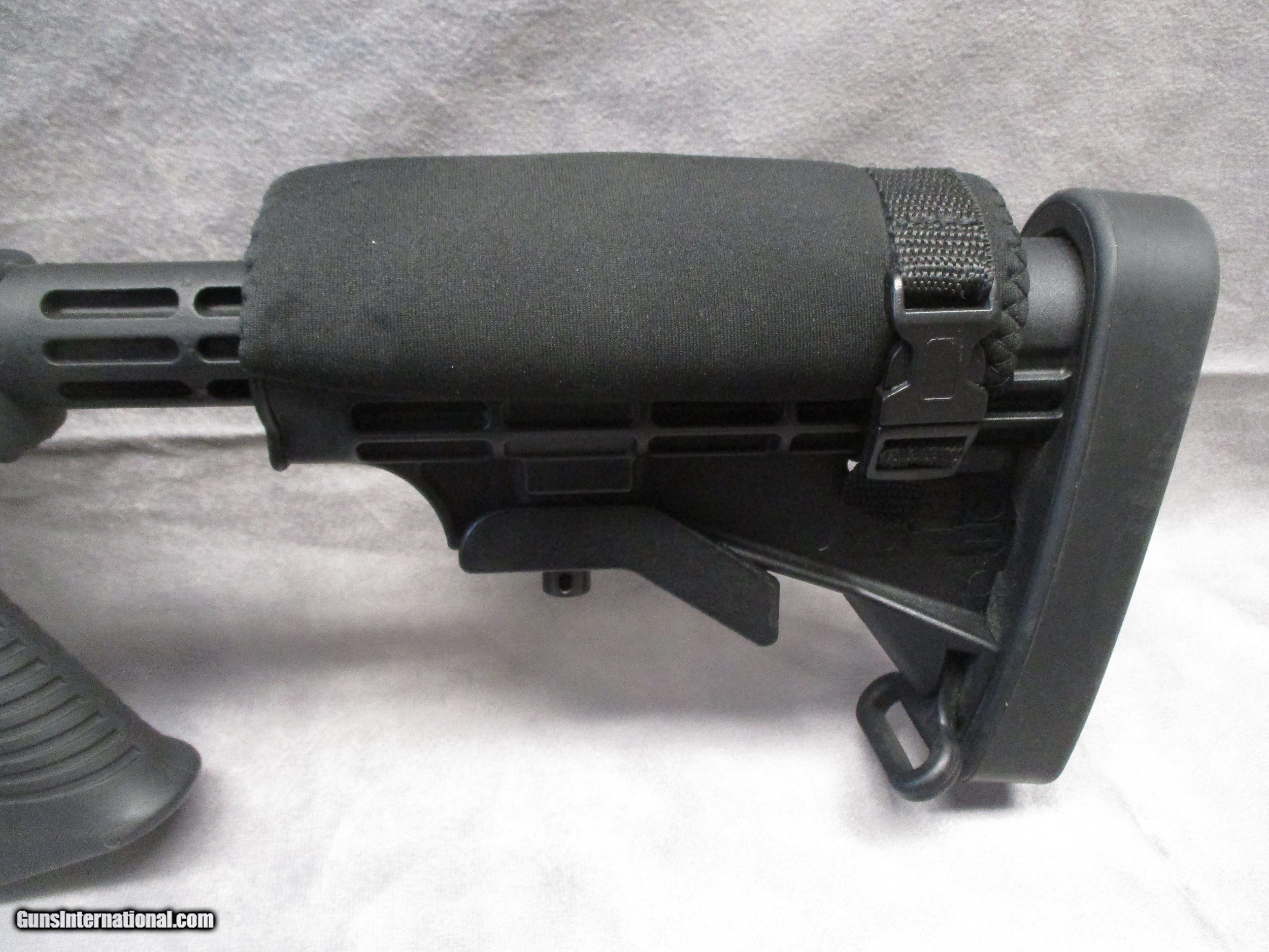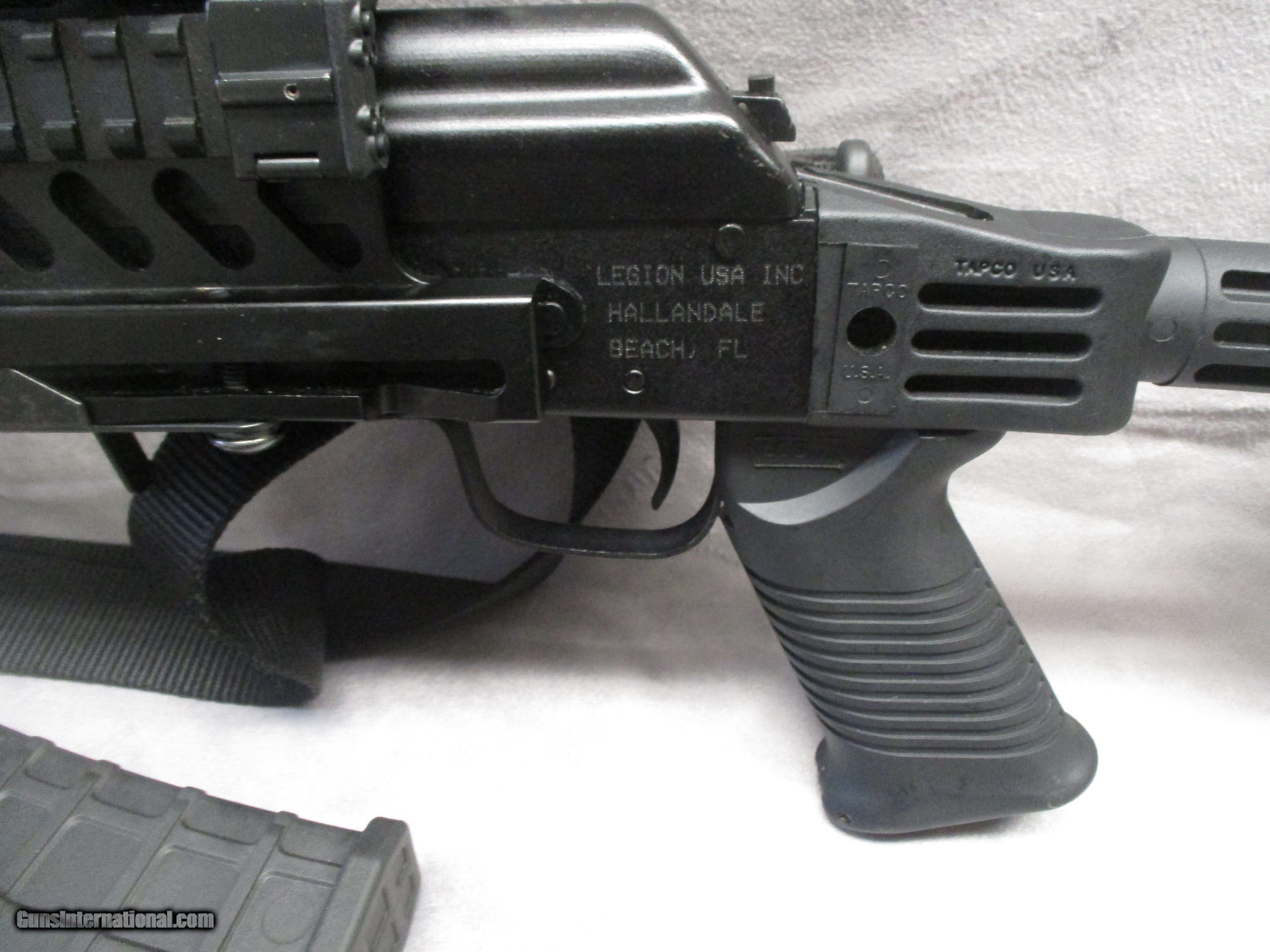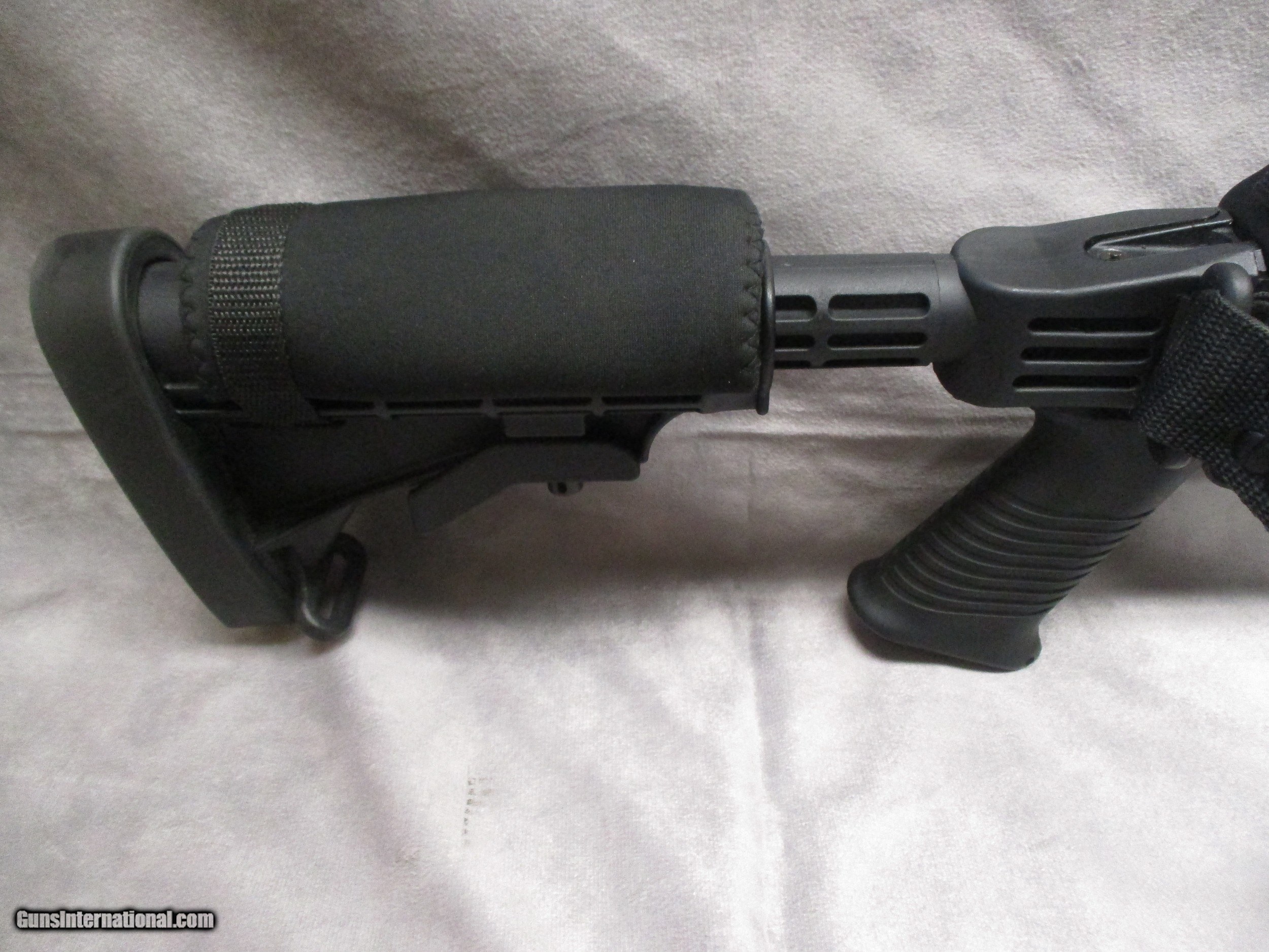 Description: The Saiga-12 is one of the most famous of semi-auto shotguns. It caused quite a stir when it first arrived on the market in the early 2000’s as it was unlike any other semi-auto shotgun that came before it. In a sense, it was the first of what would be considered today a tactical shotgun. They are hard to find today as they were banned from importation more than once over the years, most recently in 2014. Today, due to demand, original Saiga-12’s go for high prices and there are more than a few copycats exist and there are even AR15-style shotguns on the market as well. The Saiga-12 takes the basic and reliable AK-47 action scaled up to accept 12-gauge shells. The Saiga was fitted with an adjustable gas system to allow the use of both 2.75” and 3” shells. This particular Saiga is in good condition and like most of its siblings, has been modified with non-factory furniture to bring it up to modern day tactical standards. The original stock and fore end have been replaced by Tapco furniture. The former is an AR15-style with usual six positions while the latter features three picatinny systems on three sides (sides and bottom). The bottom rail is equipped with a folding vertical grip which has a few different positions. It is shown in the pictures angled forward for the purpose of keeping the Saiga upright while pictures are taken. A sling is attached on the right-hand rail. The butt has a rubber pad added to it as well as a cheek rest. An AK side rail has been added to the receiver and sports virtually every piece of equipment one would need, including a Bushnell red dot sight, a Mag-Lite LED flashlight, and a small laser sight. The shotgun is in good shape with some wear. There are some spots of pitting on the muzzle brake. Some of the furniture screws also exhibited some rust on the surface but these have been cleaned. The Receiver and barrel (minus the muzzle brake) do not exhibit any rust. The Bushnell red dot is powered by external light. The flashlight and laser do not currently have batteries. SOLD Shotgun Gauge: 12 Gauge Manufacturer: Legion USA Model: Saiga 12 Serial Number: H11406608 Bore: Smoothbore Chambers: 3.0 and 2.75 inches (76 and 70mm) Condition: Good to Excellent Barrel Type: Round Action: Semi-auto, gas piston Triggers: Single, AK-style trigger assembly Stock: Aftermarket AR-style collapsing type with pistol grip Fore End: Tapco polymer fore end with picatinny rails Butt Pad: Rubber LOP: 12.75 inches (324 mm) currently, adjustable Finish: Matte black Sights: Bushnell red dot sight, rear adj. & fixed front sights, sight radius 8.125 inches (206.375 mm) |