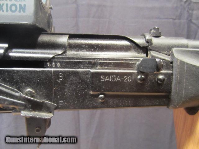 Description: SAIGA -20GA SEMI AUTO WITH POLY CHOKE INSTALLED. HAS COLLIMATOR SIGHT TWO CLIPS PINNED FOR 5 ROUNDS MANUAL AND FACTORY BOX FOR SIGHT WITH INSTRUCTIONS. NEED MORE INFORMATION ALWAYS BEST TO CALL OUR OFFICE 716-941-3946 SOLD |