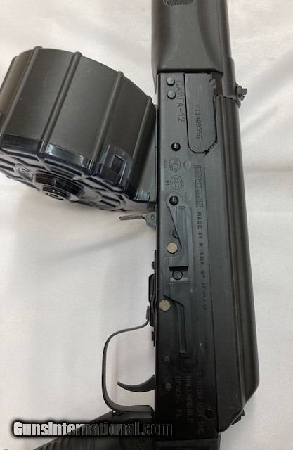 Description: Guns Listing ID: 576118 This made in Russia firearm is in very good condition as you can see from the photos with light wear from little use. It comes with a 12 round Pro Mag drum magazine, adjustable stock and sling swivels. This is the real thing not a copy. Buy with confidence and have fun!!! SOLD Manufacturer: SAIGA Model: CANTA-12 Condition: Used - Non-Certified Barrels: 1.9 BARREL Gauge Info: 12 GA Finish: BLACK |