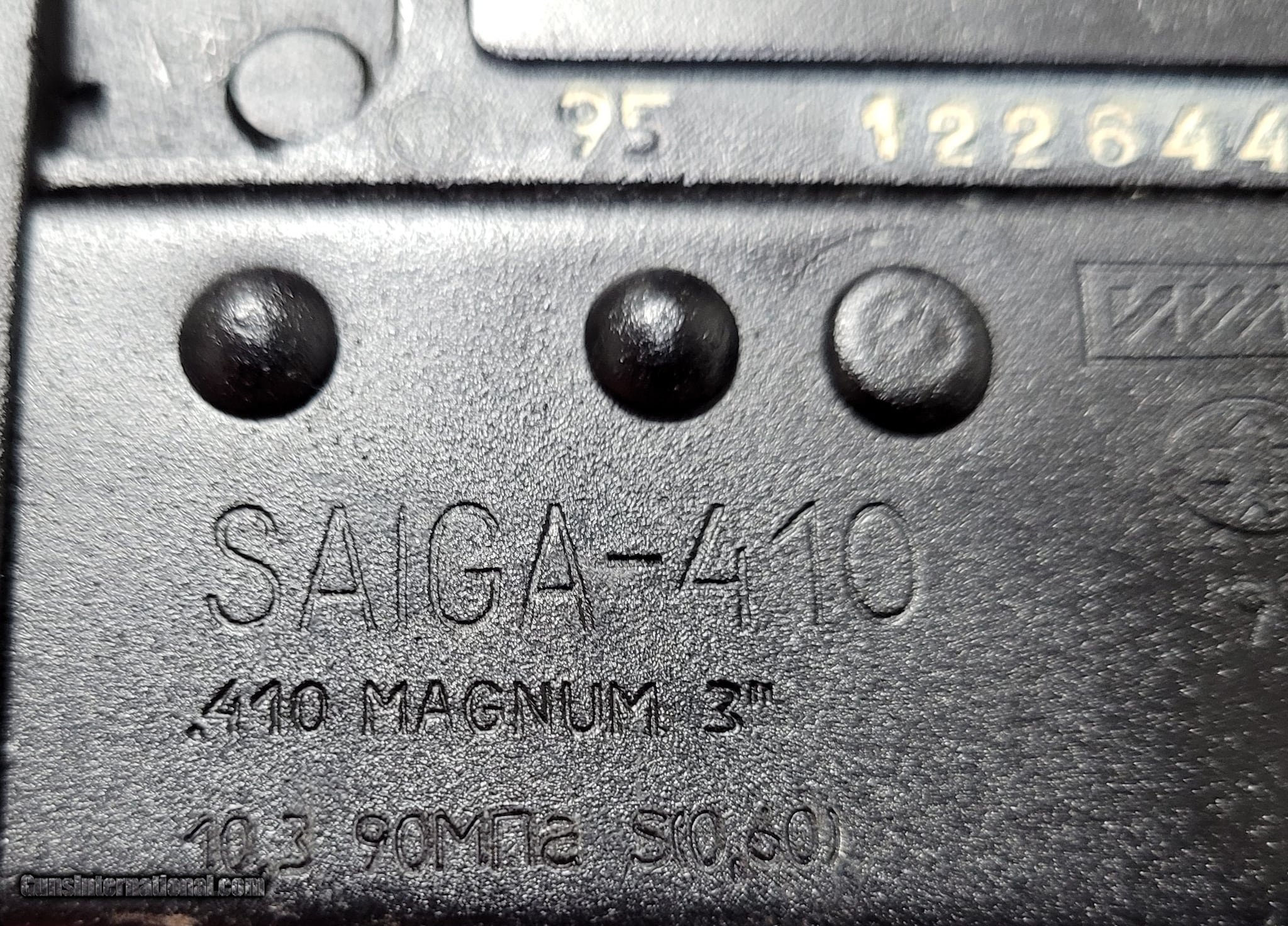 Description: Guns Listing ID: 817581 This item is a Saiga 410(ga) manufactured in Russia by Izhmash and imported by Kalashnikov USA. The firearm is in overall Very Good condition with only minor scuffs on the stock. This includes 1-5rd magazine and 1-30rd drum magazine. SOLD Manufacturer: SAIGA Model: saiga 410 Condition: Used - Non-Certified Barrels: 19 BARREL Gauge Info: .410 BORE Finish: BLACK |