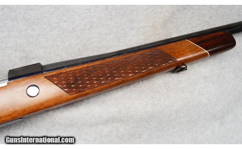 Description: SOLD Caliber Info: .30-06 Metal Condition: Very good with scratches. Wood Condition: Very good with handling marks. Bore Condition: Shiny with strong rifling. Barrels: 24 Stock: Checkered walnut. Fore End: Checkered walnut. Butt Pad: Pachmayr recoil pad. Weight: 7-lbs., 10-ozs. Sights: Receiver milled for Sako rings. Item Location: Fort Worth, TX |