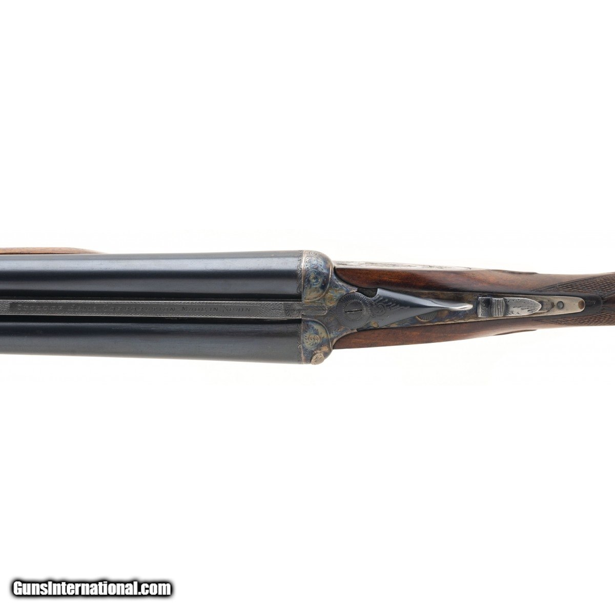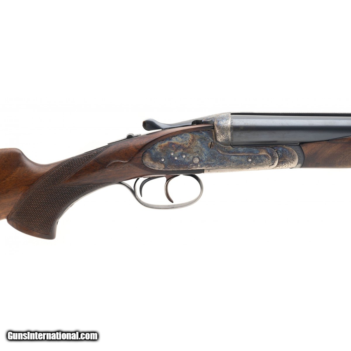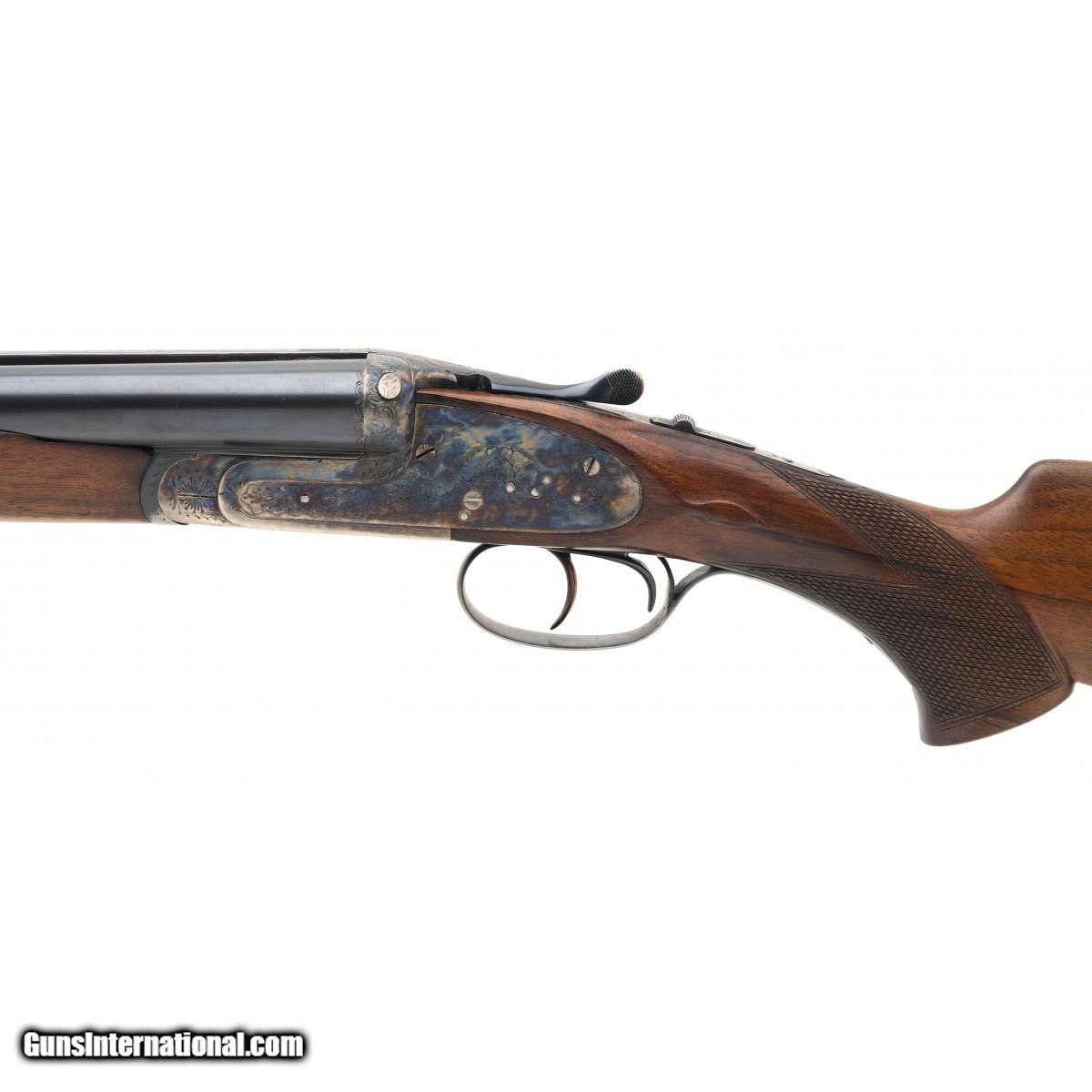 Description: " SN: 173848. Made circa 1970's. 12 gauge with 27.5"" barrels. improved cylinder chokes. Bore is excellent. Side by side field gun. Receiver with case colors in good condition with areas starting to thin. Barrels with blue finish in very good condition with areas beginning to thin. Wood stock is in excellent condition. Overall condition is very good. Comes with case. Consignment SOLD |