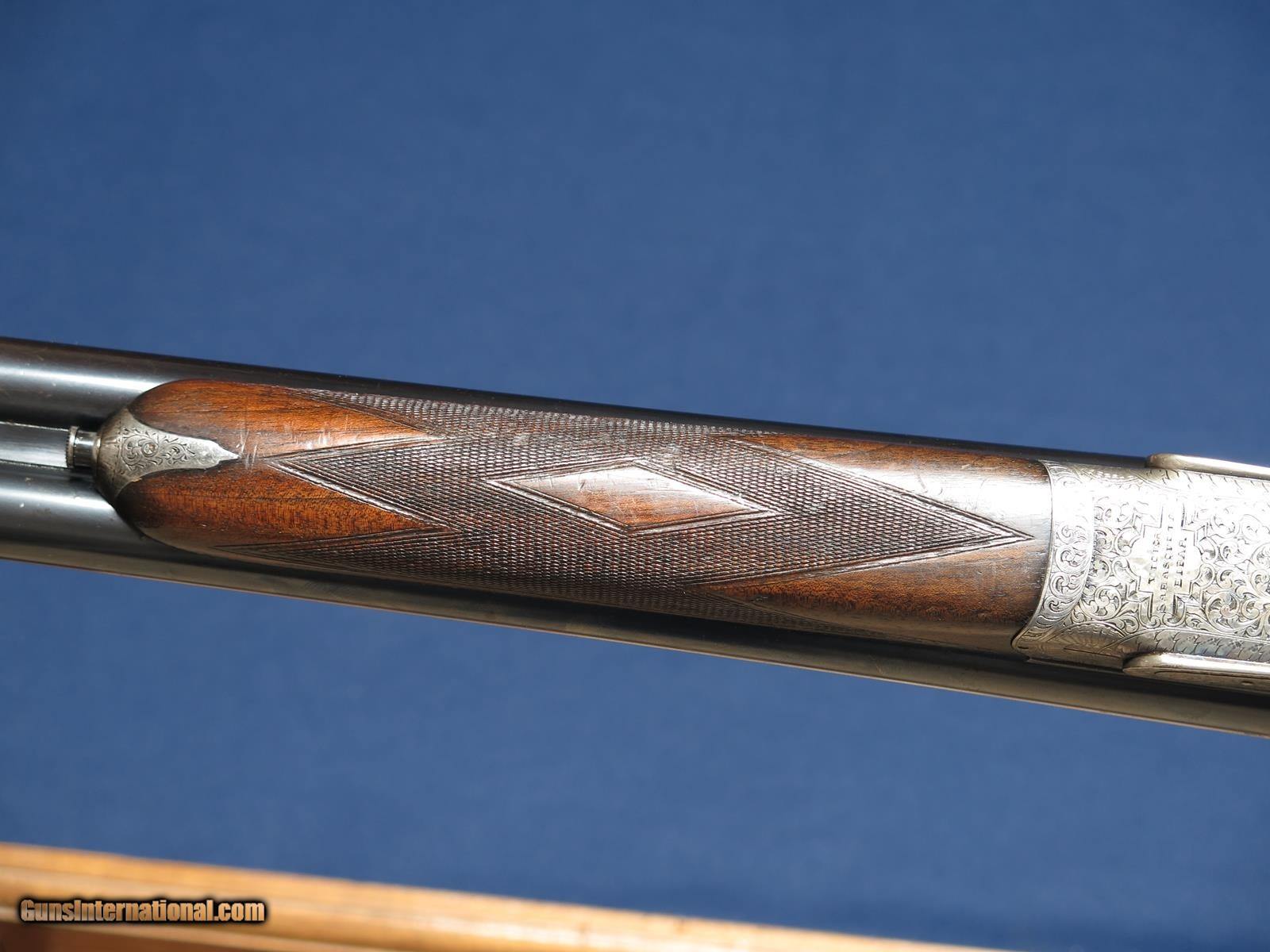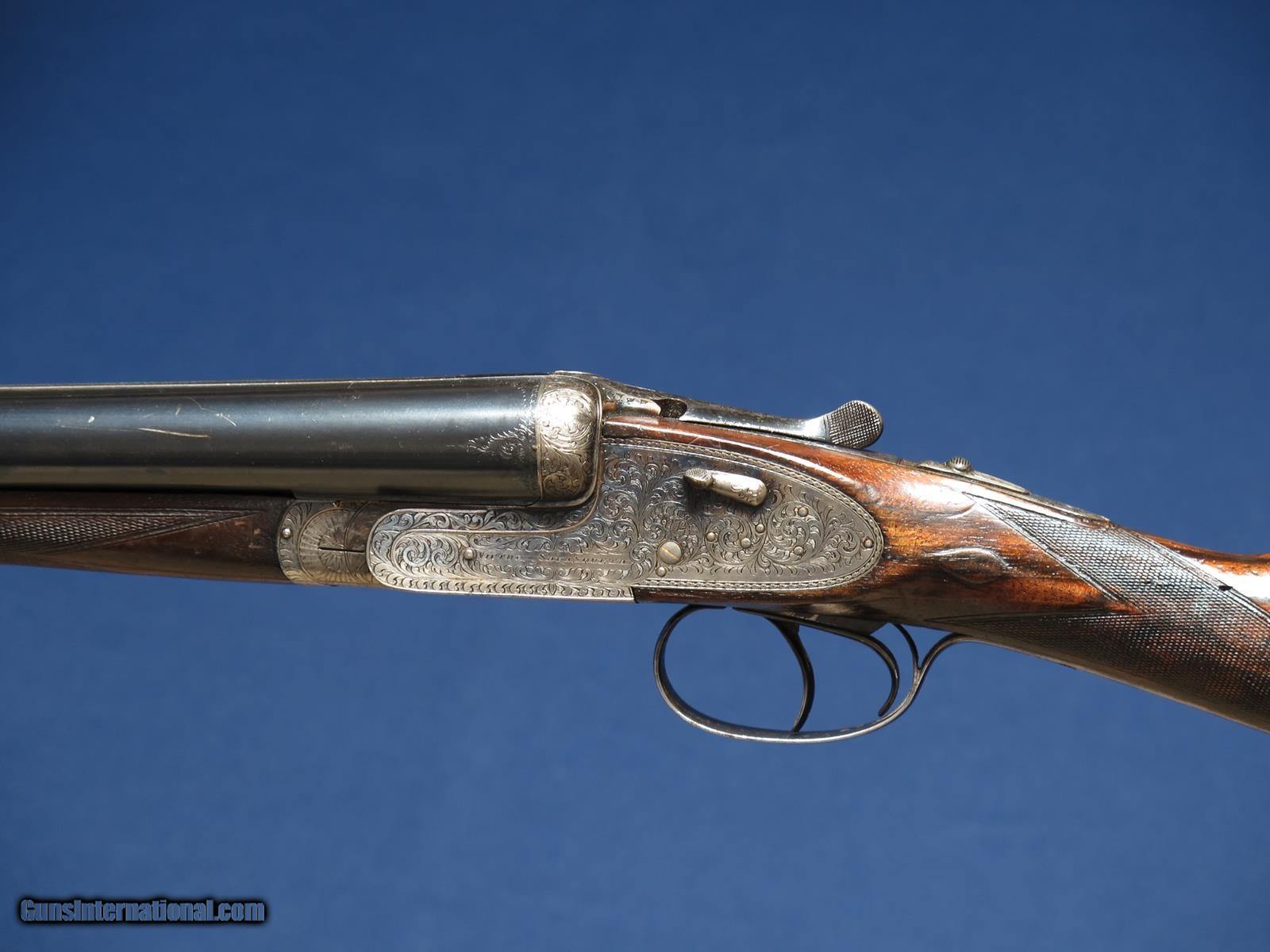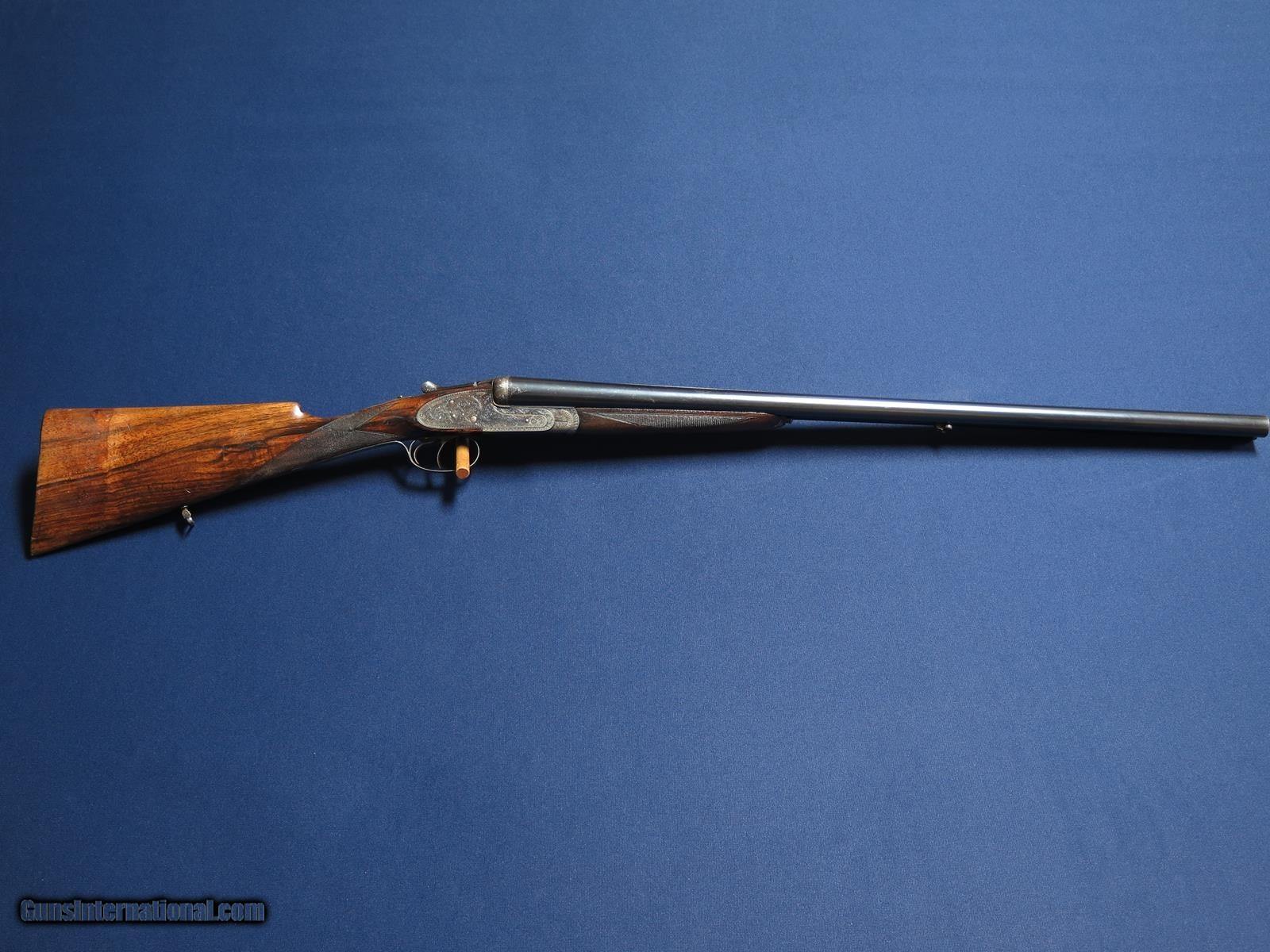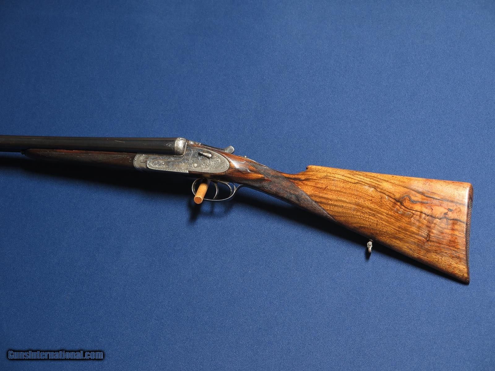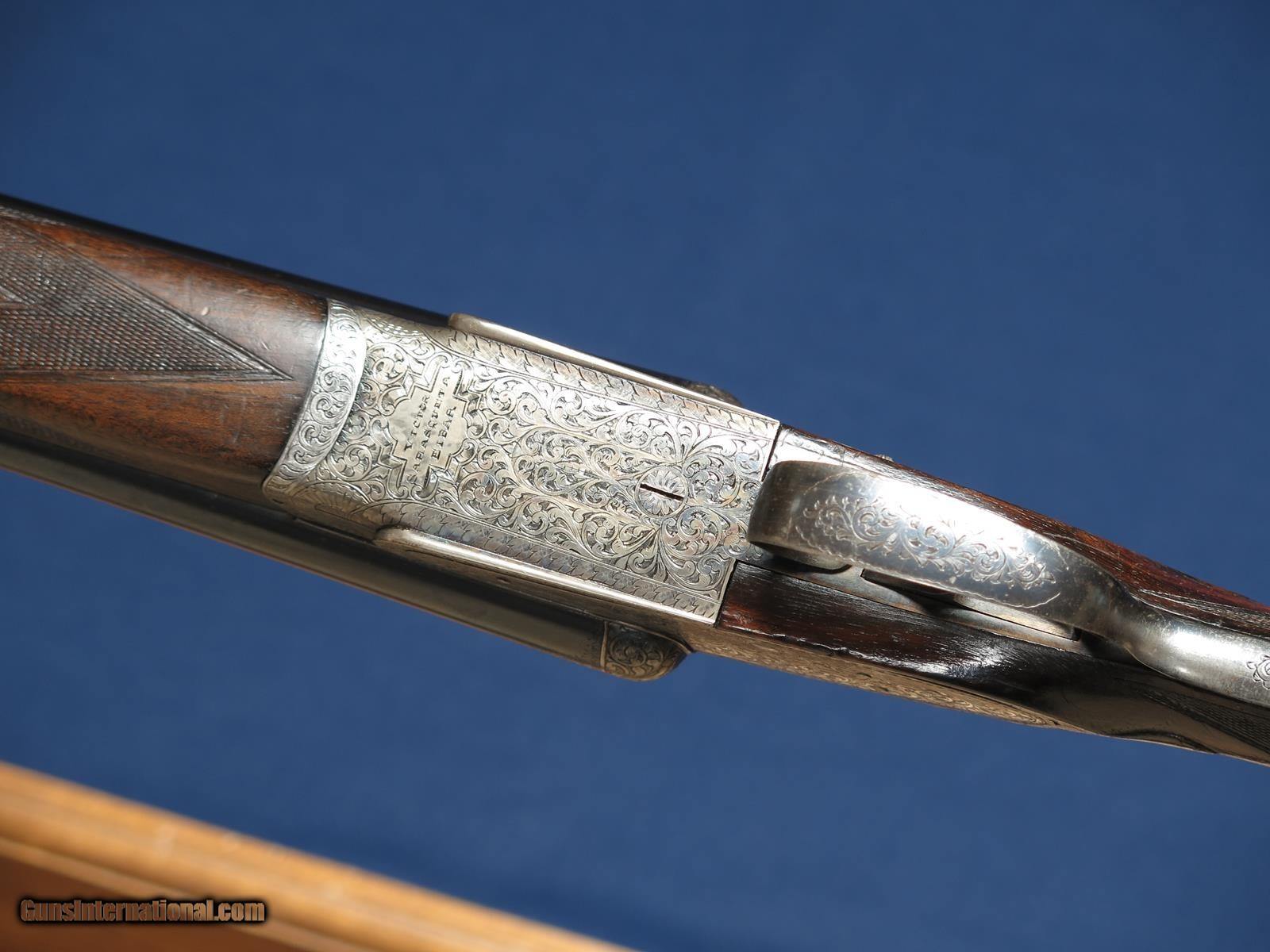 Description: Sarasqueta 7E detachable sidelock 12ga. 28 inch full & extra full. .024 & .039. Scroll engraved. Double triggers. Hinged front. Automatic ejectors. 95% blue. 14 1/4 LOP checkered butt. Wood needs to be restored. Shows use. 2 3/4 chambers. Excellent bores. SOLD |