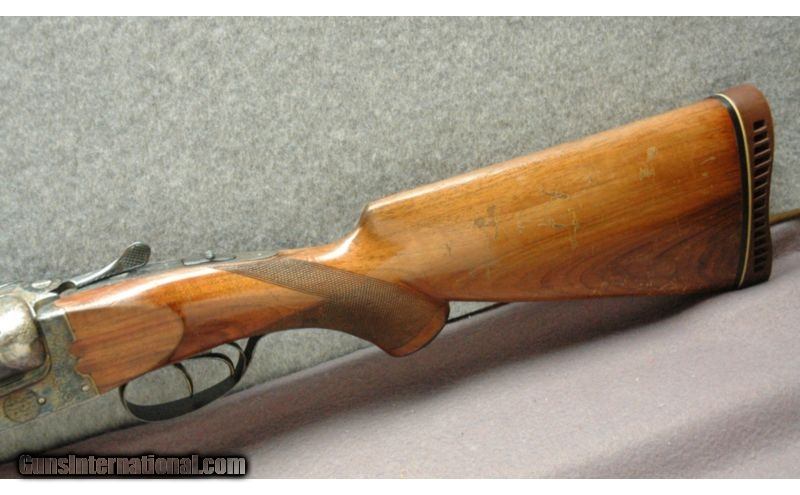 Description: Sarasqueta SxS shotgun 10 Ga. Very good condition, big bore SxS with scalloped fences and color case frame. SOLD Caliber Info: 10 Gauge Metal Condition: Very Good, Light Finish Wear, Small Nicks & Scratches Wood Condition: Stock is in Very Good Condition Bore Condition: Bright Barrels: 32" Barrels, Box Lock Triggers: Double Triggers Stock: Gloss Finish Stock Dimensions: 14" LOP Fore End: Checkered , Properly Repaired Split Butt Pad: Pachmayr Recoil Pad Weight: 10 Lbs 12 ozs Sights: Single Gold Bead Extras: No box Item Location: La Vista, NE |