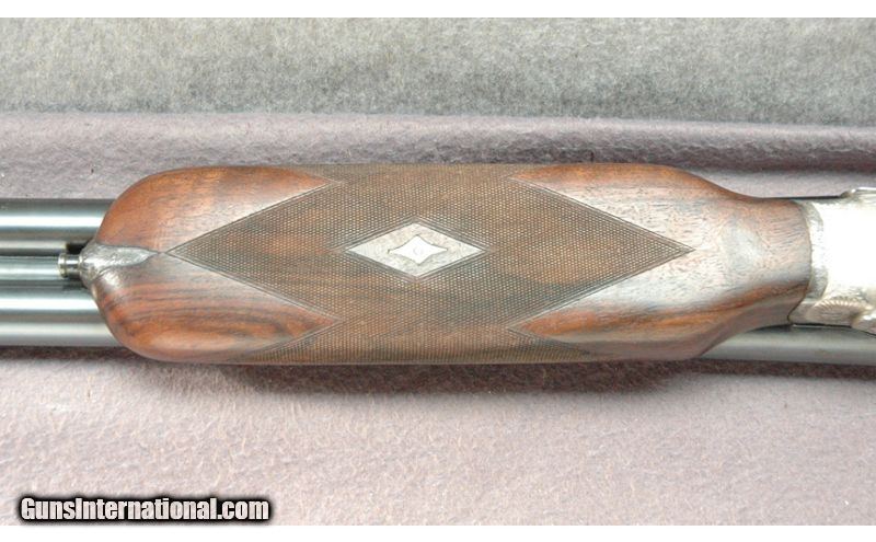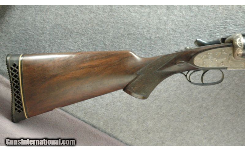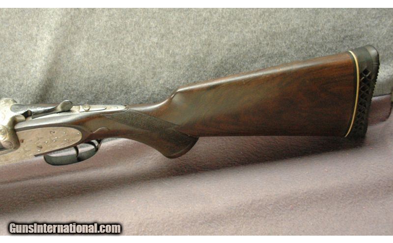 Description: V. Sarasqueta Zeypher No 6 HG 10 Ga.Quality and balance come to mind when swinging this fine Spanish 10 gauge.It features a5 pin side lock with cocking indicators andfine checkering on the stock and forendgiving the notion that Spanish gun makersare oftenunderrated. Excellent engraving coverers most of the receiver and lock plates as well as the fences. Dimensions are DAH 23/8", LOP 14 1/4 , DAC 1 1/2", cast off approximately 1/4 inch. 32" Barrels, Weight 12 Lbs. 10 Gauge SOLD Metal Condition: "Very Good, Some Finish Wear, Small Nicks & Scratches Wood Condition: Stock is in Very Good Condition Barrels: 32 Triggers: Double Triggers Stock Dimensions: 14 1/4" LOP Fore End: Checkered Butt Pad: Pachmayr Recoil Pad Sights: "Large Gold Front, Small Silver Mid Beads Item Location: Mitchell, SD |