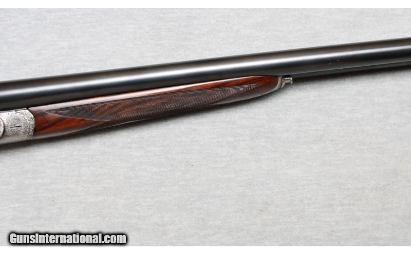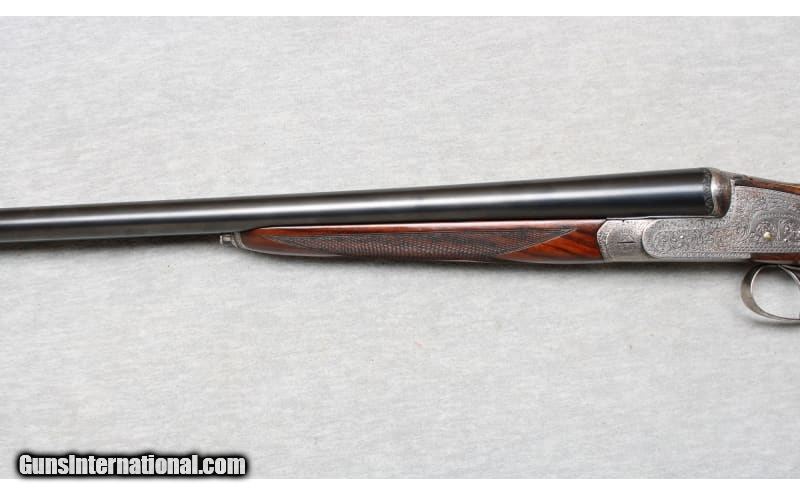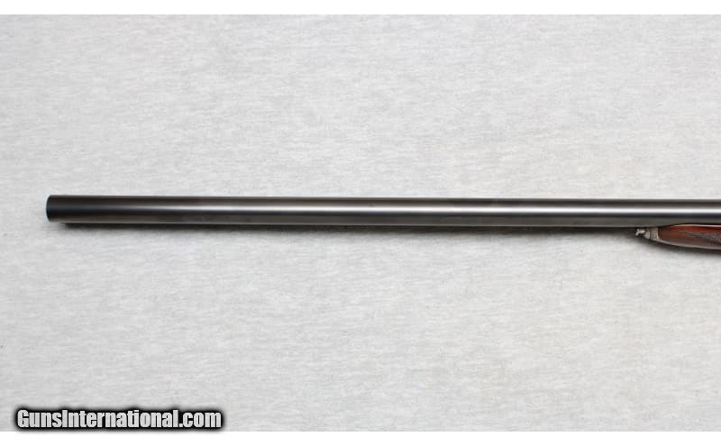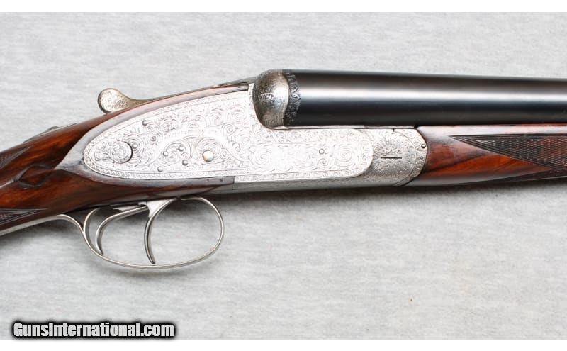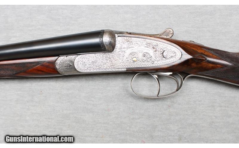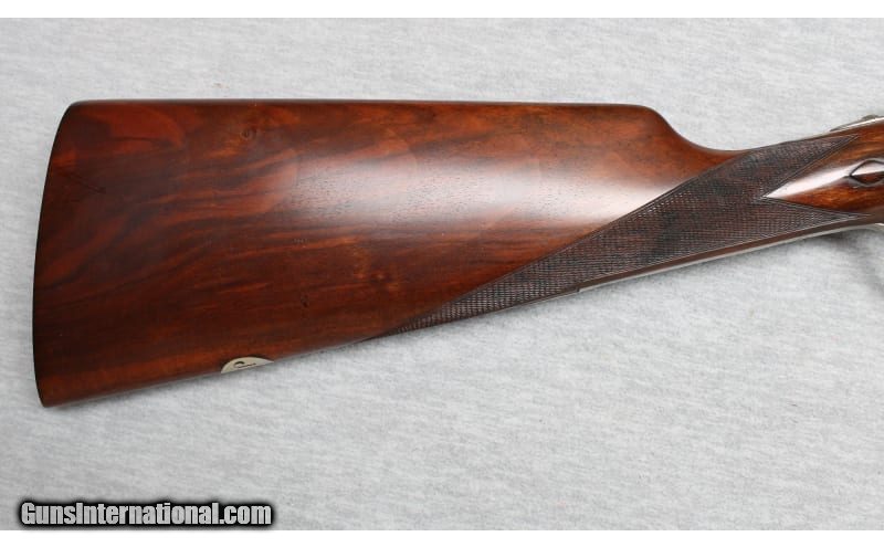 Description: Victor Sarasqueta Model HH 2 Barrel Set Sidelock in 12 gauge. The serial number is 39626. Features include a hand detachable sidelock action with double under lugs, third bite, side clips & gold bar cocking indicators. It has ejectors and double triggers with the front trigger hinged. The action has full coverage scroll engraving with floral bouquet on floorplate. It has a splinter forearm with Anson release and straight hand stock of fine European walnut. It also features tear drop points, hand checkering and German silver nameplate on toeline with initials "JAG." This firearm is being offered by the Boise Cabela's Gun Library. We will ship for free to your local Cabela's or Bass Pro Shops for transfer to you. If you are interested in purchasing or have any other questions, please call the Boise Cabela's Gun Library directly at (208)672-7922. 12 Gauge SOLD Chambers: 2 3/4 inches Metal Condition: Excellent Wood Condition: Excellent Bore Condition: Both barrel sets have very good bright bores Barrels: "Barrel 1 -28 Inches, Barrel 2 - 28 1/4 inches Triggers: Double trigger with a hinged front trigger Stock Dimensions: Length of pull 14-3/8 Butt Pad: Checkered walnut Sights: Single silver bead on solid concave rib Chokes: "Barrel 1 Modified/Full, Barrel 2 Improved Cylinder/Improved Modified Item Location: Boise, ID |