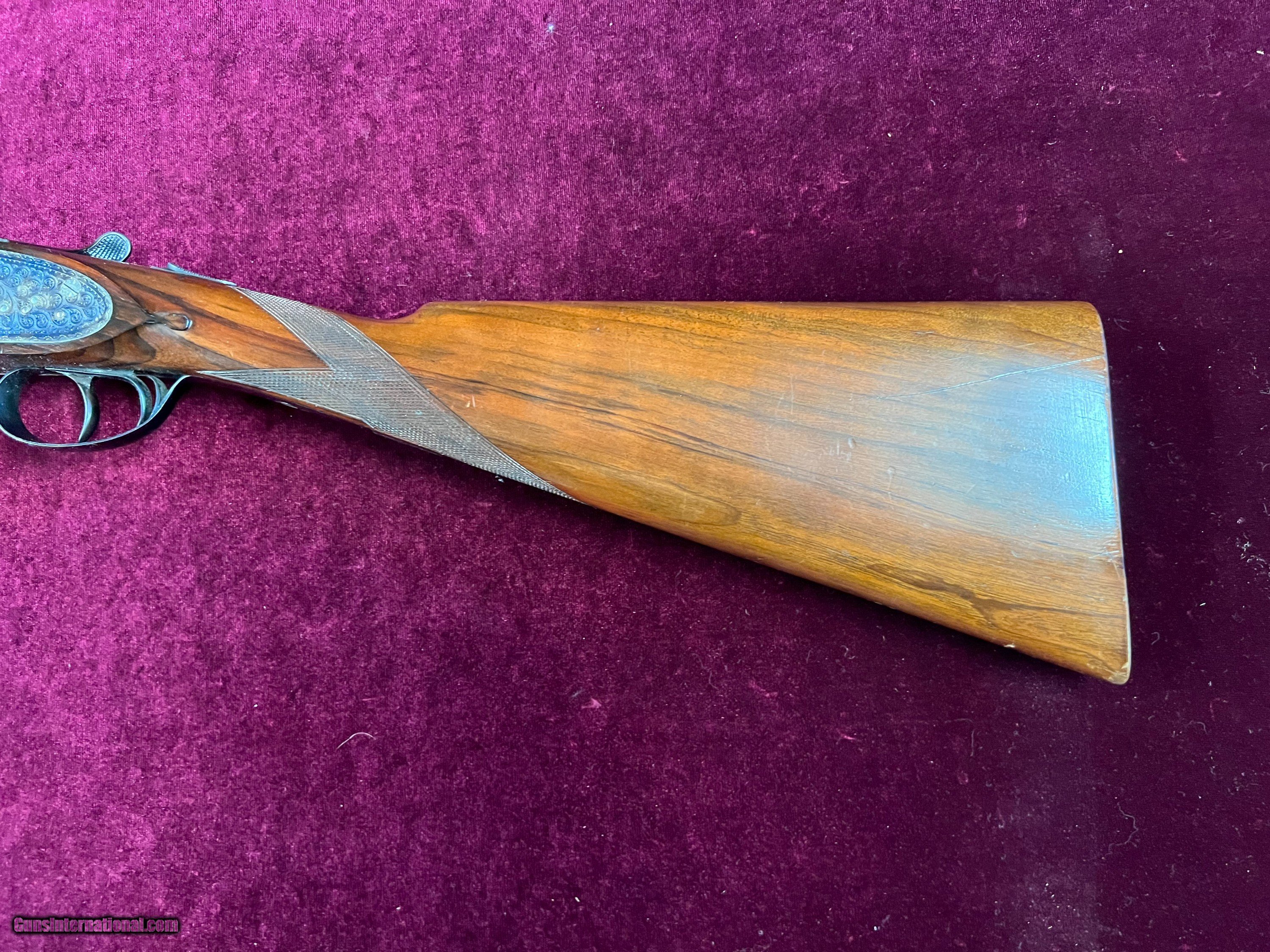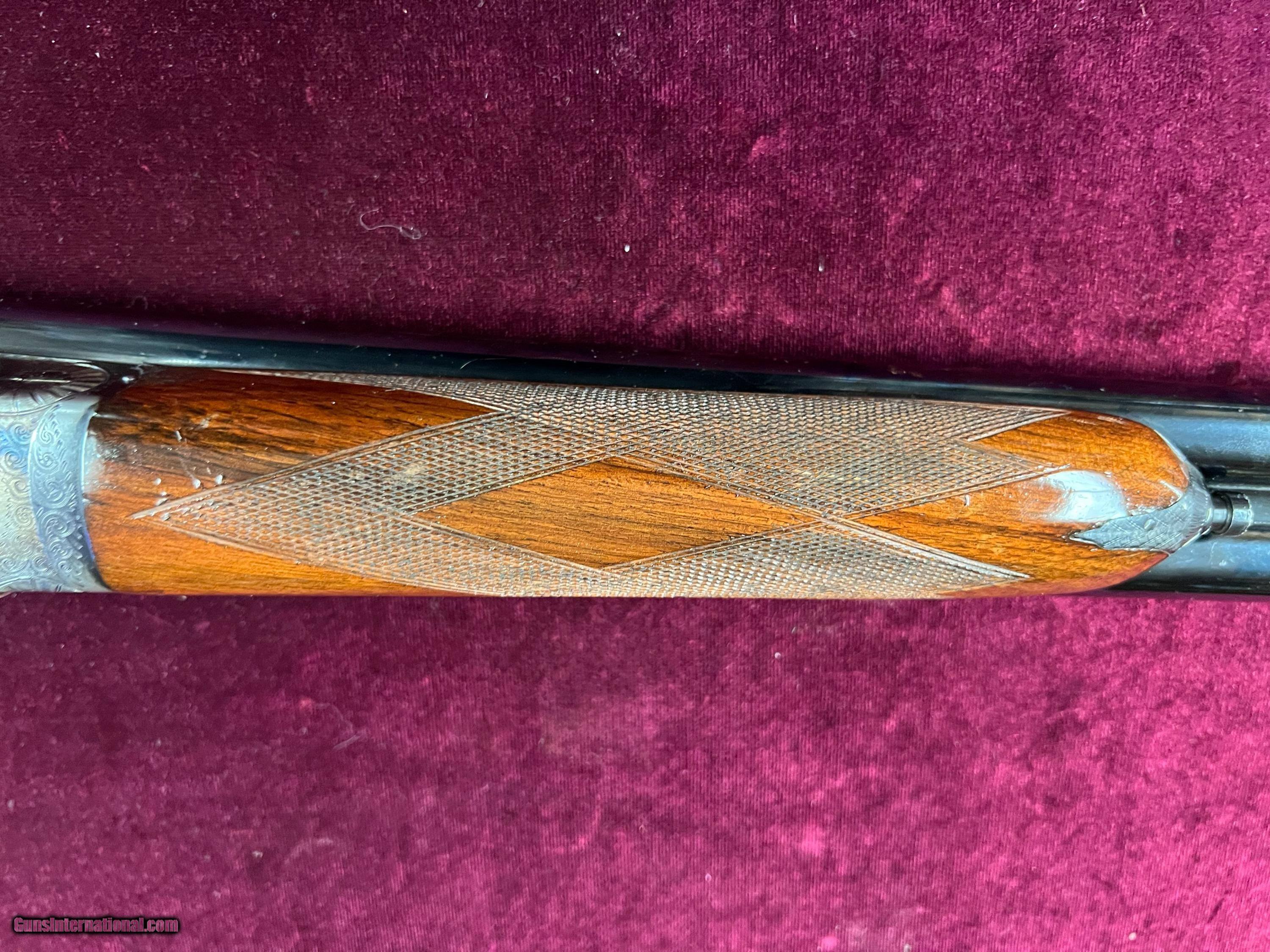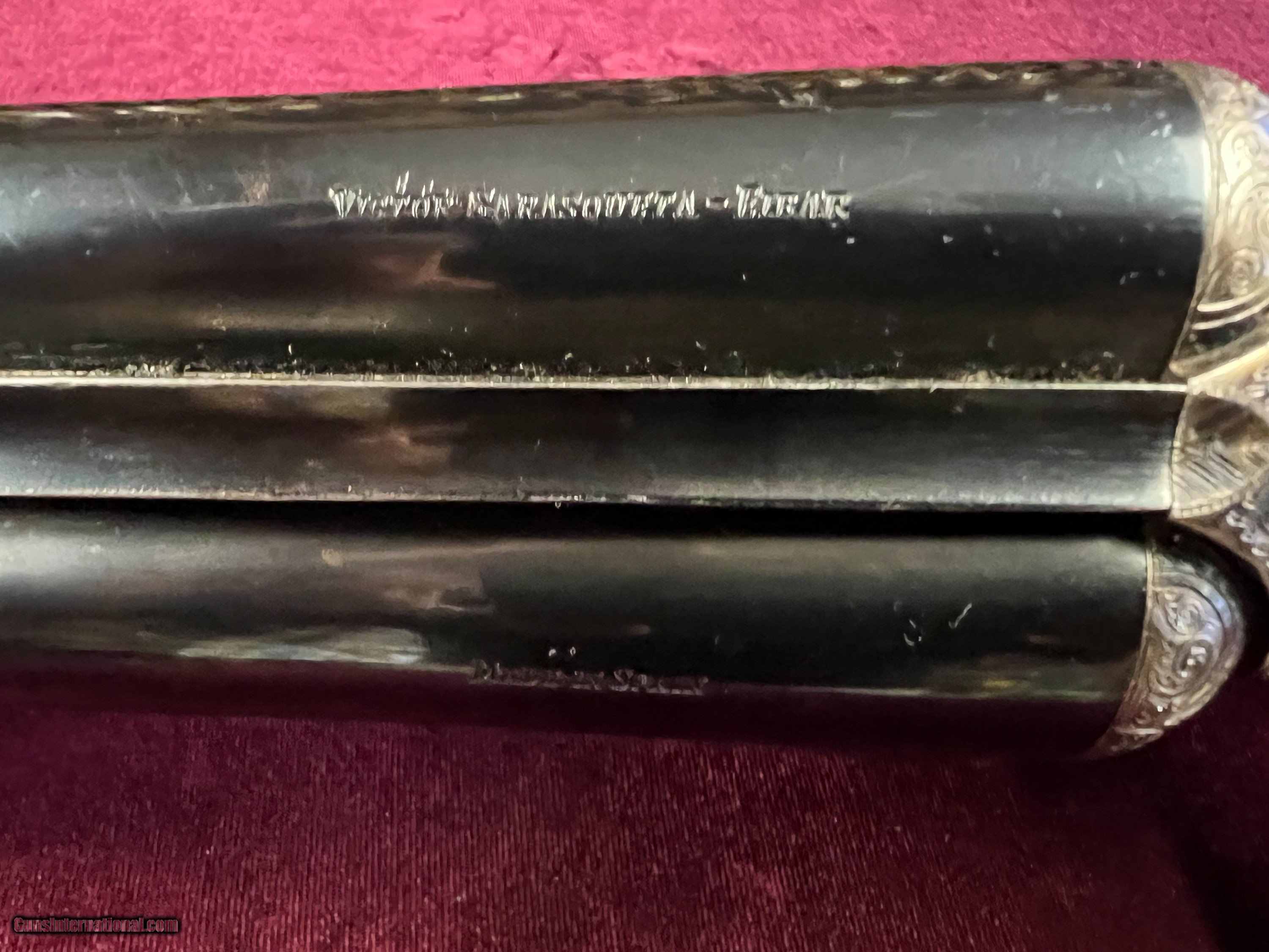 Description: Hi all. In this we are selling a Victor Sarasqueta Sidelock Side by Side Shotgun. The shotgun shoots 12Ga 2.75", has a 28" length barrell, with boxlock ejectors. The chokes are modified and full. The length of pull is 14 3/4", with the weight being 7lbs and 1oz. The gun is 100% original with Nile wood, has 95% blue, and 95% case colors. This gun is a great Sidelock Side by Side for upland hunting. We are selling this beautiful shotgun for the VERY LOW price $1595. SOLD Shotgun Gauge: 20 Gauge Manufacturer: Victor Sarasqueta Model: Sidelock Serial Number: 238930 Barrel Length: 28 Weight: 7lbs 1oz |