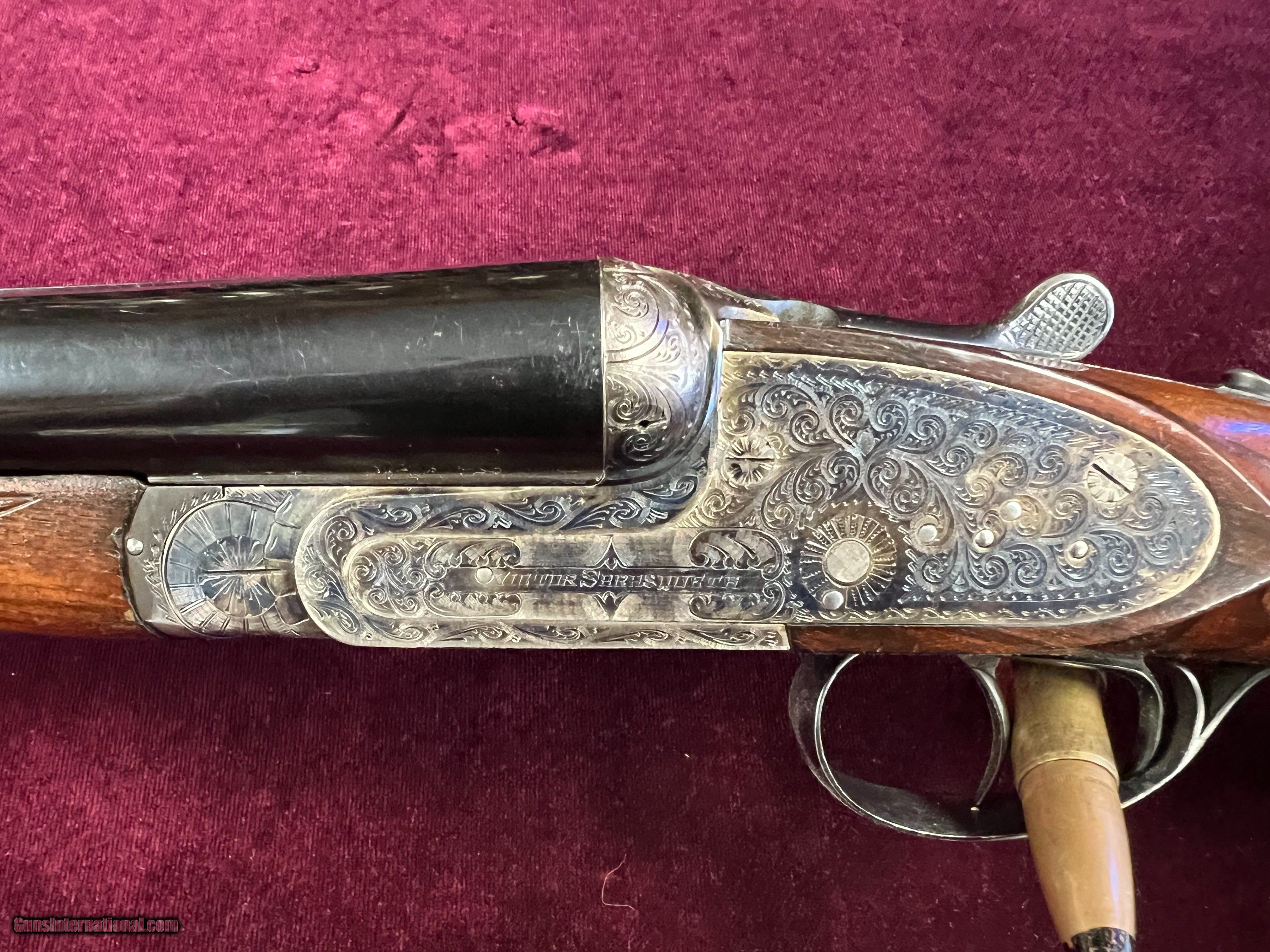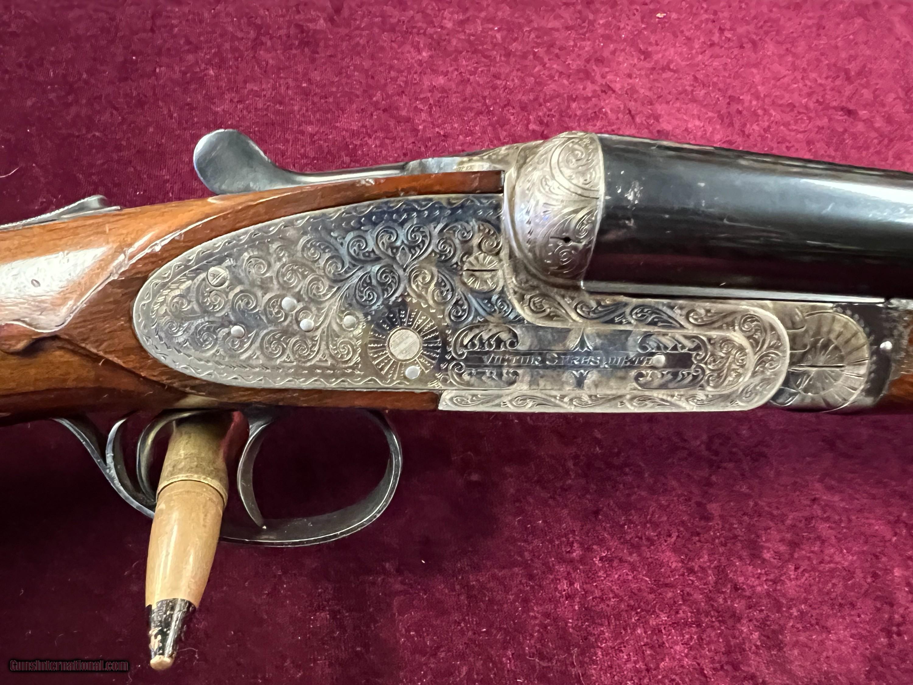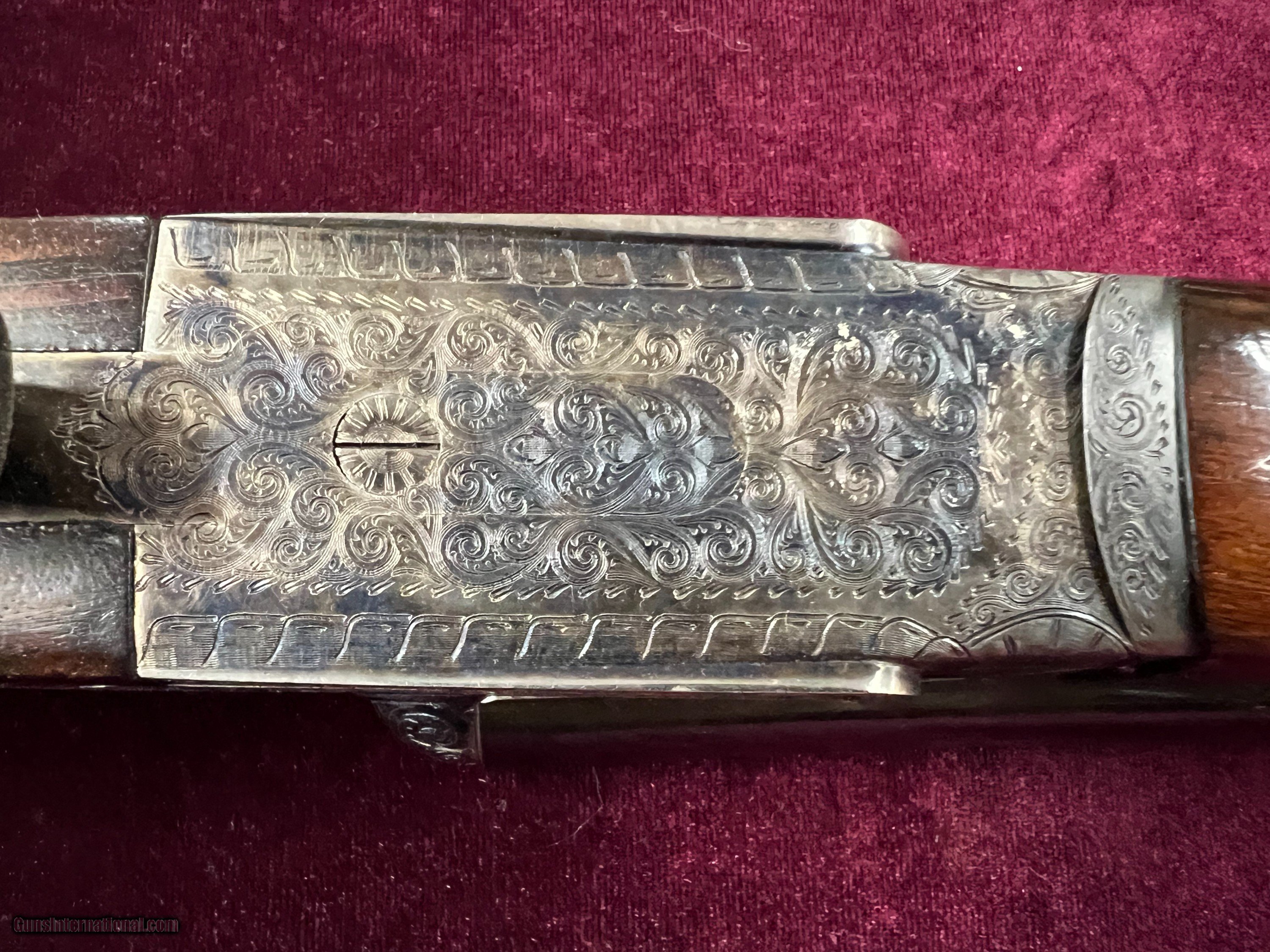 Description: Hi all. In this we are selling a Victor Sarasqueta Sidelock Side by Side Shotgun. The shotgun shoots 12Ga 2.75", has a 28" length barrell, with boxlock ejectors. The chokes are modified and full. The length of pull is 14 3/4", with the weight being 7lbs and 1oz. The gun is 100% original with Nile wood, has 95% blue, and 95% case colors. This gun is a great Sidelock Side by Side for upland hunting. We are selling this beautiful shotgun for the VERY LOW price $1595. SOLD Shotgun Gauge: 20 Gauge Manufacturer: Victor Sarasqueta Model: Sidelock Serial Number: 238930 Barrel Length: 28 Weight: 7lbs 1oz |