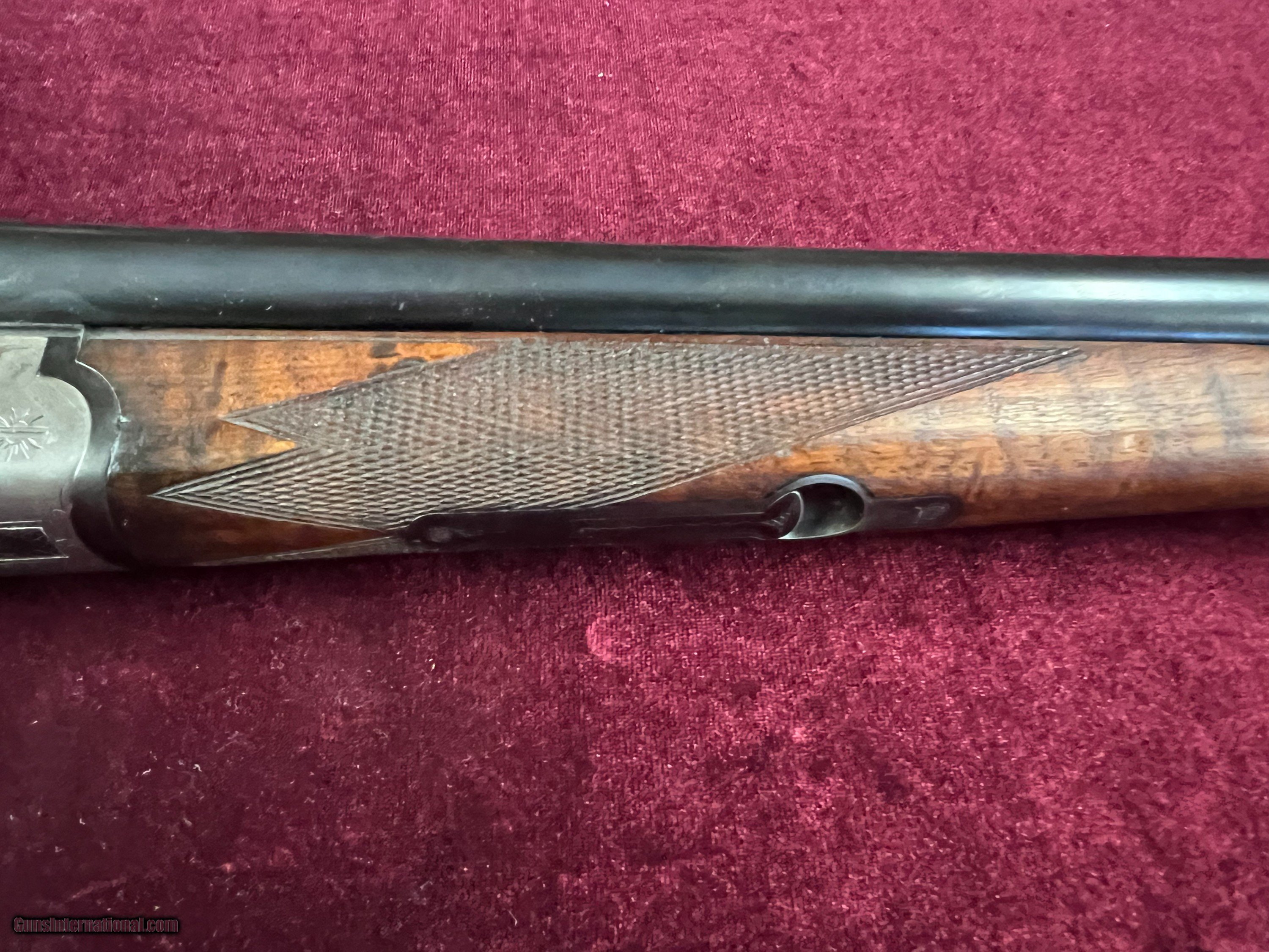 Description: Hello all. In this listing we are selling a J.P. Sauer Drilling. This Combination gun is chambered in 16GA and 8x57. The gun is 100% original and in 98% overall condition, with 99% blue, 98% silver receiver, and 98% original wood. The bores are in prestine mint condition, and the gun is mechanically perfect. The barrels are 25" and have been fired very little. Serial number is 257101. If you have any questions or would additional photos, please feel free to contact us. Buyer pays shipping. We charge 3% on all card transactions. We are selling this gun for $2650. SOLD Rifle Caliber: 8x57mm J Shotgun Gauge: 16 Gauge Manufacturer: J.P. Sauer Model: Drilling Serial Number: 257101 Barrel Length: 25 inches |