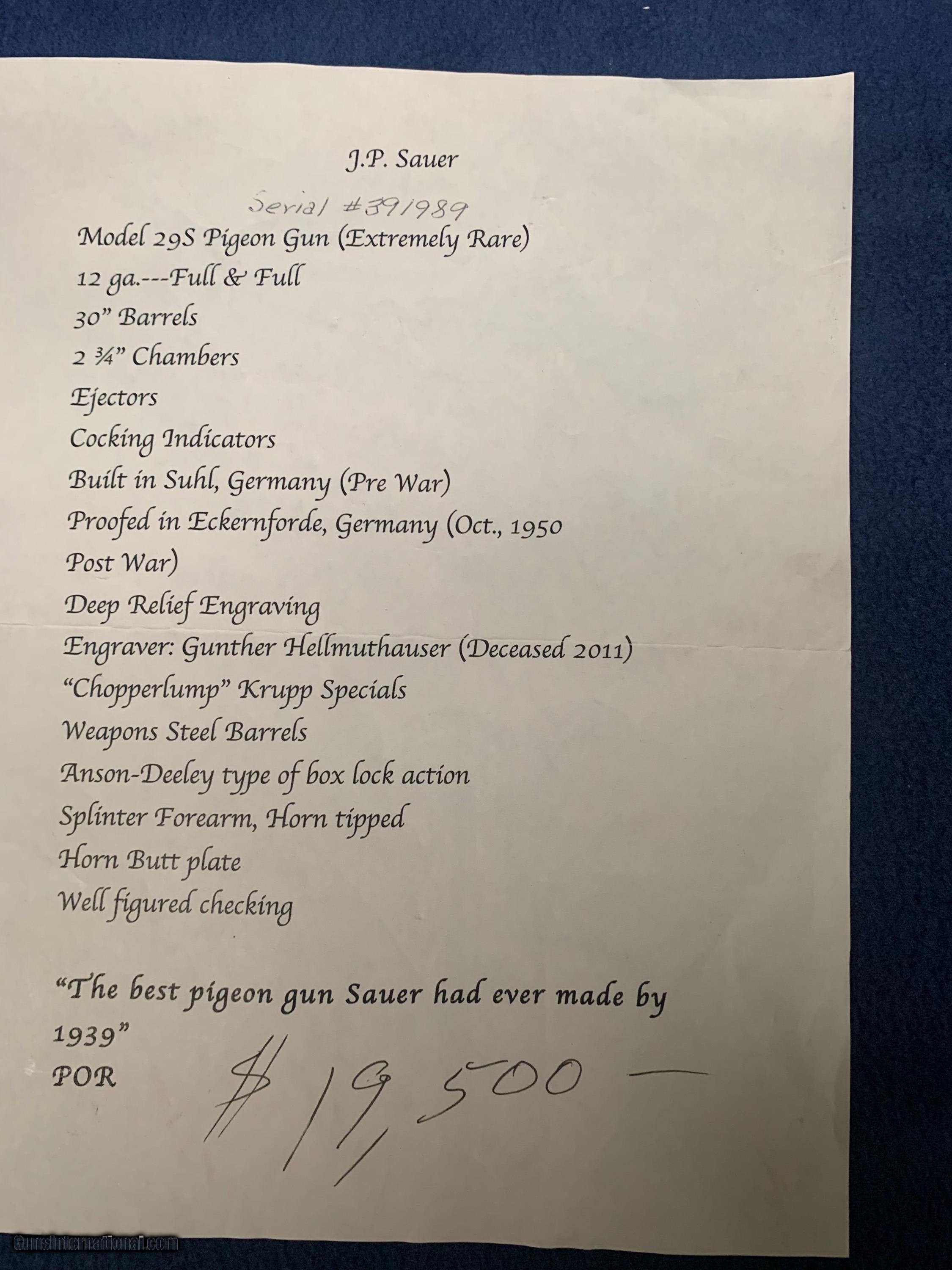 Description: Sold!!!!!!!J.P. Sauer Model 29S 12 ga. Pigeon Gun Extremely Rare 30" barrels Full & Full 2 3/4 chambers single trigger auto ejectors Will trade 3 day inspection Shipping is $50 Priority Mail - Insurance optional Certified Checks or Money Order Ohio residents add 7.25% tax No California sales FFL required SOLD |