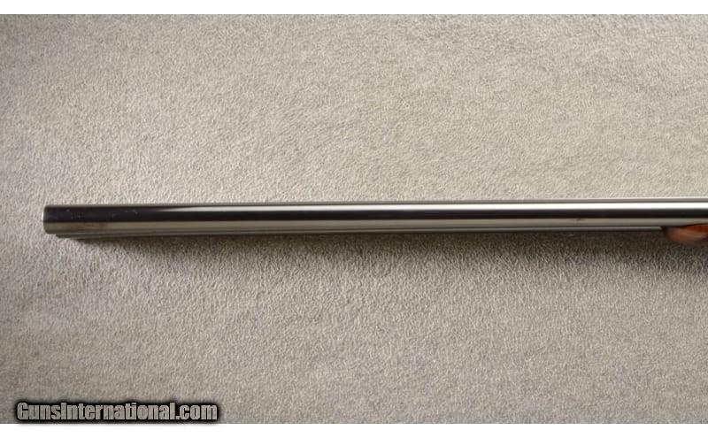 Description: A very nice example of a J. P. Sauer & Sohn double barrel boxlock shotgun chambered in 12 gauge. The 28" blued steel barrels are marked "BARRELS BY ARMAF LIEGE-BELGIUM" with solid concave matte rib and a single brass bead front sight. The case colored action displays light floral scroll engraving, with "J. P. SAUER & SON." on either side, double triggers, and tang mounted automatic safety switch. The stocks are two-piece hand-checkered high grade walnut, round knob pistol grip, fluted straight comb, splinter forend, and a rubber recoil pad. 12 Gauge Chambers: 2 3/4" chambers. Metal Condition: Overall excellent with minimal wear. Wood Condition: Excellent with a few light marks. About 98% remaining. Bore Condition: Bright bores. Barrels: 28" barrels. Triggers: Two. Stock Dimensions: LOP 14.25". Fore End: Splinter. Butt Pad: Rubber. Sights: Front bead. Chokes: Fixed. Item Location: Owatonna, MN Price: $1,399.99 Contact Seller |