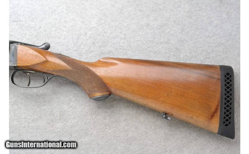Description: This J.P. Sauer & Sohn is a right-hand Side by Side shotgun in 16 Gauge. The barrels are 27 inches with a brass bead front sight. It has two triggers. The forearm is a splinter style, checkered hardwood and the stock is hardwood pistol grip with checkered side panels and a cap, and a black rubber recoil pad. 16 Gauge Chambers: 2.75 Metal Condition: Good with handling marks Wood Condition: Good with handling marks Bore Condition: Very good Barrels: "27"", smooth Triggers: Two triggers Stock Dimensions: LOP 14.75 Fore End: "Splinter style, checkered hardwood Butt Pad: Black rubber recoil pad Weight: 6 lbs 7 oz Sights: Brass bead front Chokes: Fixed Modified Item Location: Richfield, WI Price: $1,499.99 Contact Seller |