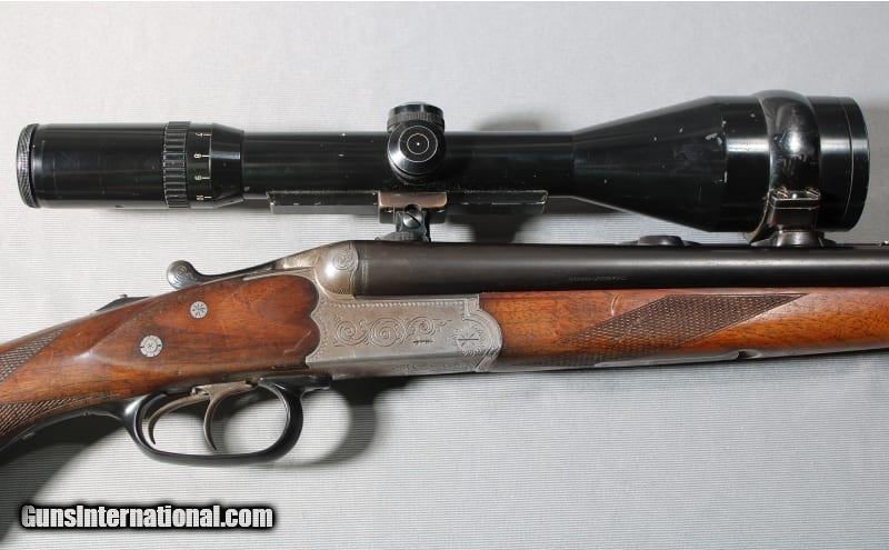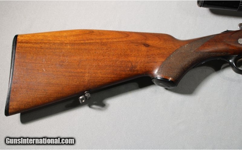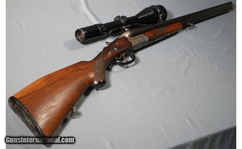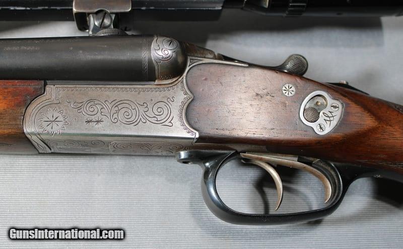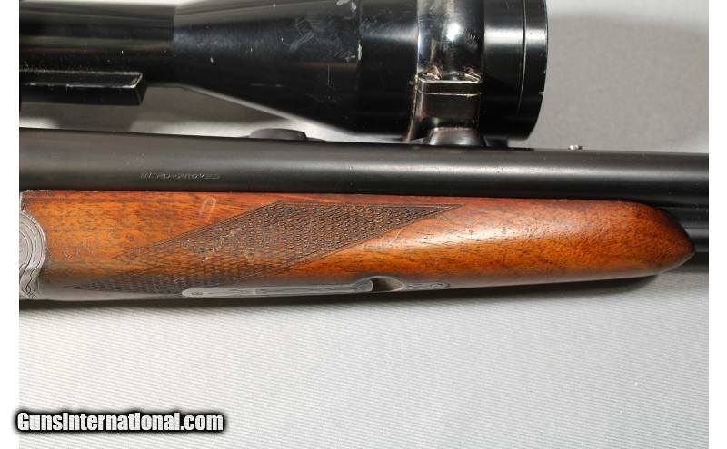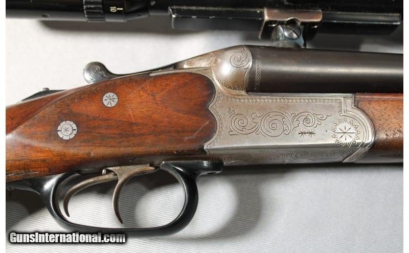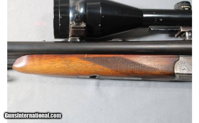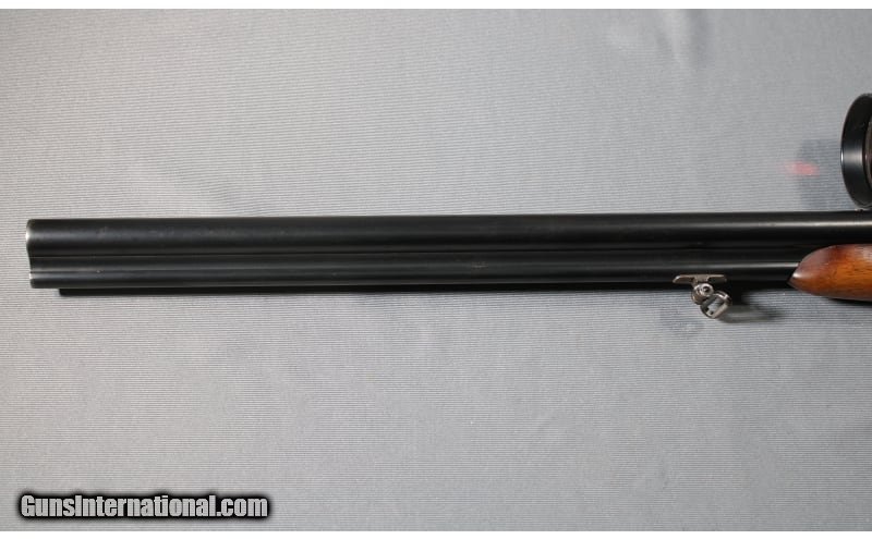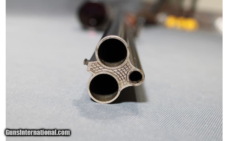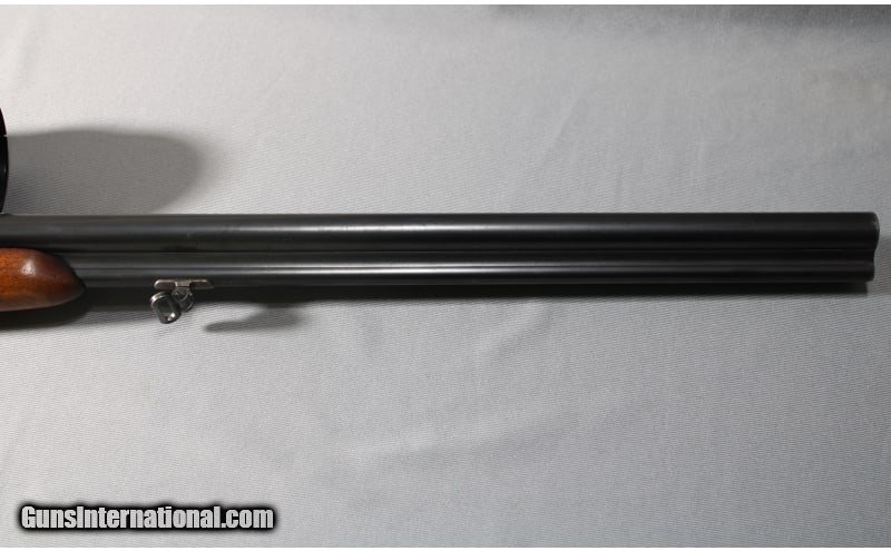 Description: JP Sauer Drilling combo long gun has side by side barrels of 16 gauge with a single barrel below for 7x65R. Three times the fun! You don't see many of these around. Comes equipped with a scope already mounted. Finish is nice showing previous owner took good care of this gun. Great for the collector or anyone looking to add a quality piece to their collection. 16/7X65R SOLD Chambers: 2 3/4" for the 16 gauge barrels Metal Condition: good Wood Condition: good Bore Condition: bright Barrels: 25 1/2" barrels with ejectors Triggers: dual triggers Stock Dimensions: 13.5" LOP Fore End: checkered wood Butt Pad: Sauer plastic Weight: 9 pounds Sights: "factory sights, Schmidt & Bender 2 1/2-10x scope Chokes: right barrel - IC; left barrel - IM Item Location: Council Bluffs, IA |