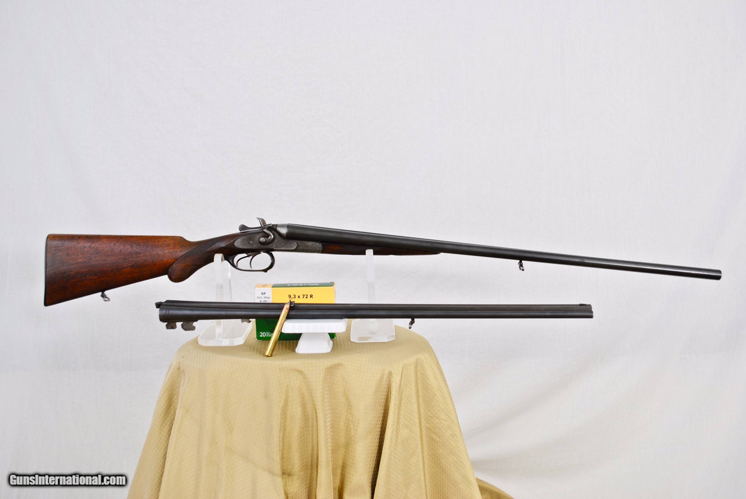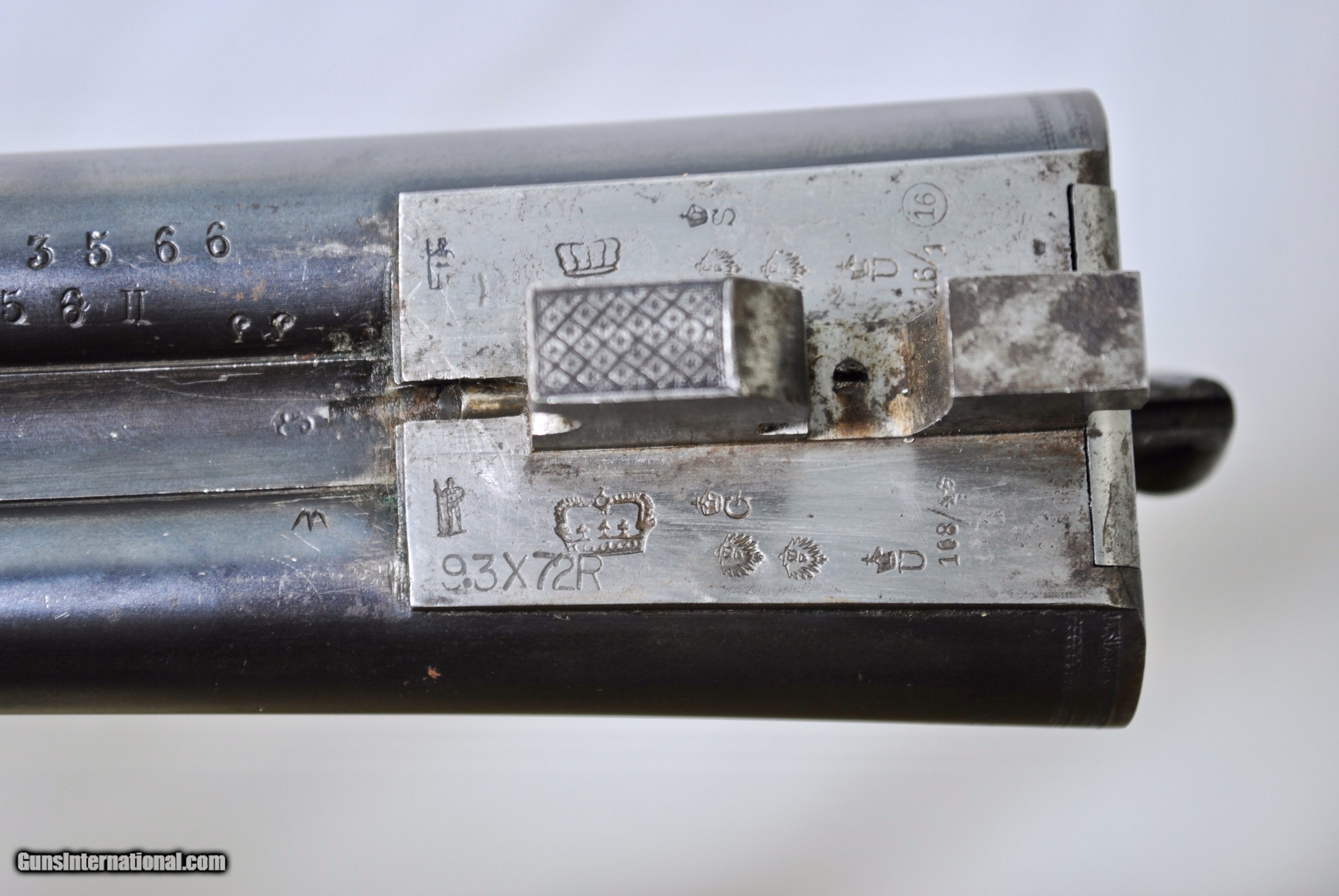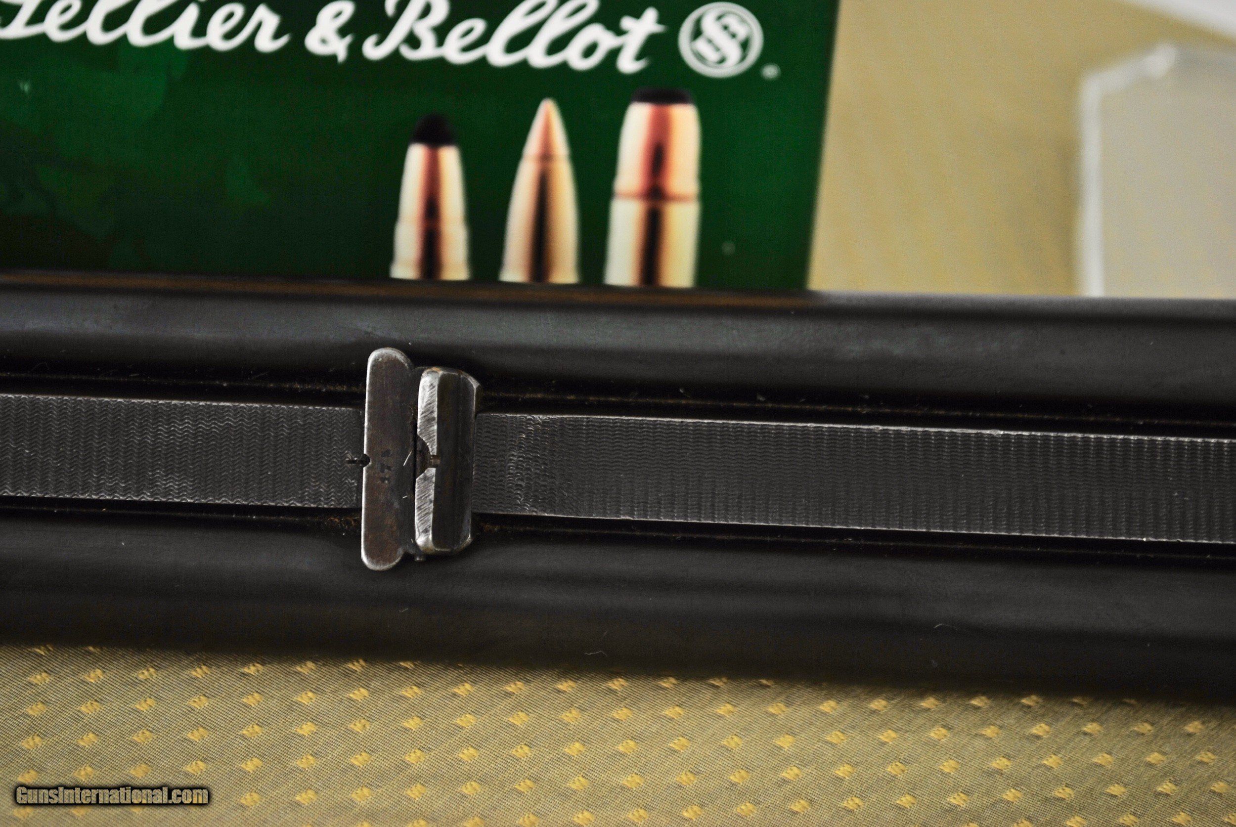 Description: Here is a JP Sauer two barrel set - 16GA/16GA and 16GA/93.x72R. This vintage hammer gun has some interesting features. Fluid steel, nitro proofed barrels. Back action locks. Rebounding hammers. Adjustable front set trigger. The shotgun barrels measure 29 1/2" have mirror bores and Mod and Full Chokes. The cape or combination gun barrels are 26 3/4". All shotgun chambers measure sligtly less than 2 3/4". The rifle barrel of 9.3 x 72R is excellent with strong lands and groves. Ten rifle cartridges and box are included. No loose ribs on barrels. No cracks to wood. Tight on face. Horn trigger guard has a small crack as shown in the last two photos (I have never seen a vintage horn trigger guard that did not have some sort of small crack). Weight of gun with shotgun barrels is 6 LBS 2 1/4 OZ. With the combnation barrels the weight is 6 LBS 12 7/8 OZ. Shipping is $50. C&R OK. Stock dimensions follow. LOP - 13 15/16" Drop at Comb - 1 5/8" Drop at Heel - 2 3/8" For inquiries please call Guy - 407-721-3748 SOLD Curio/Relic: Yes Shotgun Gauge: 16 Gauge |