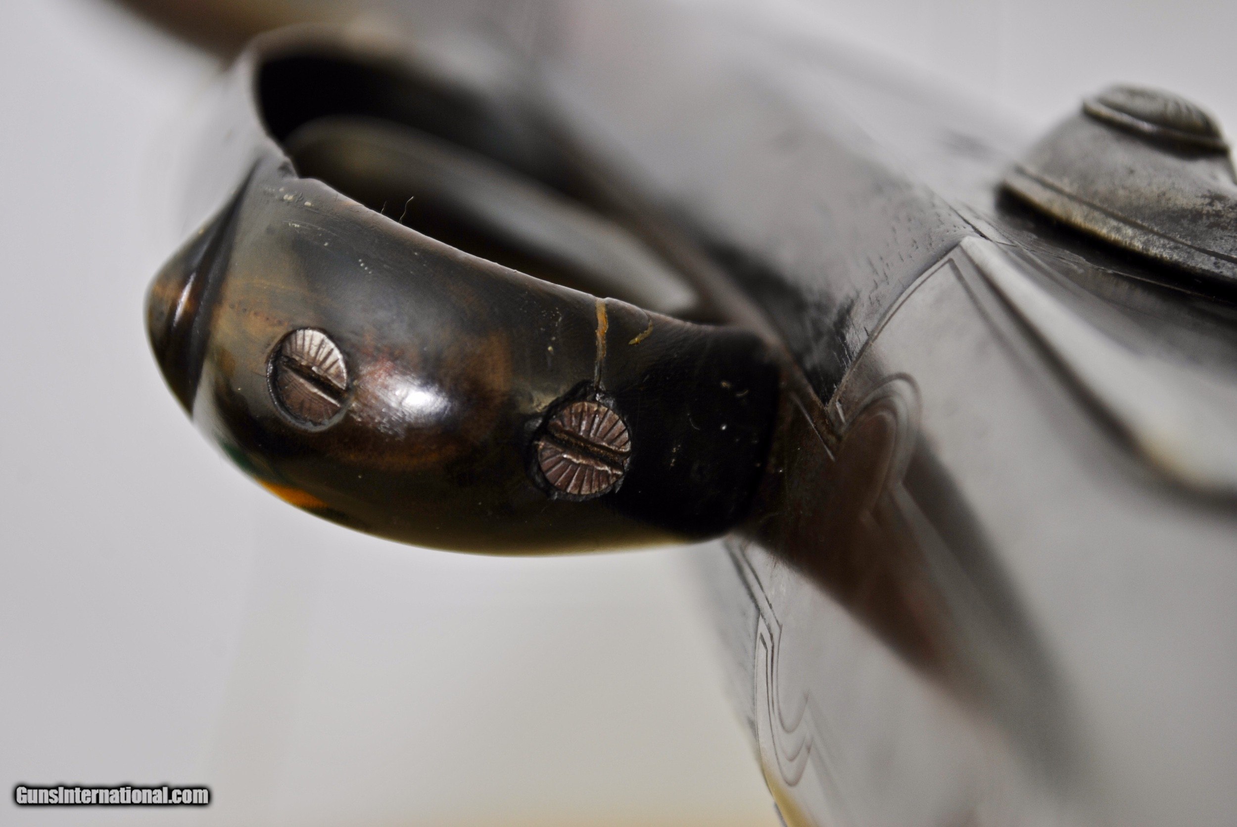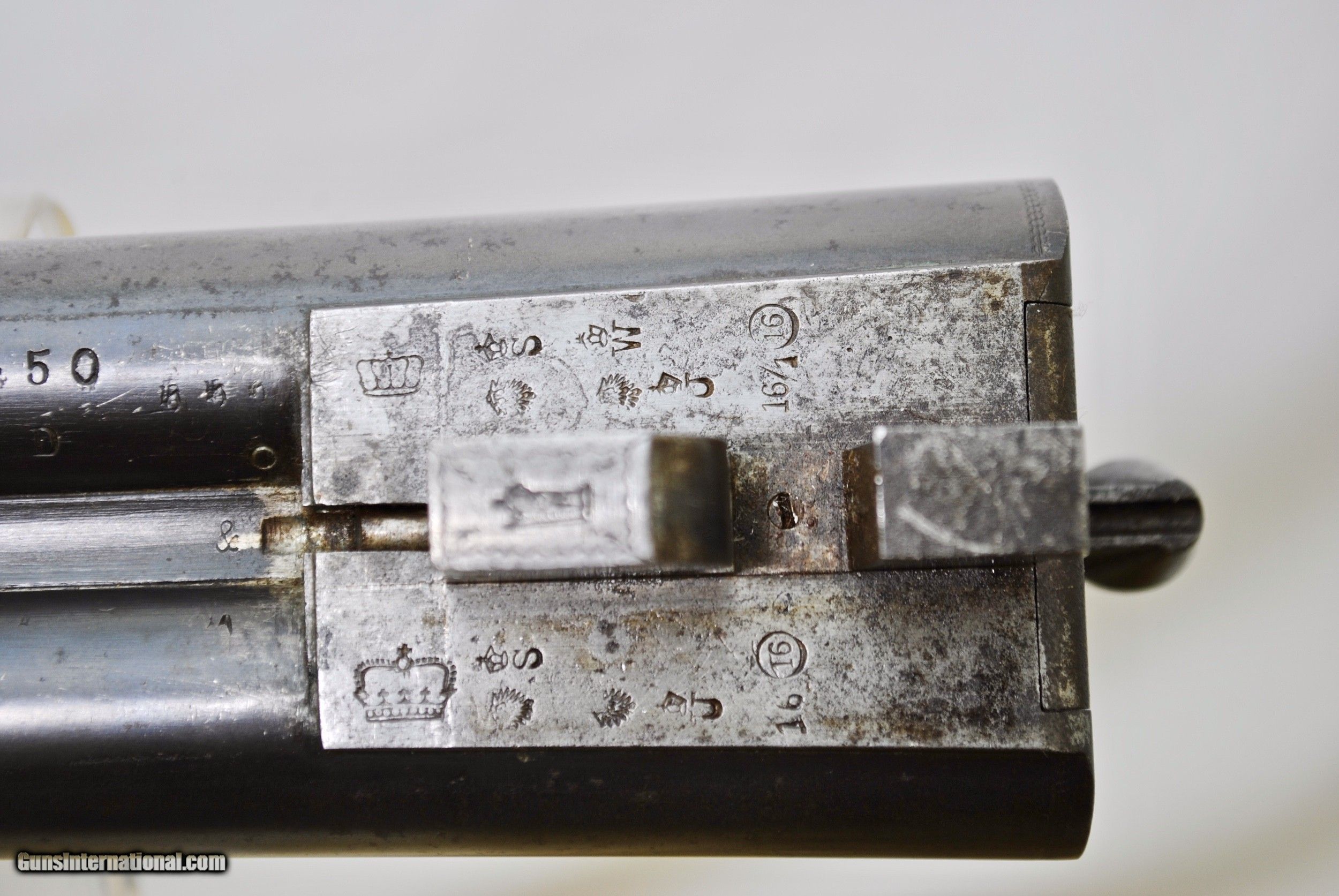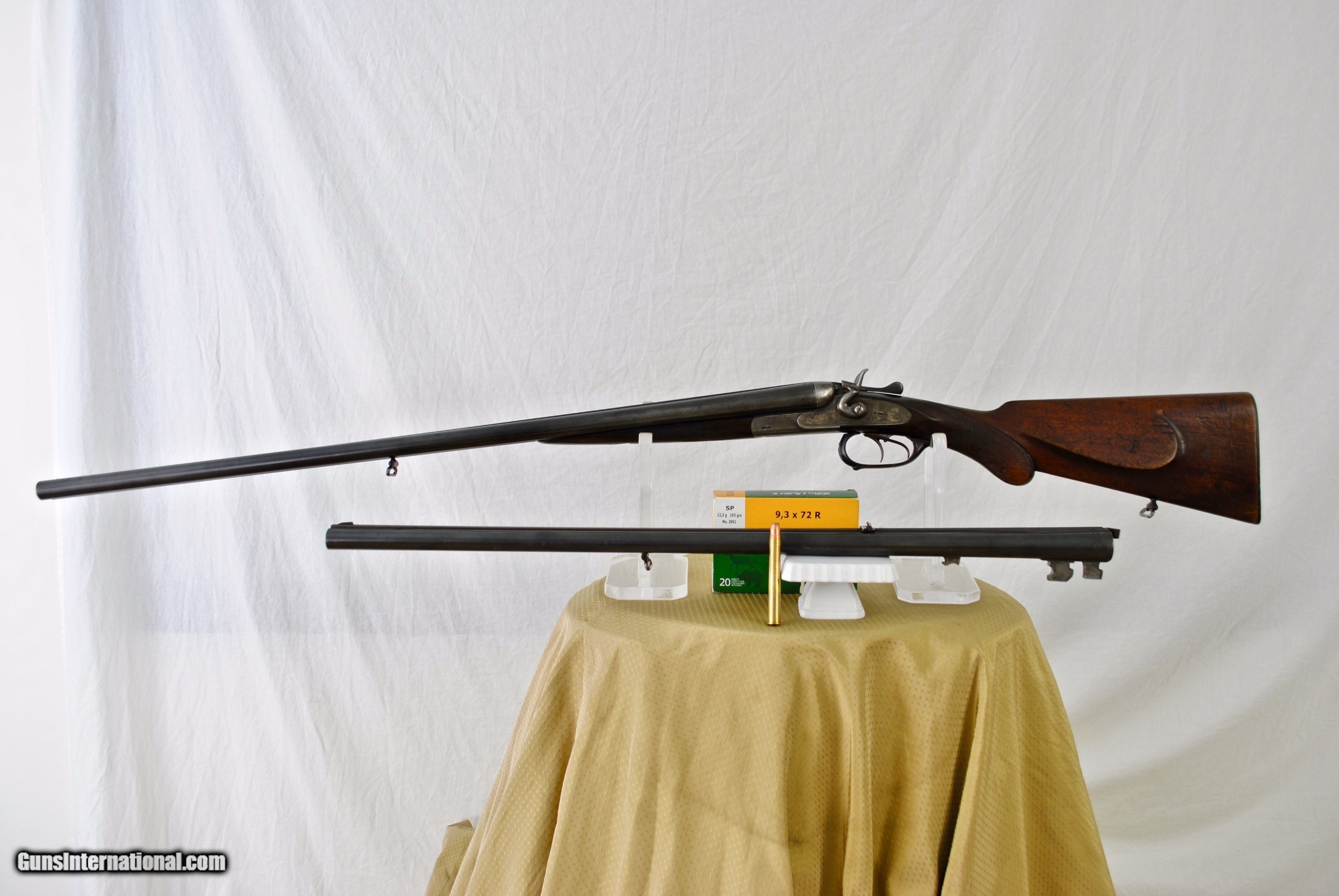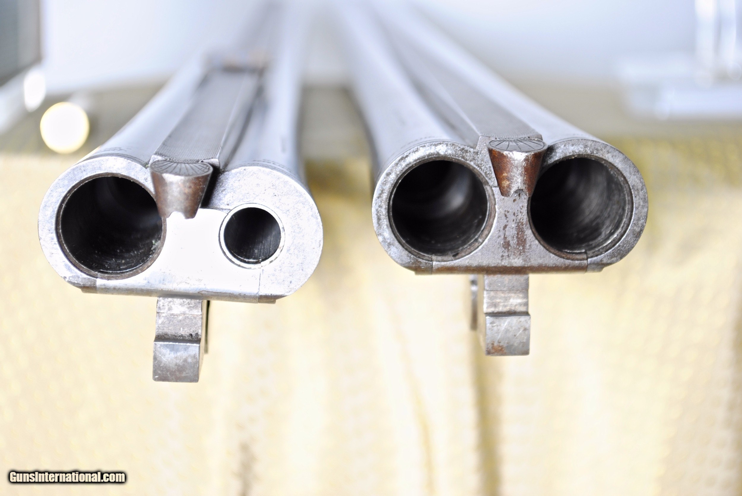 Description: Here is a JP Sauer two barrel set - 16GA/16GA and 16GA/93.x72R. This vintage hammer gun has some interesting features. Fluid steel, nitro proofed barrels. Back action locks. Rebounding hammers. Adjustable front set trigger. The shotgun barrels measure 29 1/2" have mirror bores and Mod and Full Chokes. The cape or combination gun barrels are 26 3/4". All shotgun chambers measure sligtly less than 2 3/4". The rifle barrel of 9.3 x 72R is excellent with strong lands and groves. Ten rifle cartridges and box are included. No loose ribs on barrels. No cracks to wood. Tight on face. Horn trigger guard has a small crack as shown in the last two photos (I have never seen a vintage horn trigger guard that did not have some sort of small crack). Weight of gun with shotgun barrels is 6 LBS 2 1/4 OZ. With the combnation barrels the weight is 6 LBS 12 7/8 OZ. Shipping is $50. C&R OK. Stock dimensions follow. LOP - 13 15/16" Drop at Comb - 1 5/8" Drop at Heel - 2 3/8" For inquiries please call Guy - 407-721-3748 SOLD Curio/Relic: Yes Shotgun Gauge: 16 Gauge |