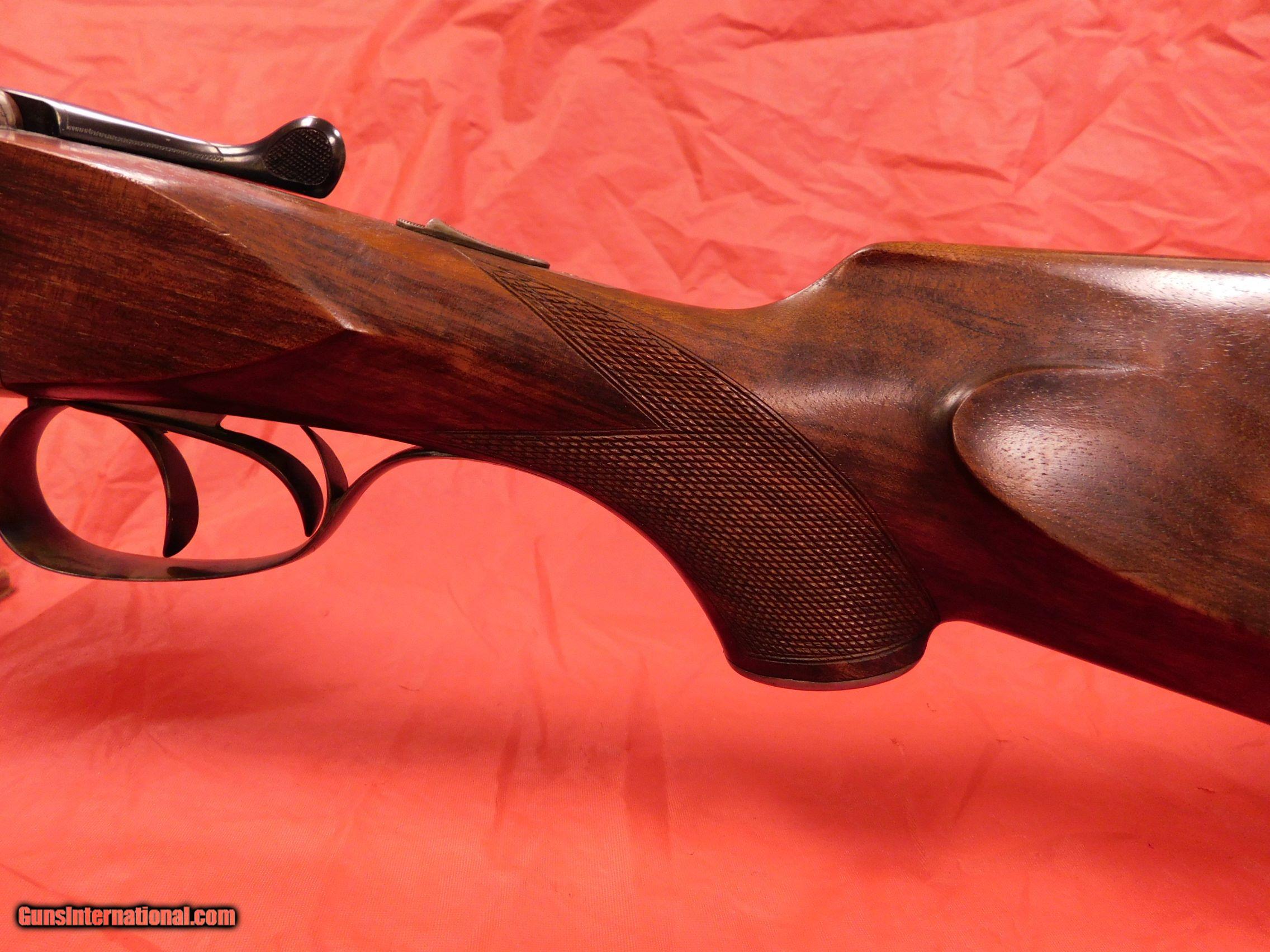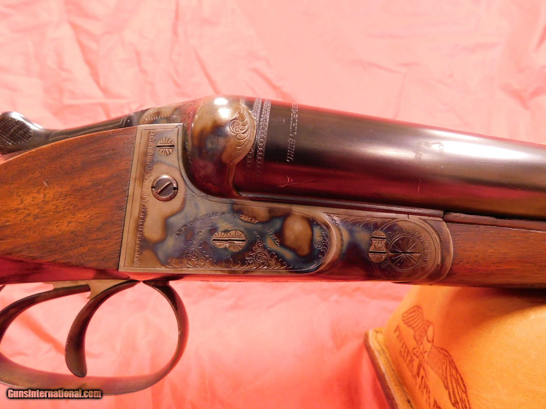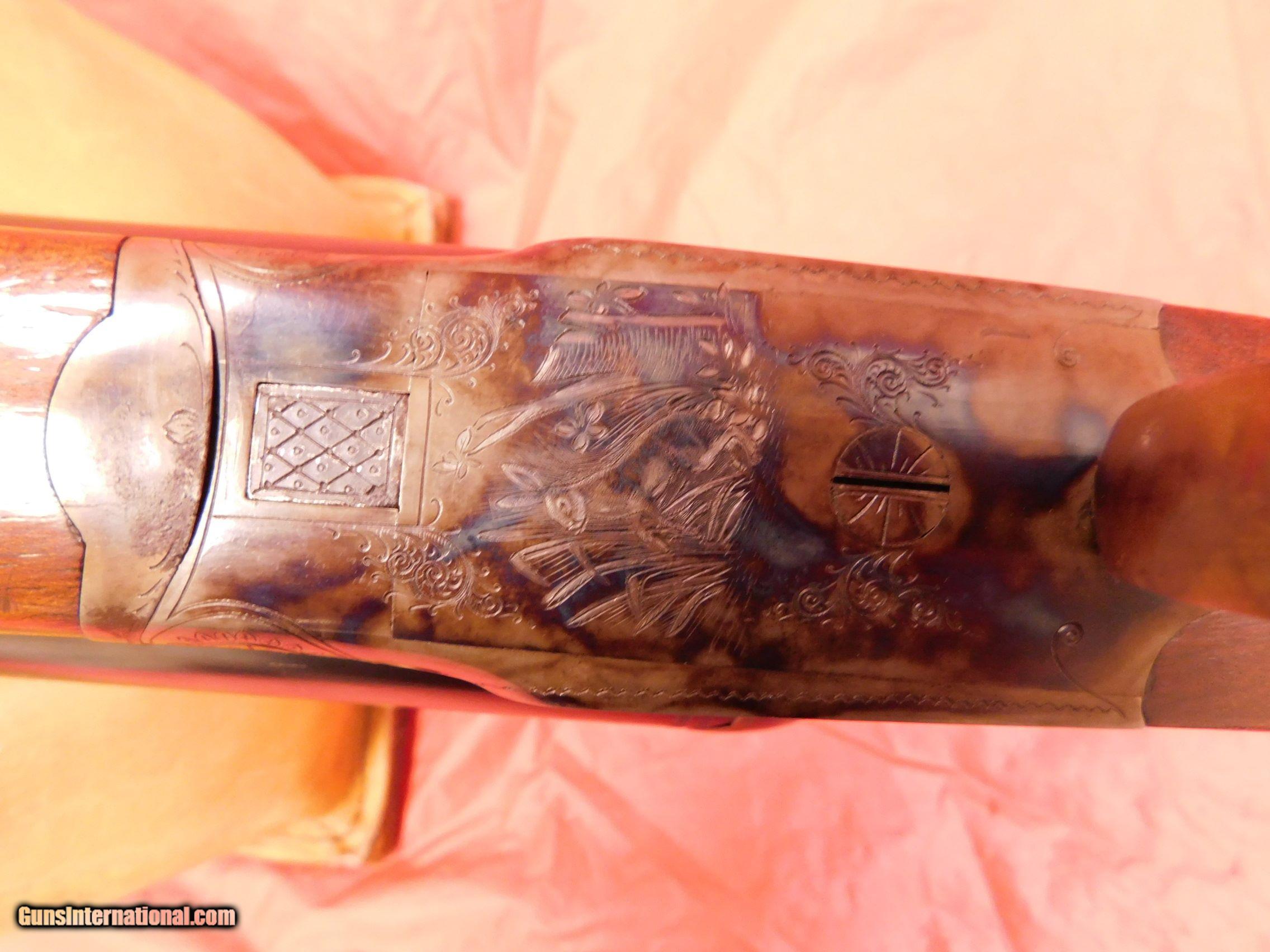 Description: JP Sauer & Sohn model Hase(hare) made in Germany in August 1940, serial #302729, krupp steel, Anson & Deeley box lock action, greener cross bolt, side clips, cocking indicators, case hardened, double triggers, auto ejectors, hand engraved sauer motif, 12ga 28" bbl, 2 1/2", mod and full, LOP 13" rear trigger 14" front trigger, amazing condiiton. Only $1500 $45 shipping and NO cc fees. Please ask for Steve 716-833-2581 or 716-835-1546. SOLD Manufacturer: JP Sauer and Sohn Model: Hase (Hare) Serial Number: 302729 Condition: used Barrels: 28 Gauge Info: 12 |