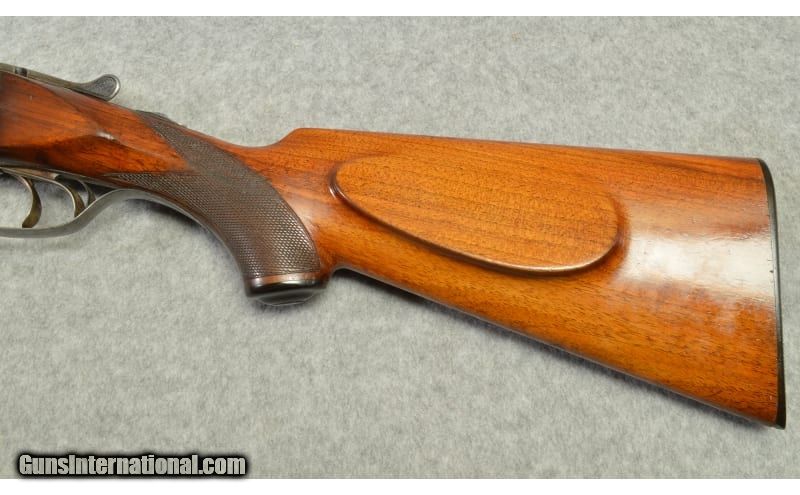 Description: For your consideration, the J.P. Sauer & Sohn Model VIII Side-by-Side shotgun chambered in 16 Gauge. This boxlock features Krupp barrels marked Nitro-Proof for 2 1/2" chambers. The stock and forearm are checkered, and the stock has a cheek rest for right-handed shooters. Serial number 250,449 which puts it around early World War II timeframe, possibly pre-war. 16 Gauge SOLD Chambers: 2 1/2 Metal Condition: Very Good Wood Condition: Very Good Bore Condition: Very Good Barrels: 29.5" Special-Gewehr-Laup-Stahl (Krupp Essen) Triggers: Double Stock Dimensions: "1 5/8"" Comb, 2 1/2"" Heel, & 14"" LOP Weight: 6 lbs Chokes: Modified Item Location: Centerville, OH |