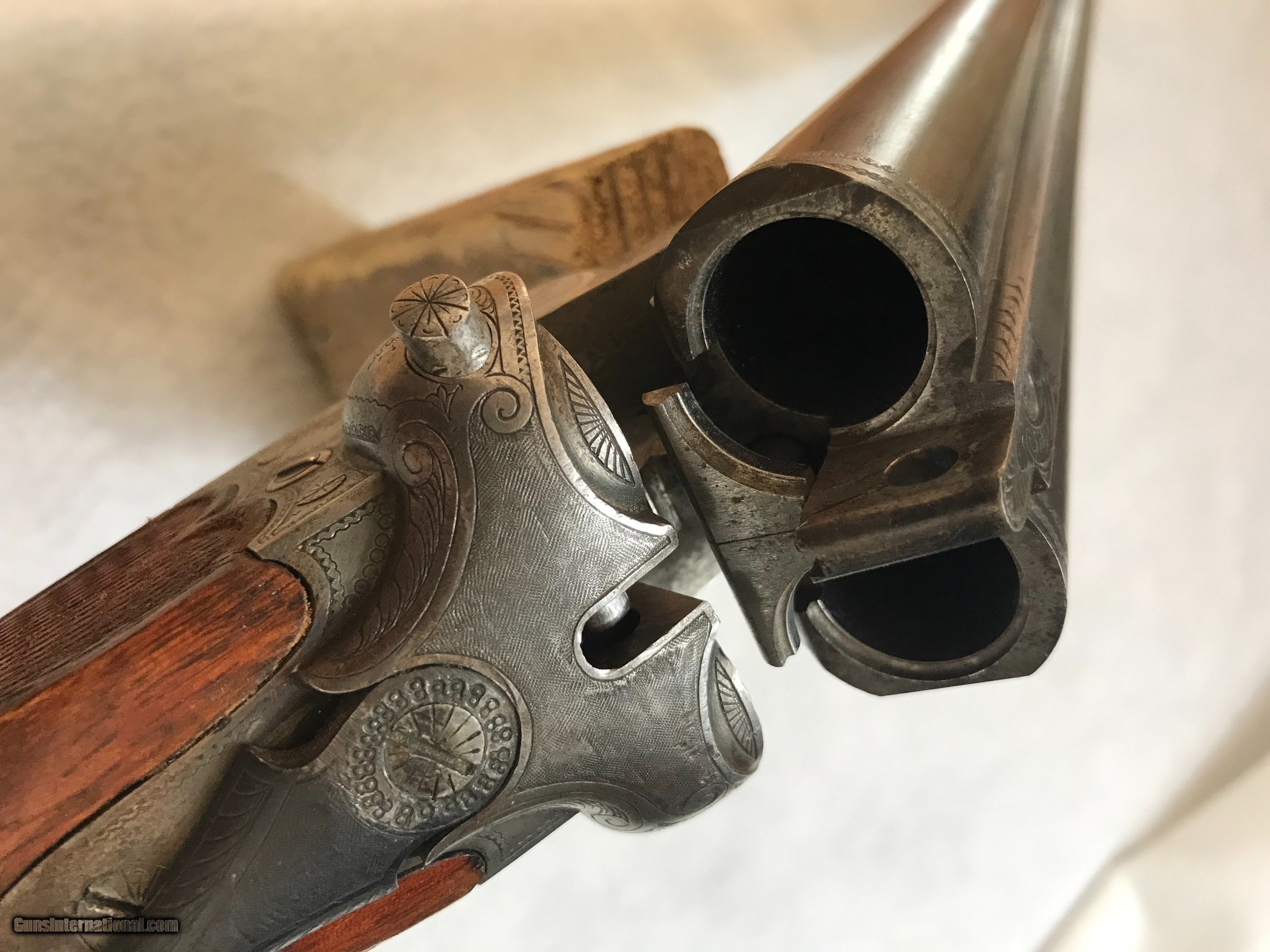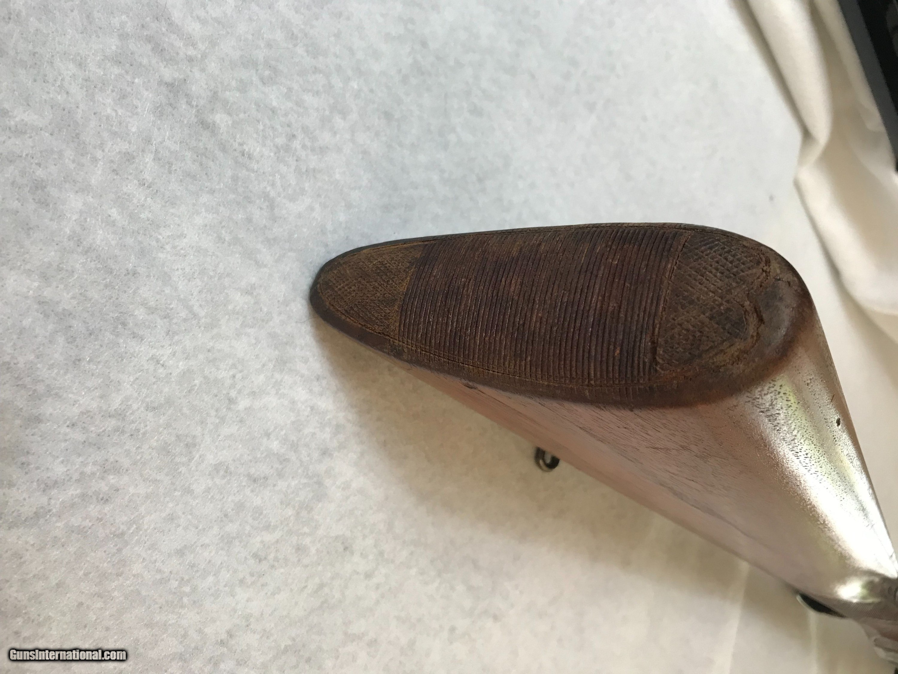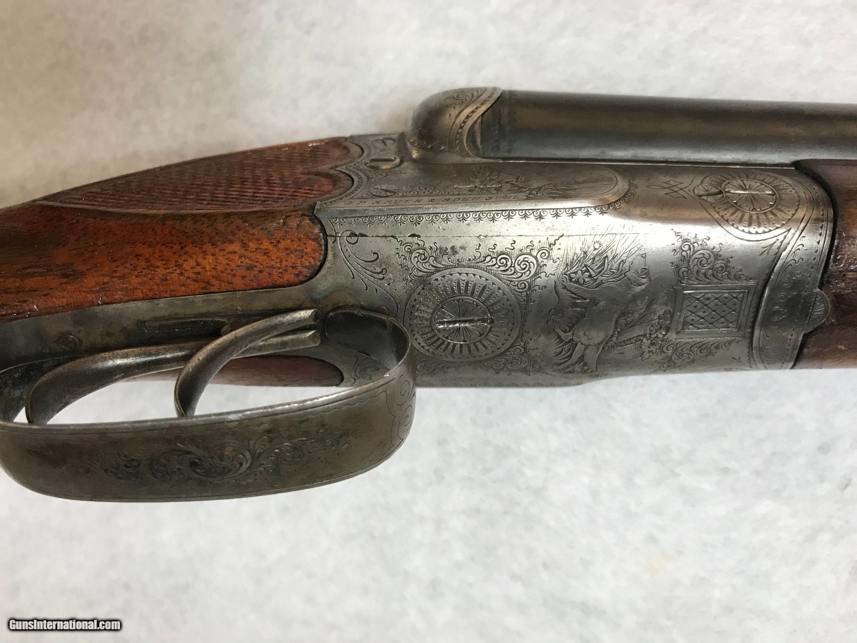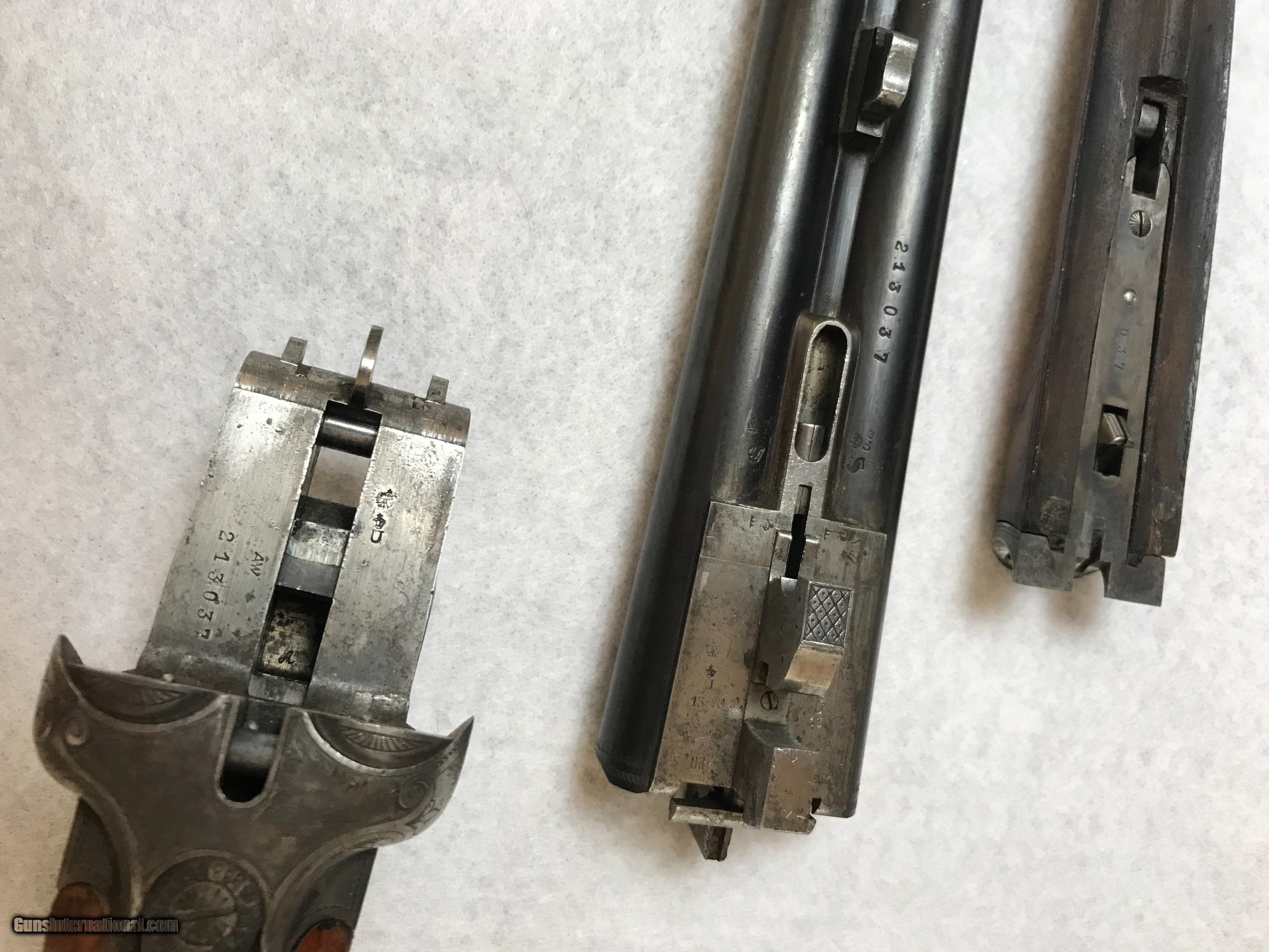 Description: JP Sauer&Sohn, Suhl, double barrel shotgun ( Germany) 1916. Model 17E , ejector 12 gauge 30 in. barrel length. Automatic cocking model with rotary cocking indicators. The barrels were manufactured using Krupp Three Ring steel. It is decorated with rich ornamental engraving, as well animalistic engraving - hunting dogs and birds. English style stock from Europian walnut wood. The action functions correctly. The safety sets automaticly. All numbers match. The gun is solid and shoots great. Based on the number, this hunting gun was made by Sauer & Son (Suhl, Germany) during the First World War. Serial number: 213 037. Bore condition: bright. Barrel constriction: Choke, half-choke. Metal finish: Partly blued. Weight - 7 lb 2 oz. Chambers : 2 ¾. Stock - 17 in. Stock drop - 1 5/8". Stock comb - 2 in. Stock heel : 2 ¼". LOP : 14 ¼ SOLD Curio/Relic: Yes Shotgun Gauge: 12 Gauge Manufacturer: JP Sauer & Son, Suhl Model: 17 E Serial Number: 213037 Barrel Length: 30 in Bore: smoth Chambers: 2 3/4 Condition: good, solid Metal Condition: good Wood Condition: good, small scratches Bore Condition: shinydouble Barrels: Double Barrel Type: smooth Action: double Triggers: two Stock: walnut wood Stock Dimensions: 17 in Stock Drop: 1 5/8 Stock Comb: 2 Stock Heel: 2 1/4"right Stock Cast: Regular Fore End: wooden with latch Butt Pad: no pad LOP: 14 1/4 Rib: anti-glare Finish: partly blued Weight: 7 lb 2 oz Sights: two Manufacture Date: 1916 year Choke Left: Fool Choke Right: half Engraving: animalistic engraving Item Location: Texas Proof:Nitro: yes Proof:Black: n/a |