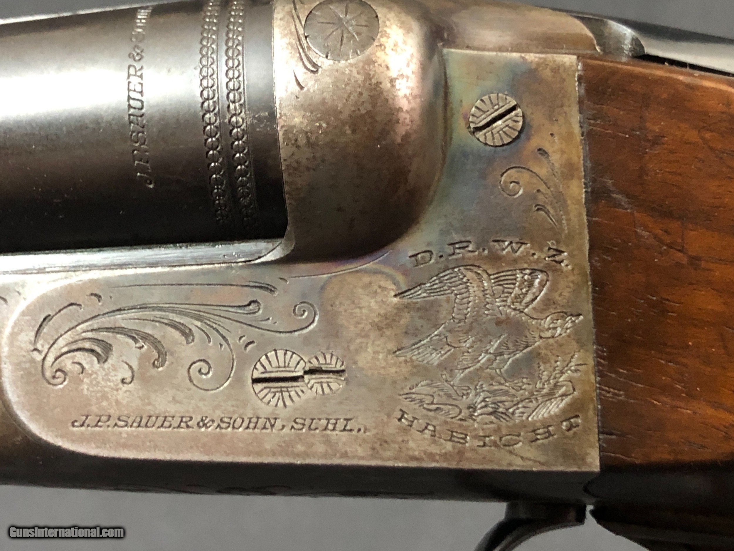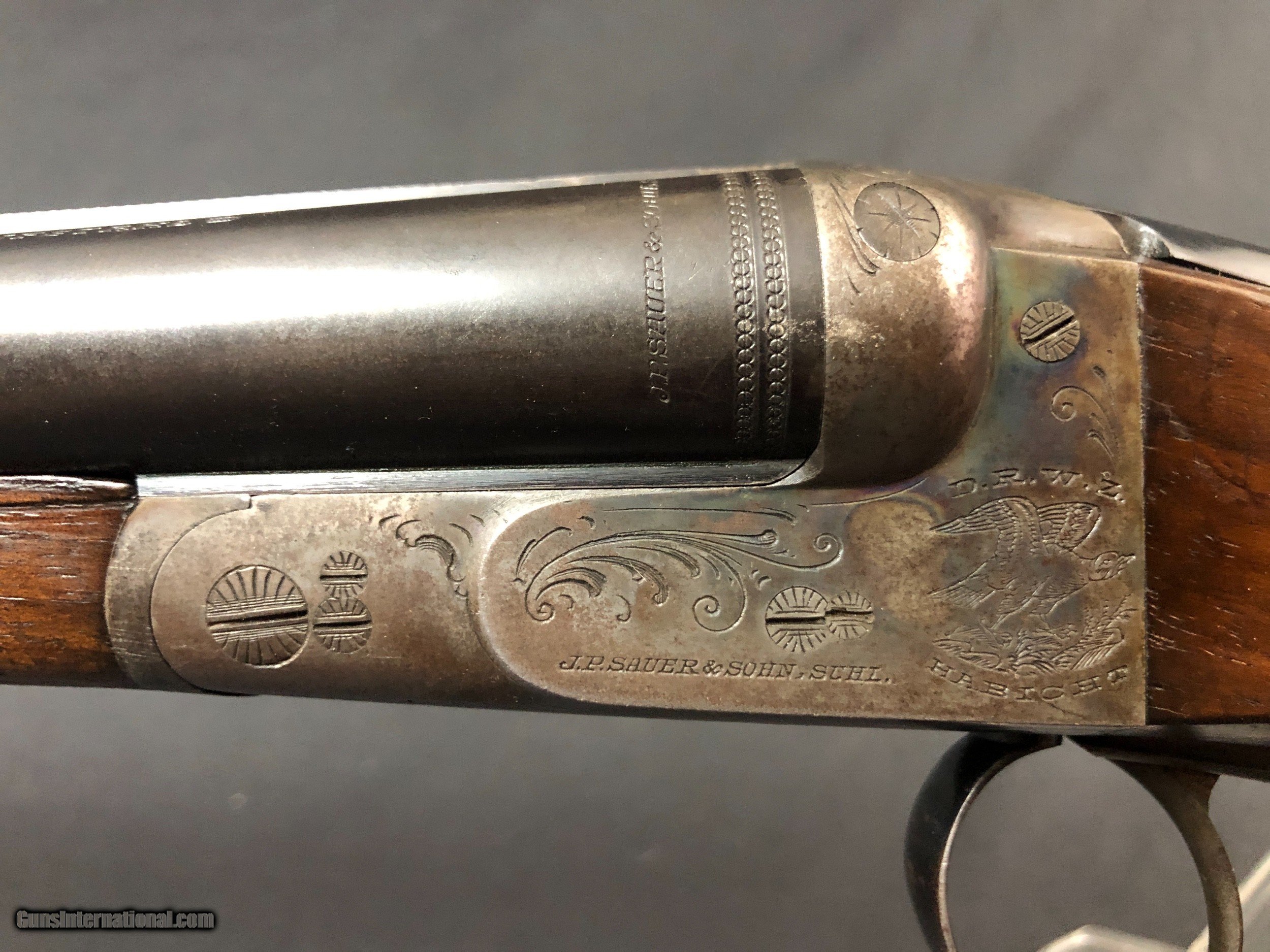 Description: Sold!! Quality built game gun from on of Germanys finest makers. Purdy double underbits. Greener crossbolt. Overhanging sears. Krupp steel barrels. Bright bores. Locks up tight. Barrels ring. No issues. Please call Mark 715-814-1295 Pack and ship $55 LAYAWAY: Layaway is available with 1/3 down of final total price including shipping/insurance within 7 days . Balance due in 45 days. Layaway Sales and guns modified at time of sale are FINAL with no refunds, no inspections, no returns. Chokes may be opened to your choice at time of sale for $50 per barrel . SOLD Curio/Relic: Yes Shotgun Gauge: 16 Gauge Manufacturer: J. P. SAUER Barrel Length: 27 5/8IN (70CM) Chambers: 2 1/2 IN Ejectors: NO Condition: NICE Bore Condition: BRGHT Barrel Type: KRUPP STEEL Stock Comb: 1 1/2IN Stock Heel: 2 3/8 IN LOP: 14 3/8IN Weight: 6 LBS 5OZ Manufacture Date: 1939 Choke Left: IMP/MOD Choke Right: MODIFIED Proof:Nitro: YES |
