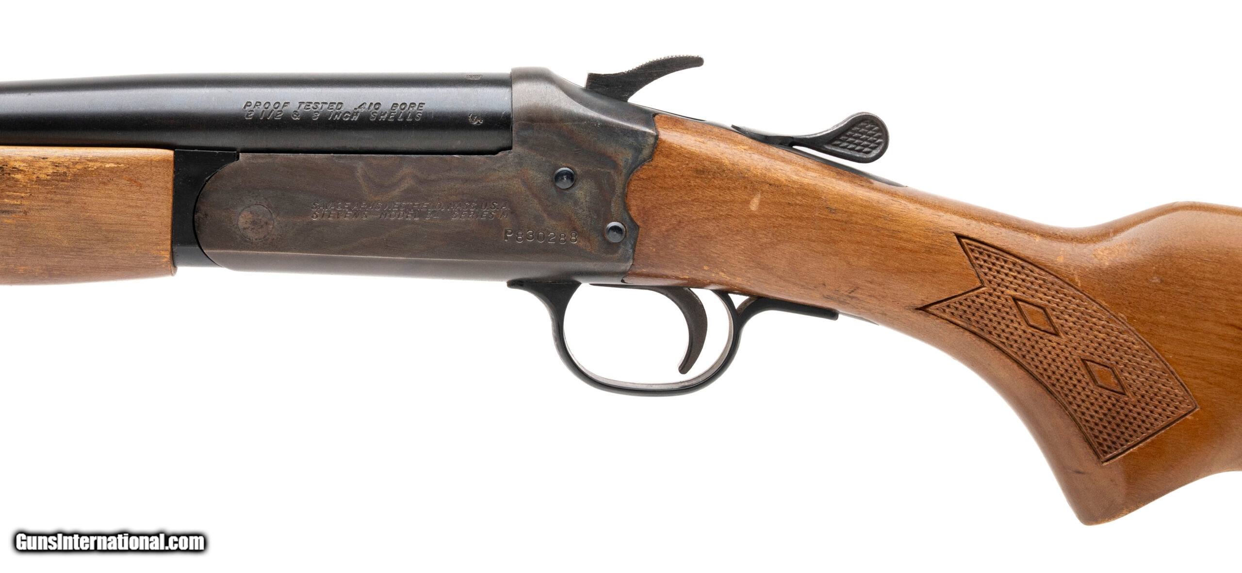 Description: "SN: P830288. 1960s vintage, .410 gauge with a 25.75"" barrel chambered for 2 1/2"" & 3"" shells. Bore is very good. Single-shot youth shotgun with color case hardened receiver, blue finished barrel, and checkered wood stock & forend with 12.75"" LOP. Finish and stock show handling marks throughout. Overall condition is good. SOLD |