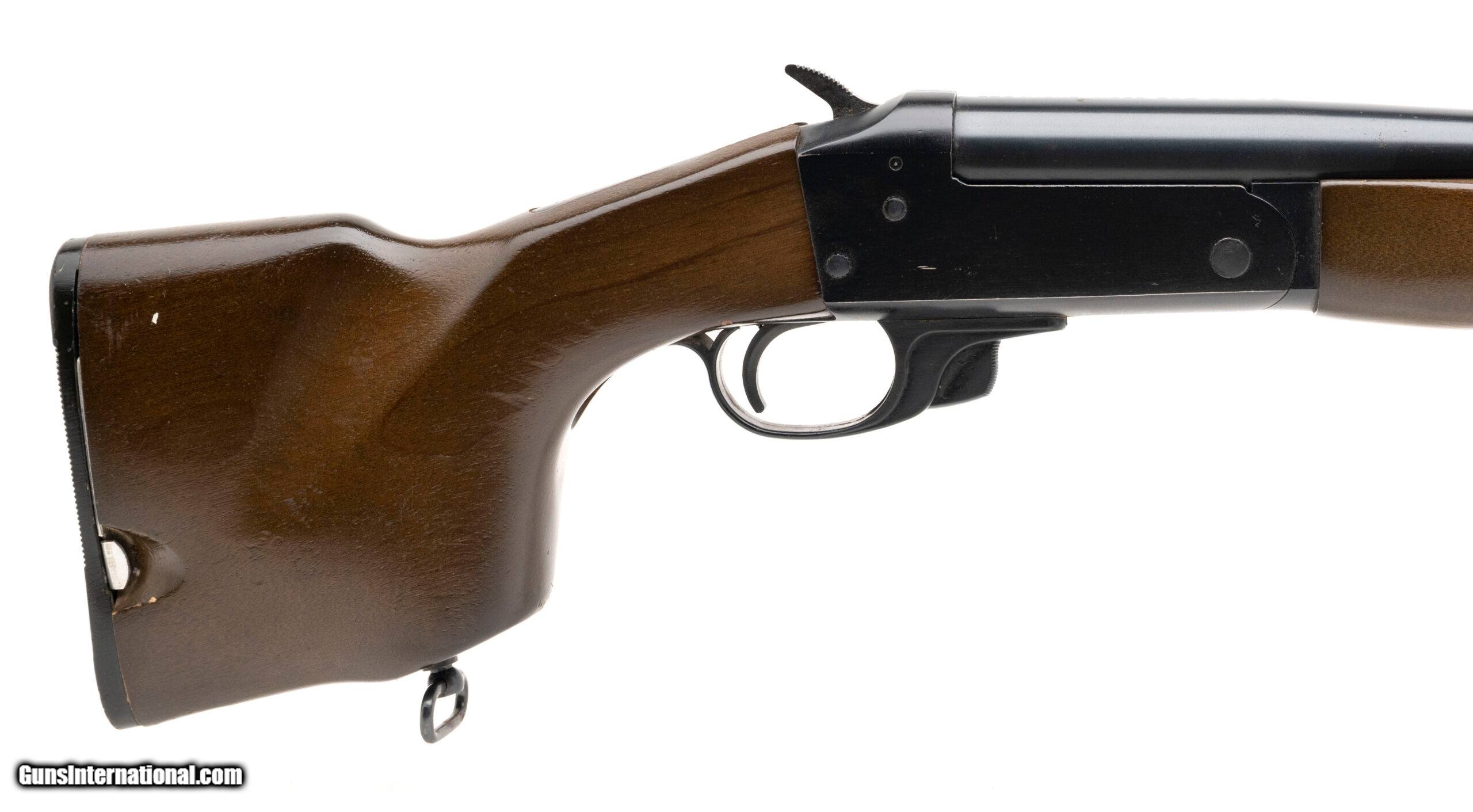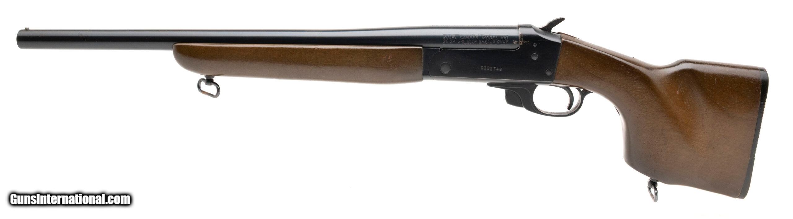 Description: "SN: D331748. Made circa 1979-1981, 20 gauge with an 18.5"" cyl. bore barrel chambered for 2 3/4"" shells. Bore is very good. Single-shot defense shotgun with blued finish, and wood stock & forend with a 7"" LOP. Finish & stock show moderate handling marks. Overall condition is very good. SOLD |