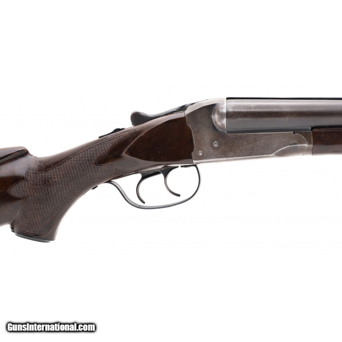 Description: " SN:NSN. Manufactured circa, 1940's, 16 Gauge with a 28"" barrel. Bore is in excellent condition. Side by side shotgun with grayish brown patina receiver-barrel, bead front sight and plastic stock. Overall condition is very good with handling wear. SOLD |