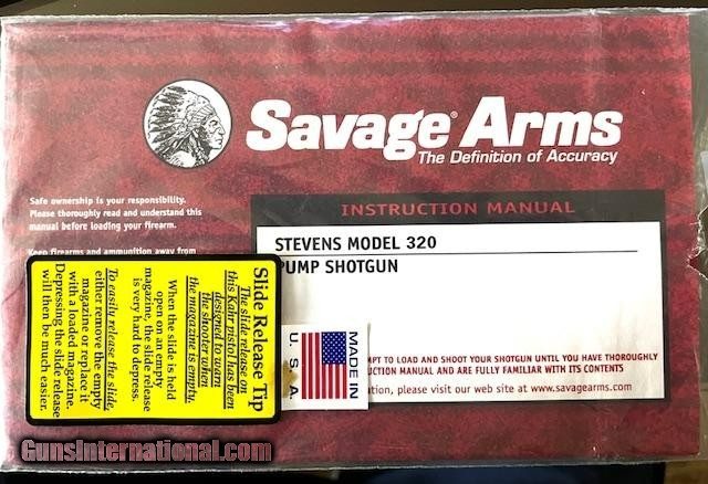LIKE NEW, SAVAGE ARMS/Stevens Model 320 Security Pump 12 Gauge Shotgun