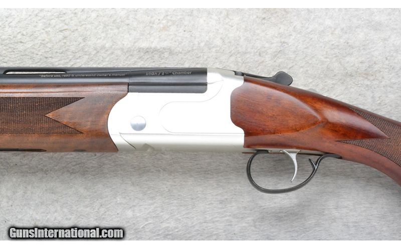 Description: This Savage Model 555 is an Over and Under shotgun in 16 Ga. It has 28 inch ventilated rib barrels with ejectors. A brass bead front sight. With 2 3/4 inch chambers it comes with 2 choke tubes. The butt stock is a checkered grip walnut pistol grip. The forearm is a checkered grip walnut. It has a SST. 16 Gauge SOLD Chambers: 2 3/4 inch. Metal Condition: Excellent. Wood Condition: Excellent. Bore Condition: Shiny. Barrels: 28 inch ventilated rib barrels with ejectors. Triggers: SST Stock Dimensions: LOP 14 1/2 inches. Fore End: Checkered grip walnut. Butt Pad: Black rubber recoil pad. Weight: 6 lb. 0 oz. Sights: Brass front bead. Chokes: Comes with an IC and Skeet choke tube. Item Location: Richfield, WI |