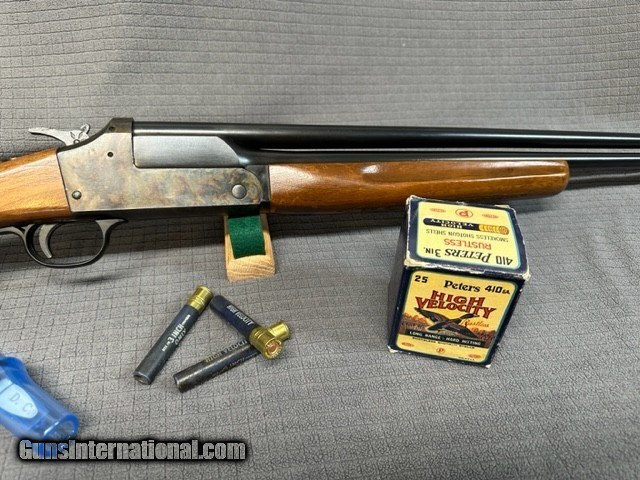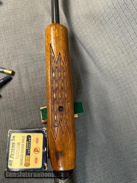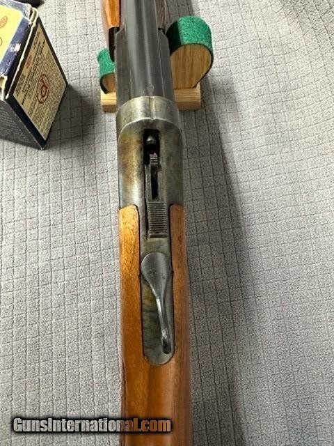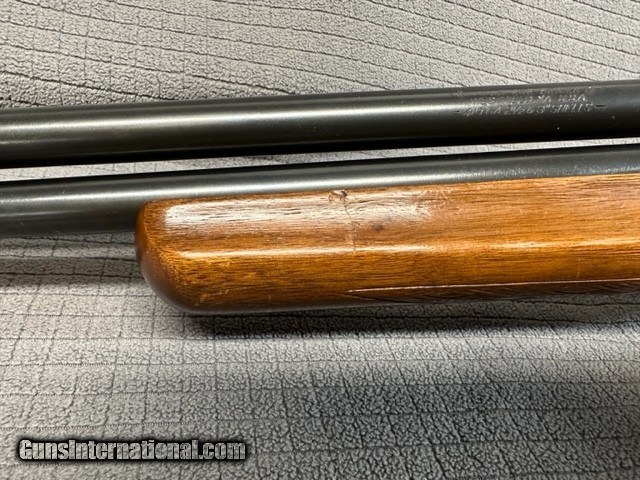 Description: Seldom seen Savage 242- 410 double in nice condition. Manufactured from 1977-81 only. Same gun as the 24 rifle /shotgun combo. 24" full choke 3" chambered. Barrel selector on hammer, single trigger. Be great for ladies or kids. Metal is very good. Bores are mirror bright. Wood is good, just a few minor dings you can see in pics. Shipping $50.00(lower 48.) No CA Sales. Thanks. SOLD |
