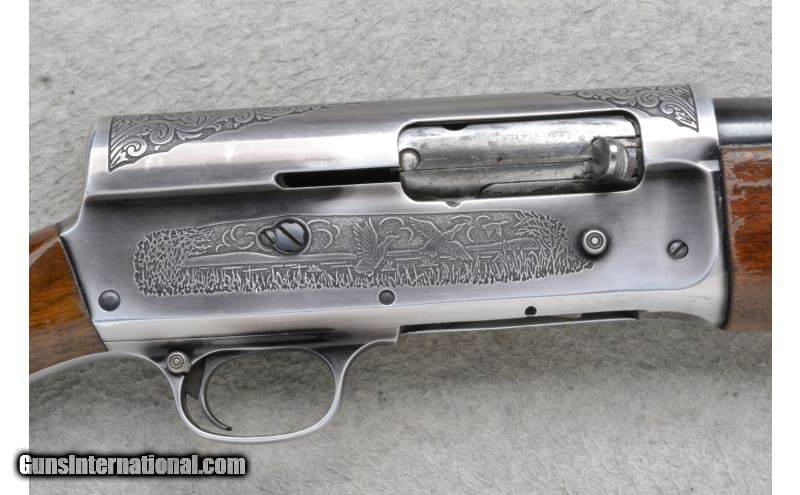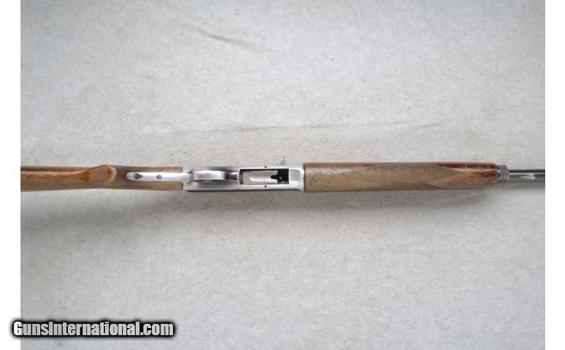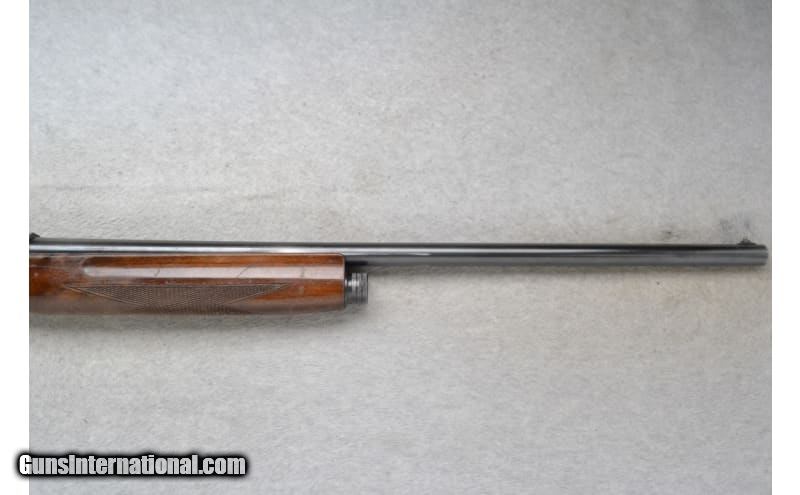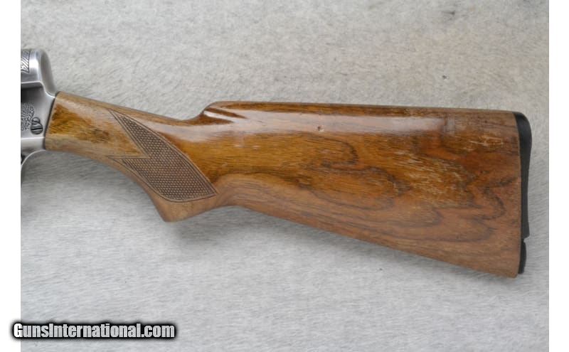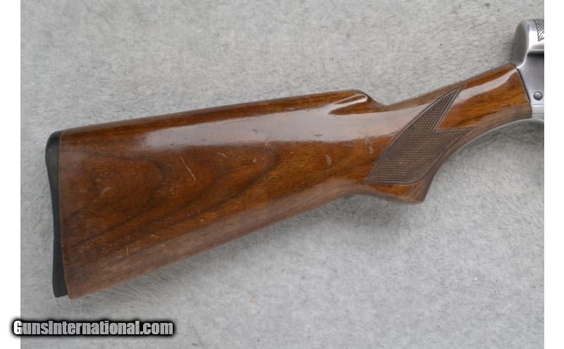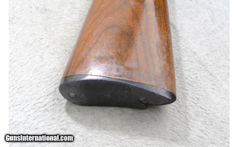 Description: This Savage Model 745 is a right-hand semi auto shotgun in 12 Gauge. It has a 28-inch fixed Modified choke barrel with a brass bead front sight and a 2.75-inch chamber. The forearm is checkered walnut with finger grooves and shows obvious wear and handling marks, and slight cracks on the top edge of the wood near the barrel and receiver. The receiver is engraved with ducks in flight on the right and quails in flight on the left. The buttstock is a checkered grip walnut pistol grip with handling marks and a black polymer buttplate that is broken on the bottom edge. Internal magazine plug/cap is missing. Includes a slip-on Red Head red rubber buttpad. The serial number on the barrel matches the receiver. S/N 109777 12 Gauge SOLD Chambers: 2.75 inches Metal Condition: Good with handling marks and mild freckling Wood Condition: "Good with handling marks, some of the finish has been worn away. Bore Condition: Good Barrels: 28 inches Fore End: Checkered walnut with finger grooves Butt Pad: "Black polymer buttplate, broken. Red Head slip-on red rubber buttpad included. Weight: 6 lbs 14 oz Sights: Brass bead front sight Chokes: Fixed Modified choke barrel Item Location: Richfield, WI |