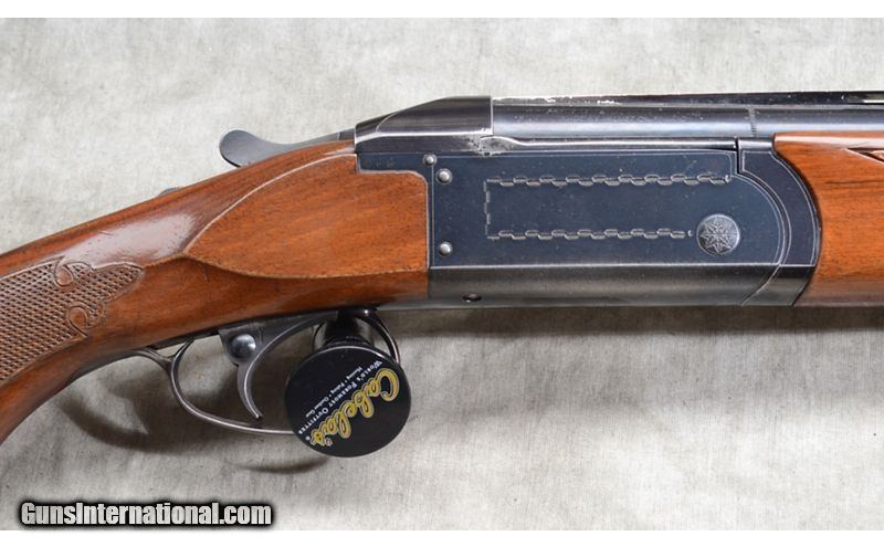 Description: Features of this field gun include nice wood with pleasing grain and nice blue. Classic black wood plate and gold fore and mid-beads. Unique retracting breech cover design reminiscent of the Remington 3200. 12 Gauge SOLD Chambers: 2 Metal Condition: Good. Blue is worn at the high points and carry point. A few shallow pits. Wood Condition: Good. A large number of scratches and dents. Bore Condition: Bright and shiny. Barrels: 26-inch Triggers: Factory selective single trigger. Stock Dimensions: 14 inch LOP. Fore End: Well-matched walnut. Butt Pad: Black wooden plate. Weight: 7 lb - 2 oz Sights: Ventilated rib with gold beads. Chokes: Fixed Modified and Improved Cylinder Item Location: Rogers |