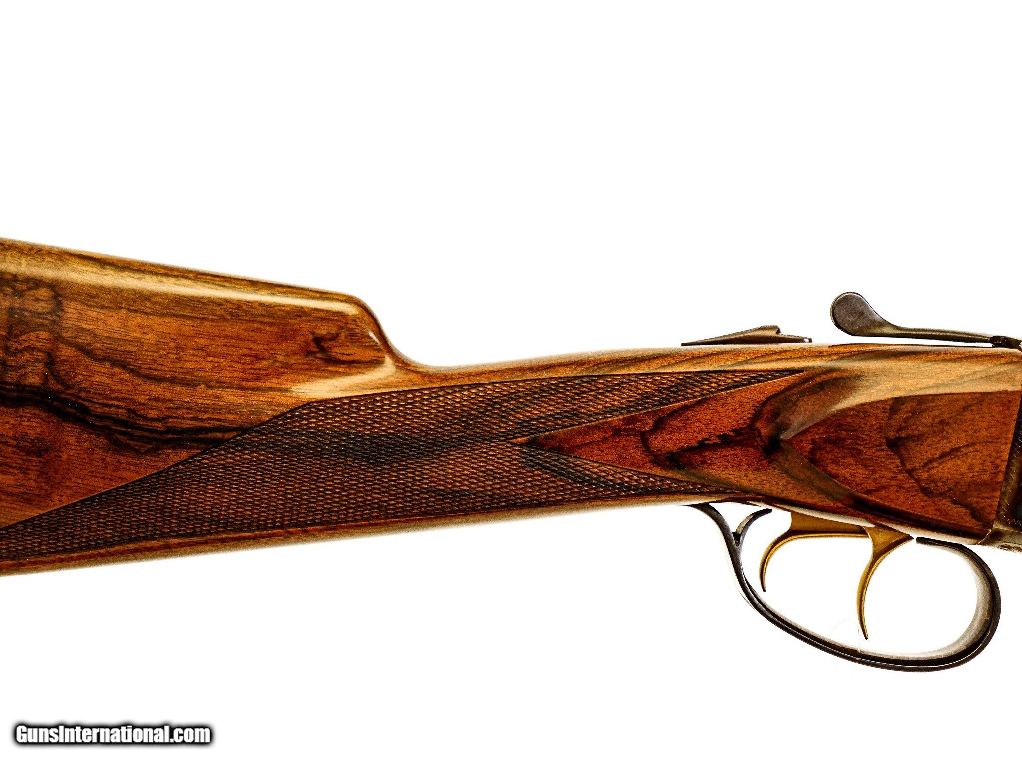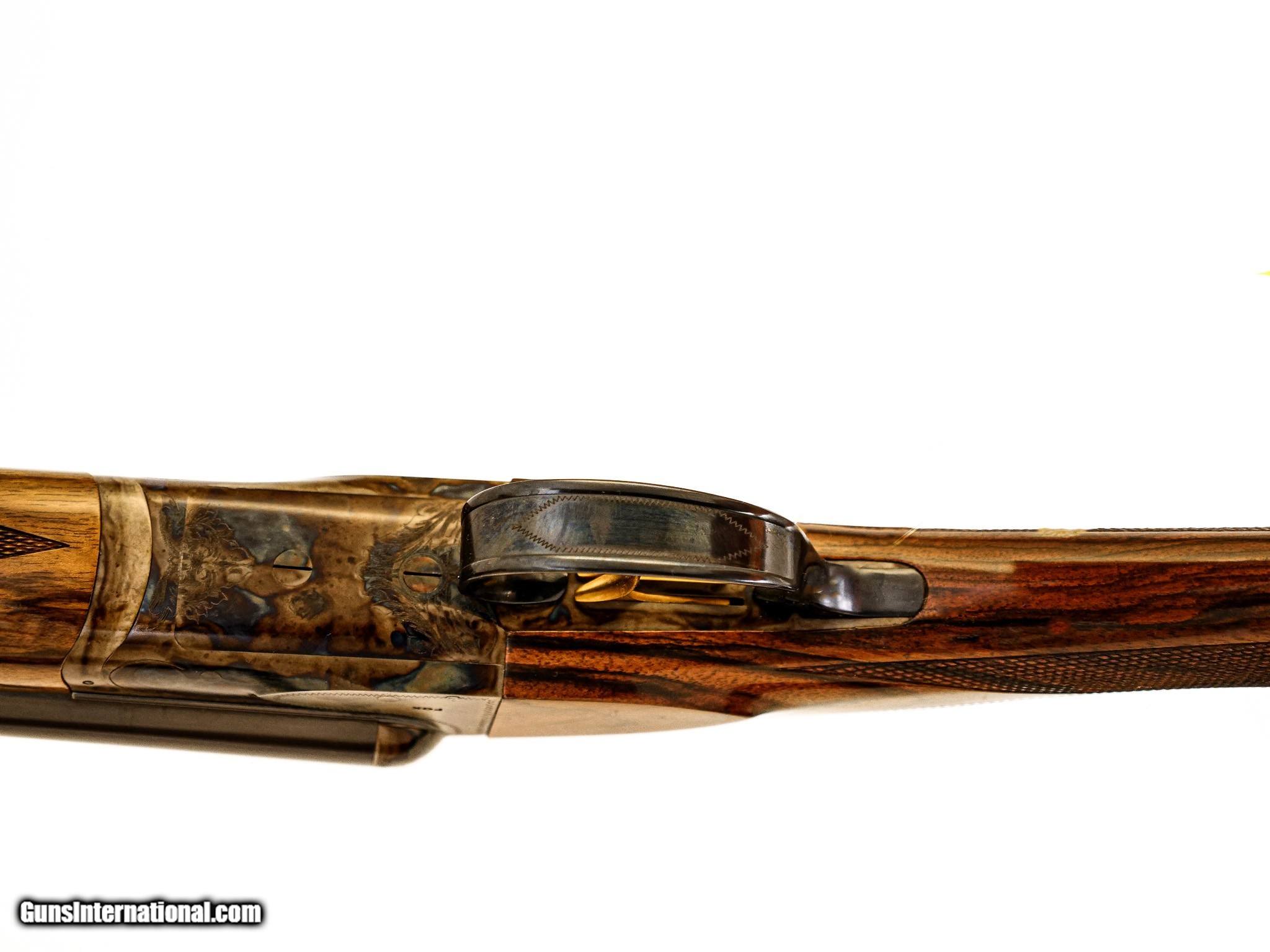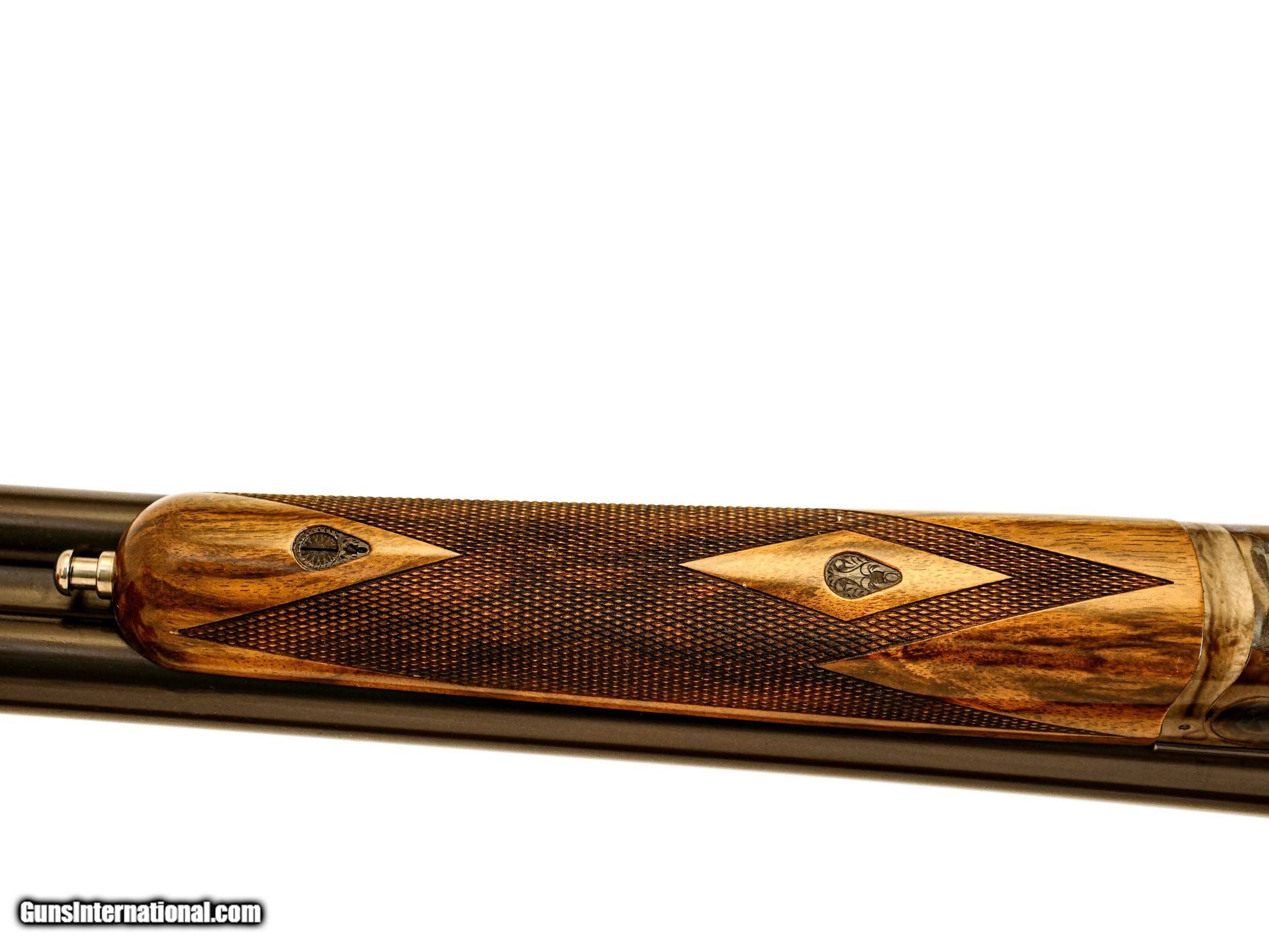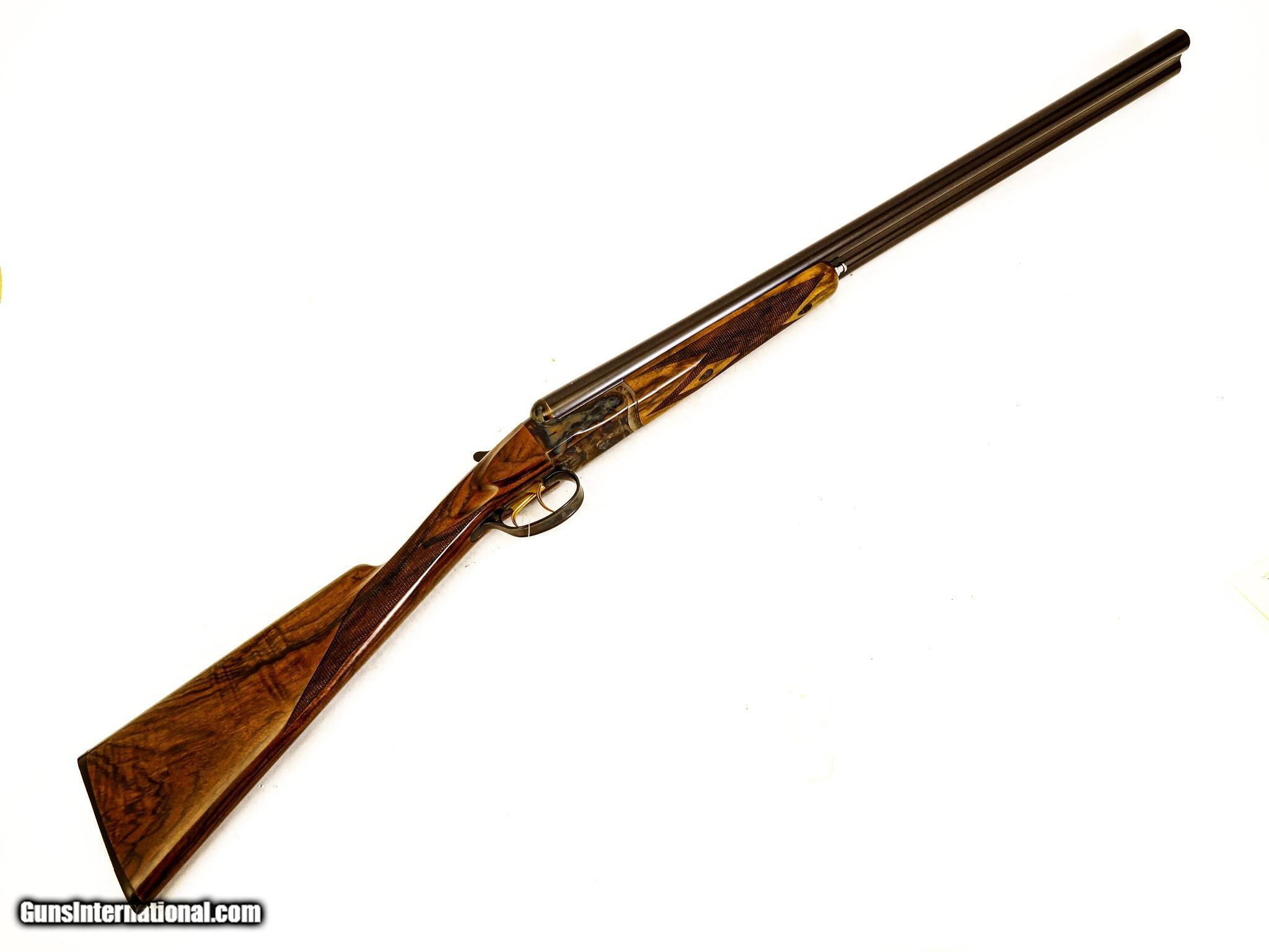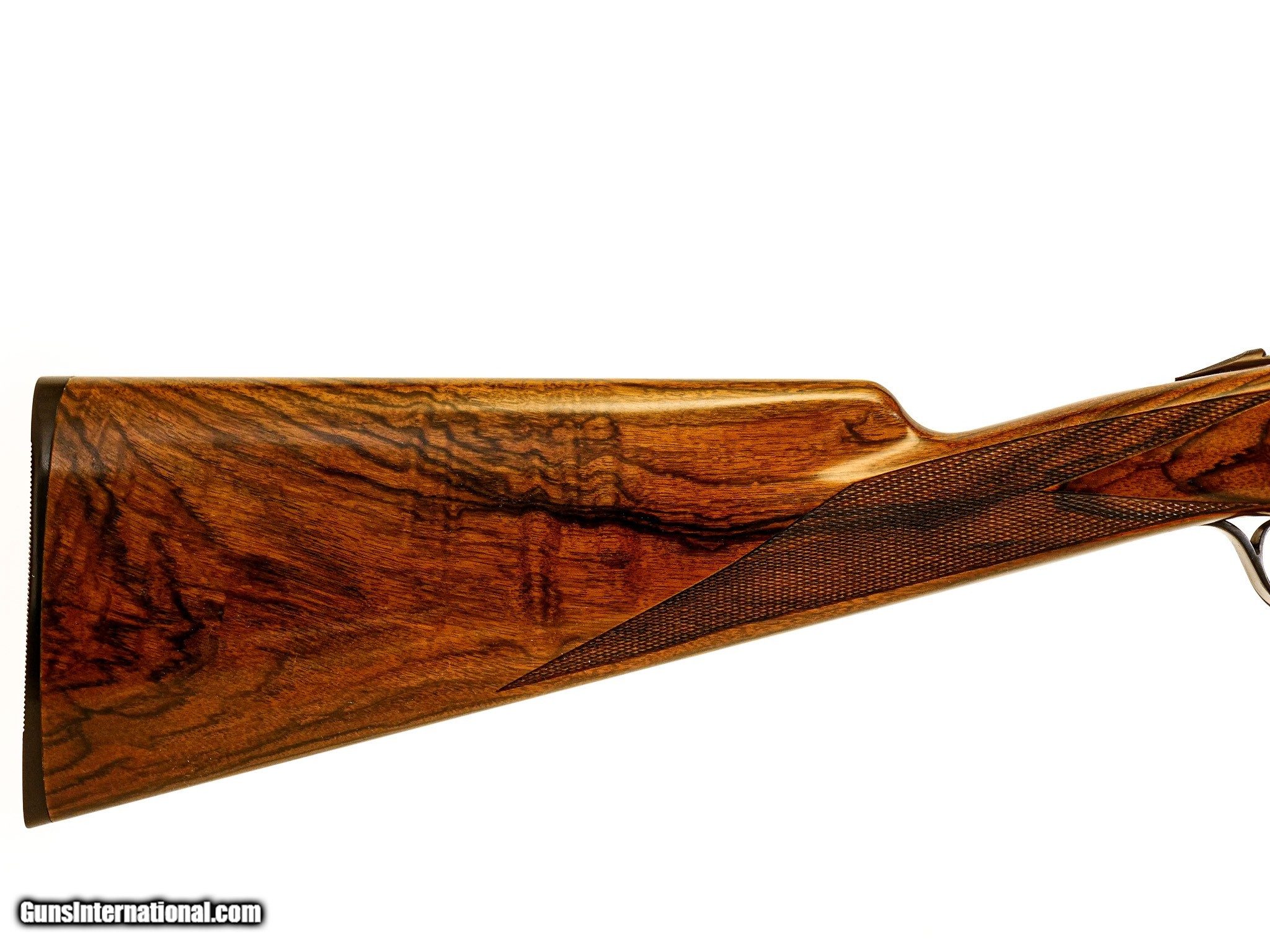 Description: SAVAGE – Fox A Grade, 12ga. 26” Barrels with Factory Screw-in Choke Tubes. Highly figured Turkish circassian walnut straight grip stock, factory butt plate, game rib, gold double triggers, automatic ejectors, A grade engraving over magnificent traditional bone and charcoal case coloring, 2 point checkering, rare opportunity, factory new and unfired, cased, available for immediate delivery. S & H - $50.00. Inv: 52117 6 lbs. 14 oz. 14 1/2” x 1 1/8” x 2” $4,250.00 SOLD |