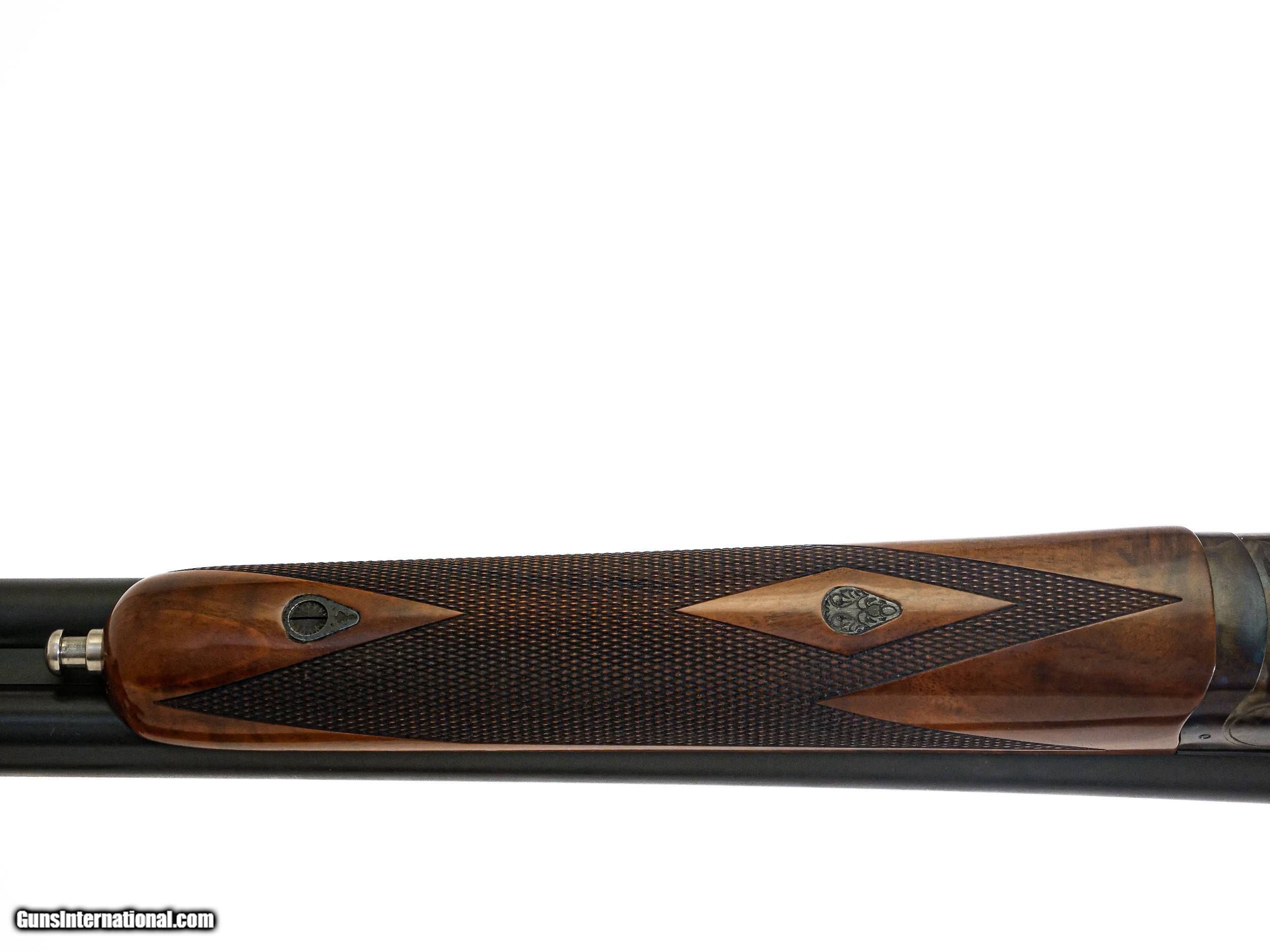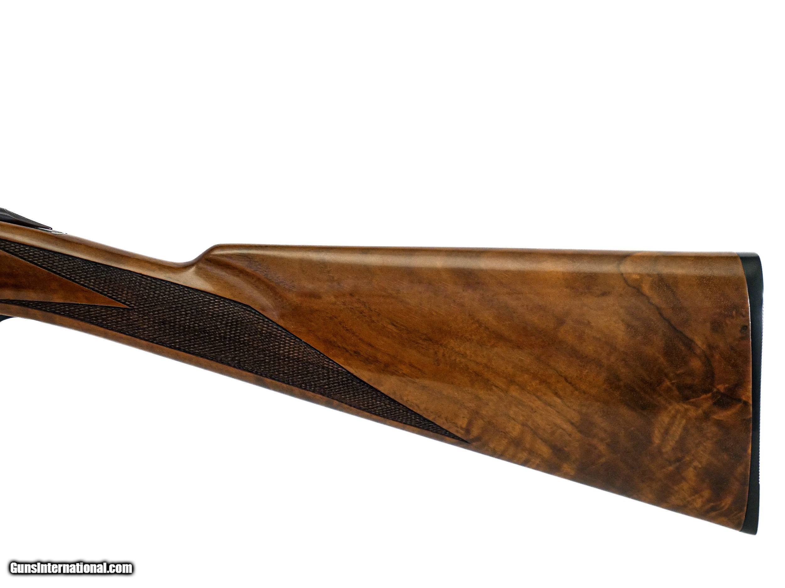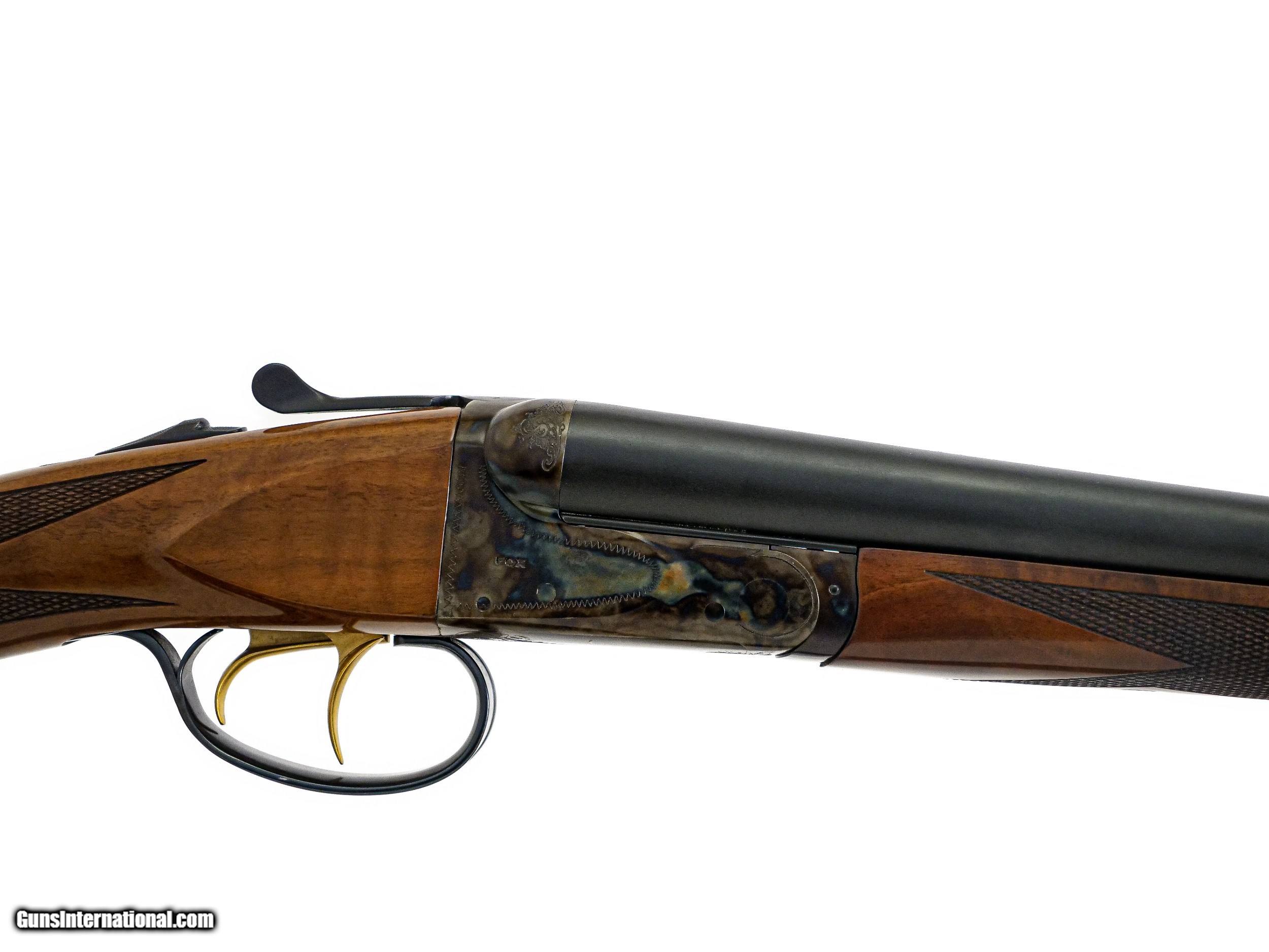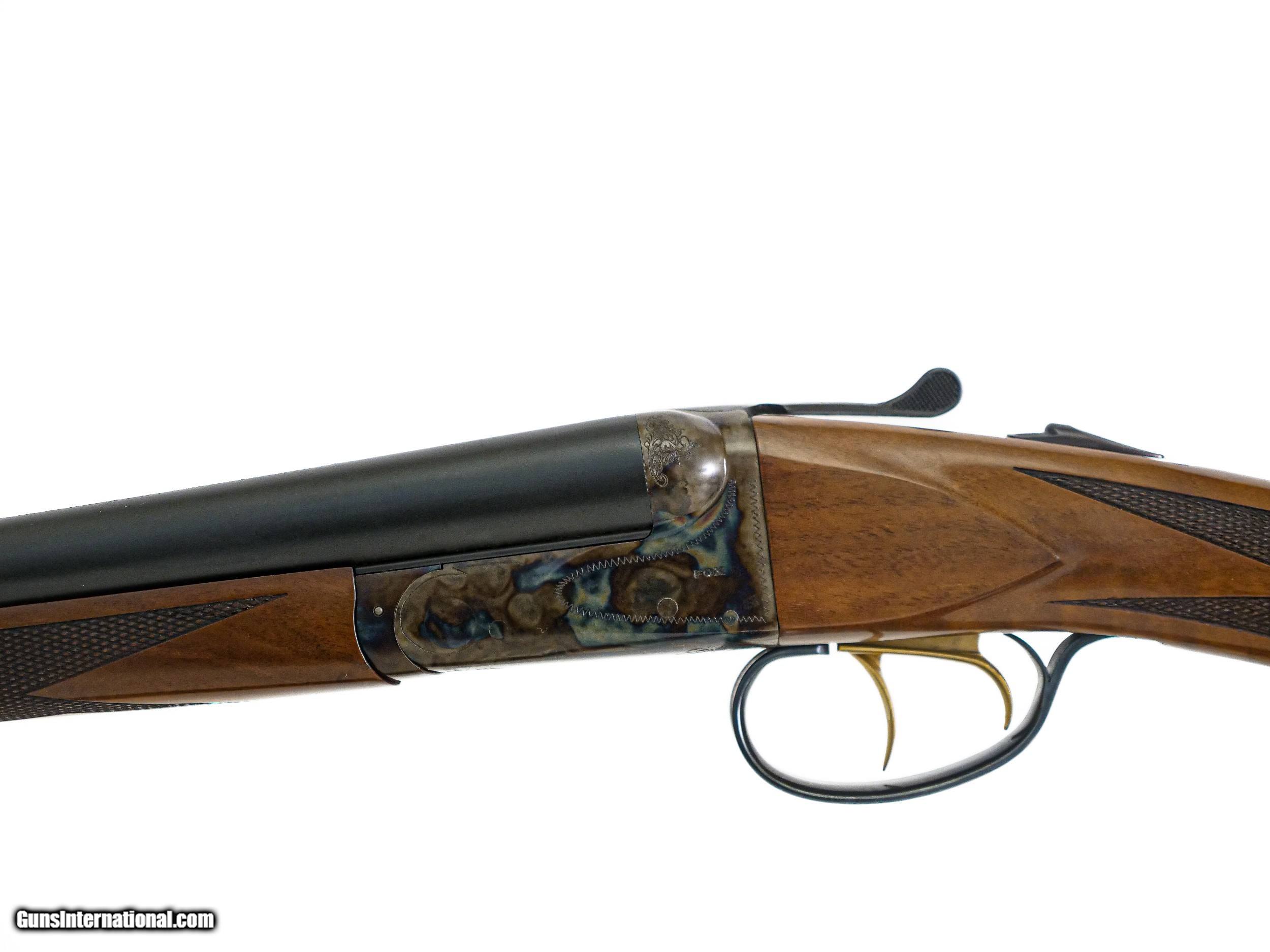 Description: SAVAGE - Fox A Grade, 20ga. 26” Barrels with Factory Screw-in Choke Tubes. Deluxe walnut straight grip stock, factory butt plate, game rib, gold double triggers, automatic ejectors, A grade engraving over magnificent traditional bone and charcoal case coloring, 2 point checkering, rare opportunity, factory new and unfired, cased, available for immediate delivery. S & H - $50.00. Inv: 42475 5 lbs. 14 oz. 14 3/8” x 1 3/8 ” x 2 1/4” $4,250.00 SOLD |