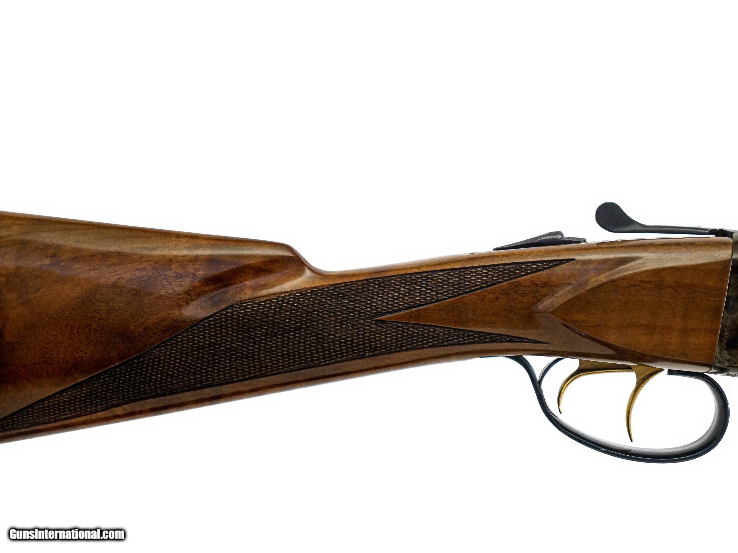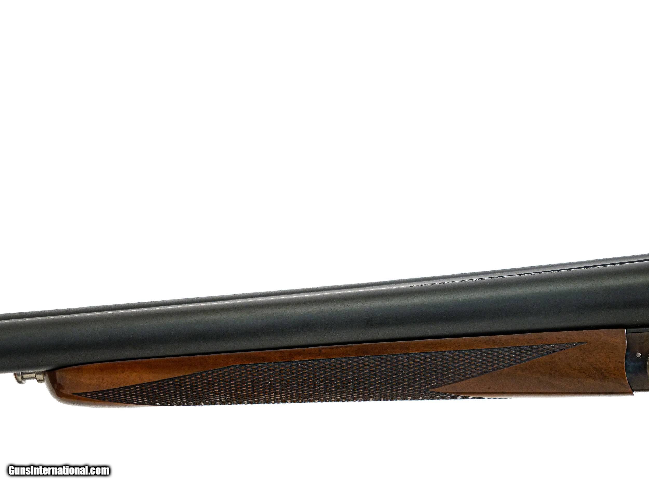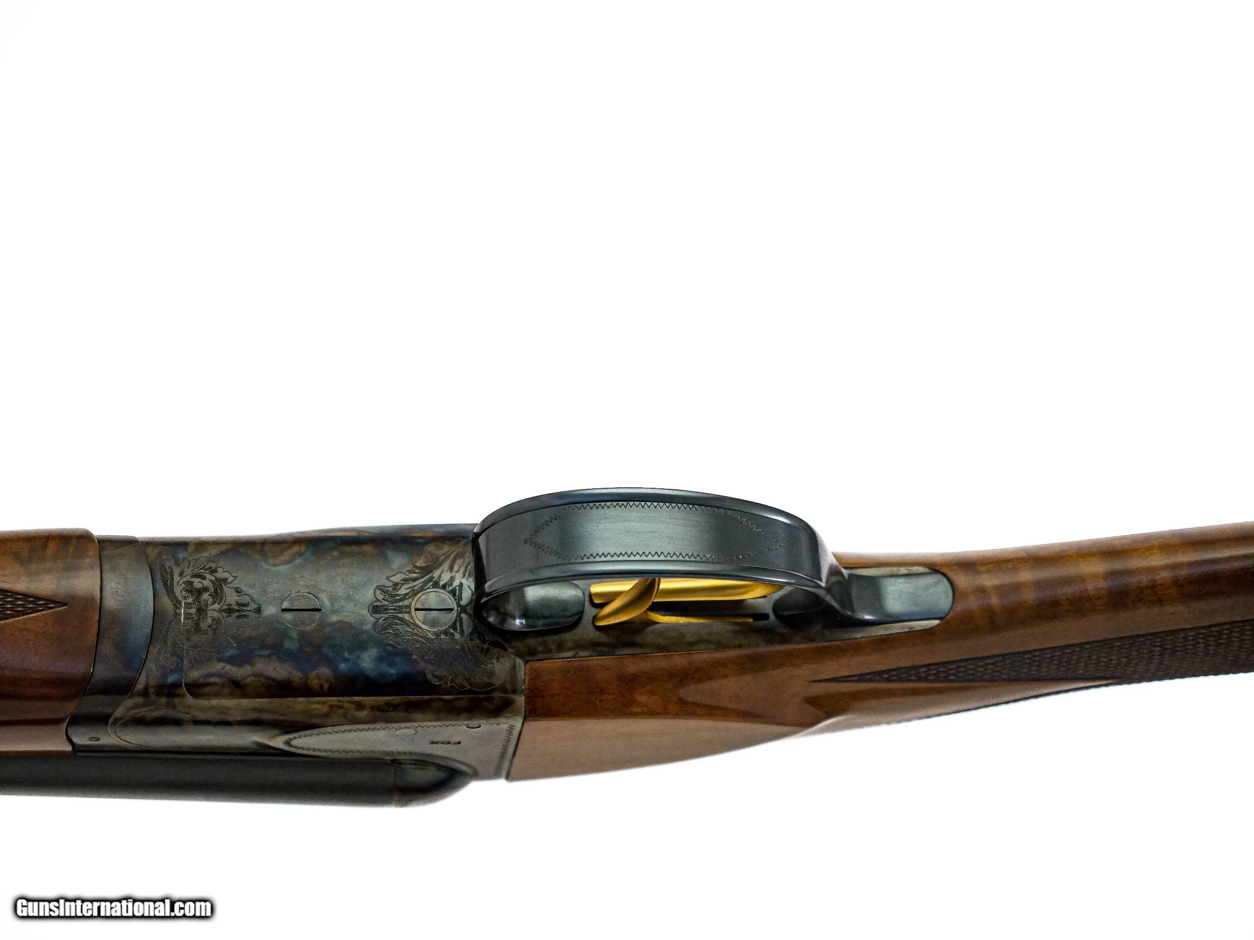 Description: SAVAGE - Fox A Grade, 20ga. 26” Barrels with Factory Screw-in Choke Tubes. Deluxe walnut straight grip stock, factory butt plate, game rib, gold double triggers, automatic ejectors, A grade engraving over magnificent traditional bone and charcoal case coloring, 2 point checkering, rare opportunity, factory new and unfired, cased, available for immediate delivery. S & H - $50.00. Inv: 42475 5 lbs. 14 oz. 14 3/8” x 1 3/8 ” x 2 1/4” $4,250.00 SOLD |