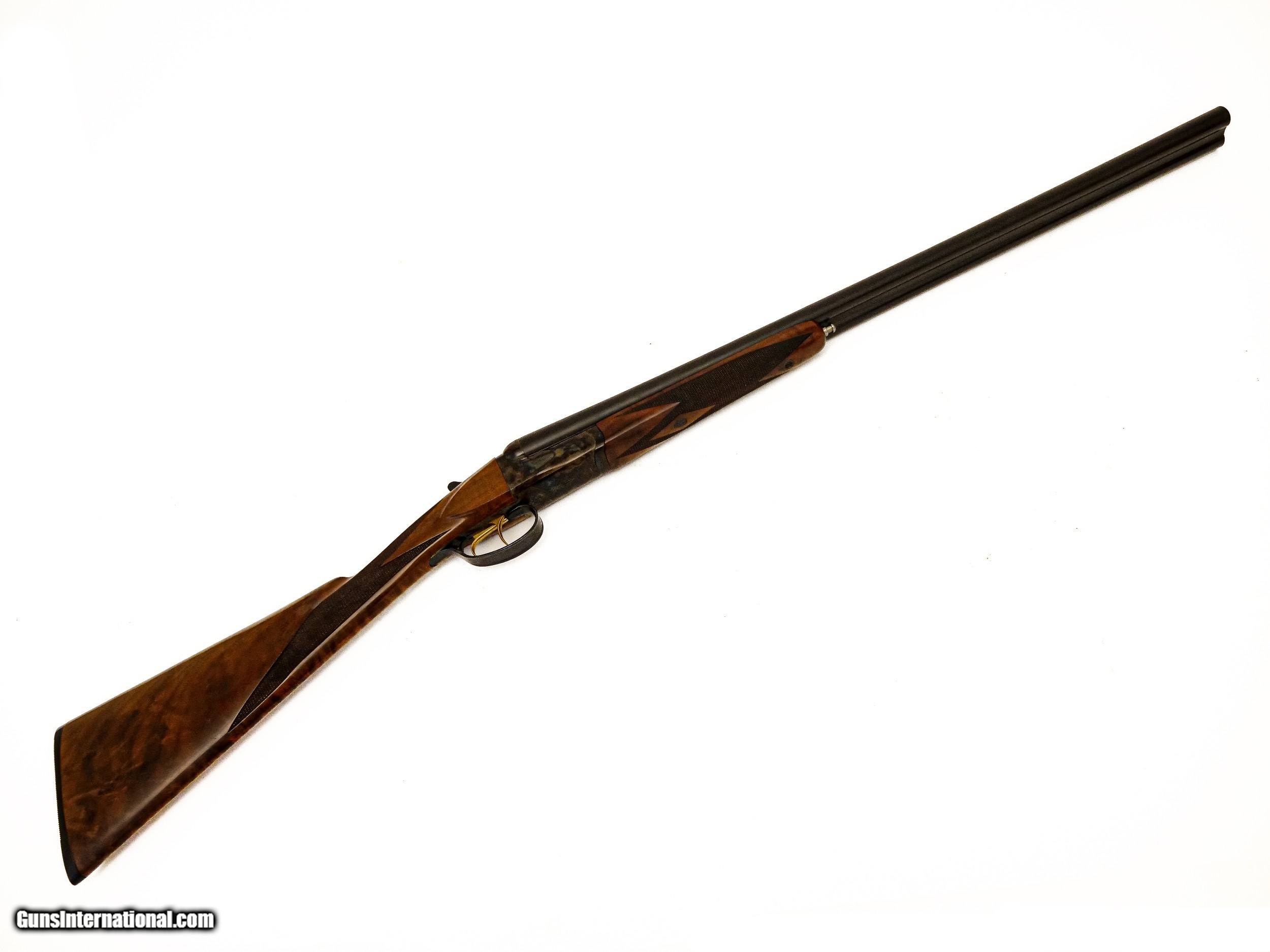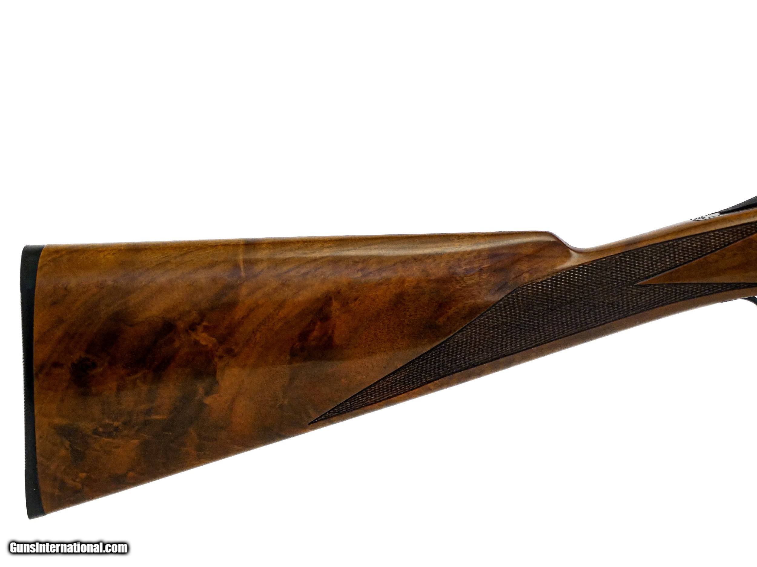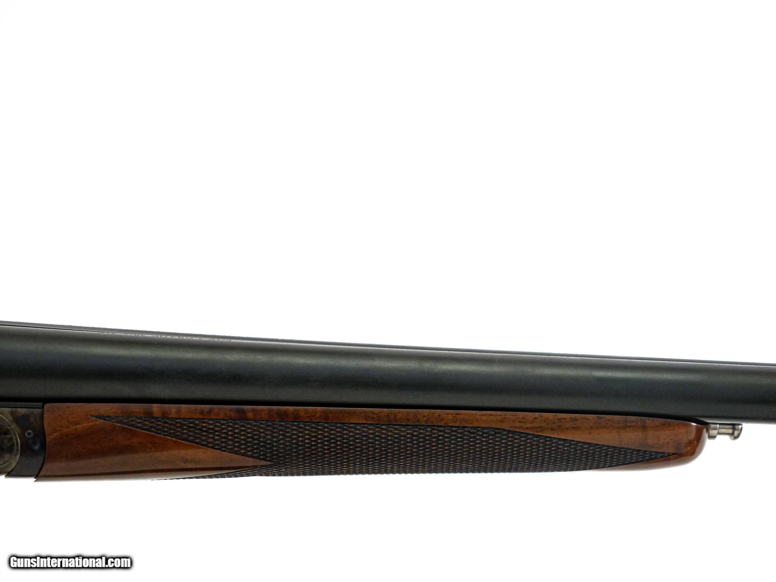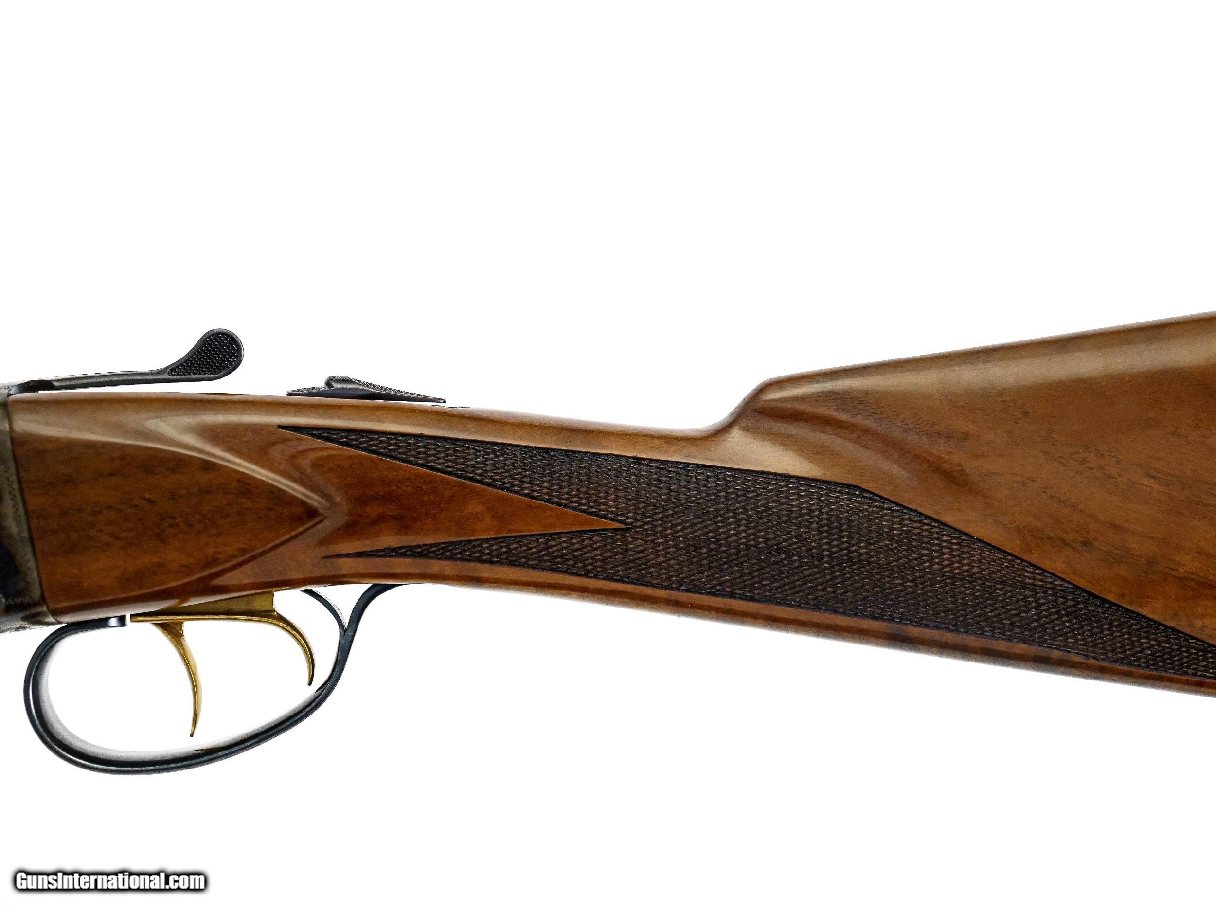 Description: SAVAGE - Fox A Grade, 20ga. 26” Barrels with Factory Screw-in Choke Tubes. Deluxe walnut straight grip stock, factory butt plate, game rib, gold double triggers, automatic ejectors, A grade engraving over magnificent traditional bone and charcoal case coloring, 2 point checkering, rare opportunity, factory new and unfired, cased, available for immediate delivery. S & H - $50.00. Inv: 42475 5 lbs. 14 oz. 14 3/8” x 1 3/8 ” x 2 1/4” $4,250.00 SOLD |
