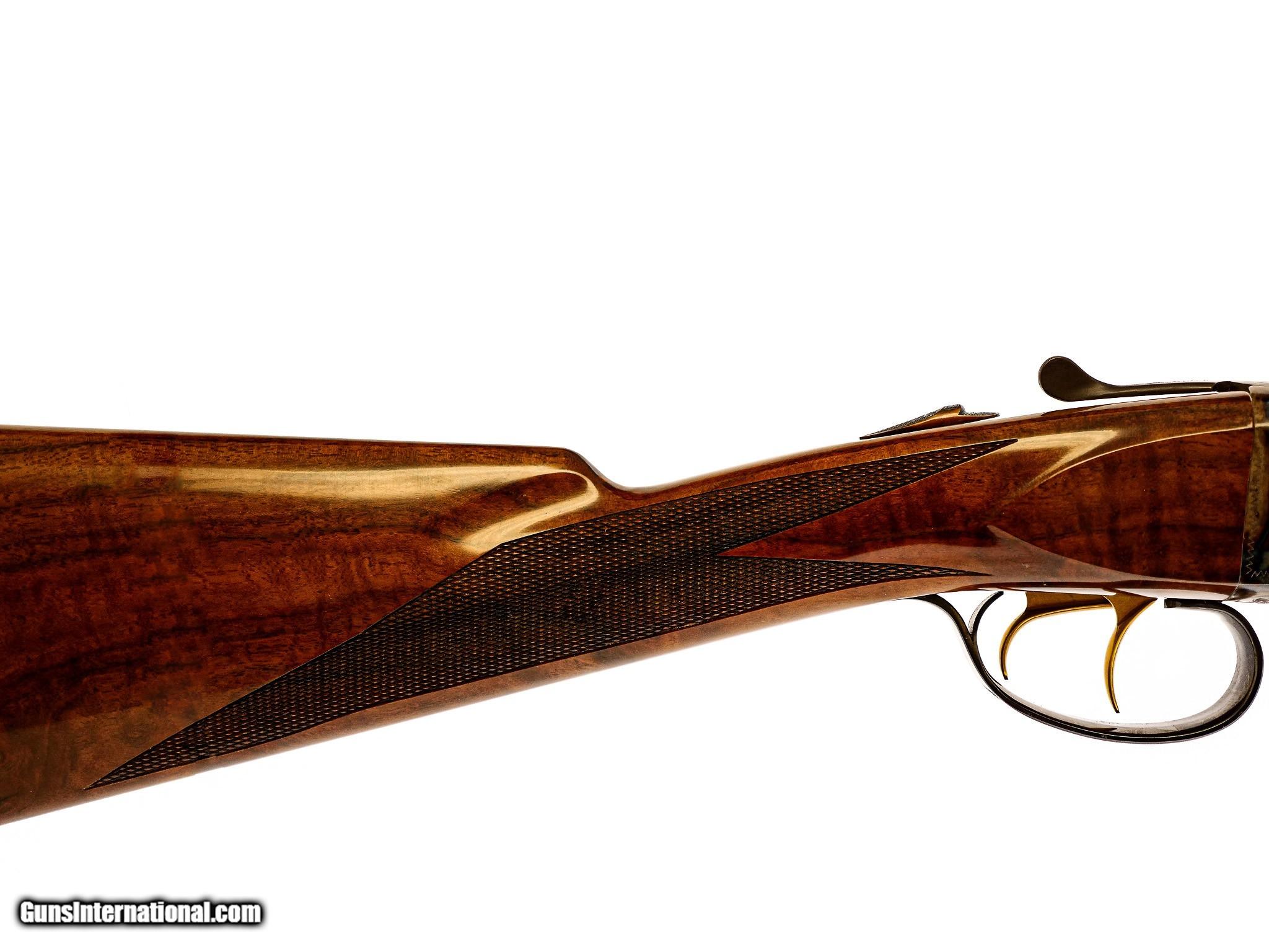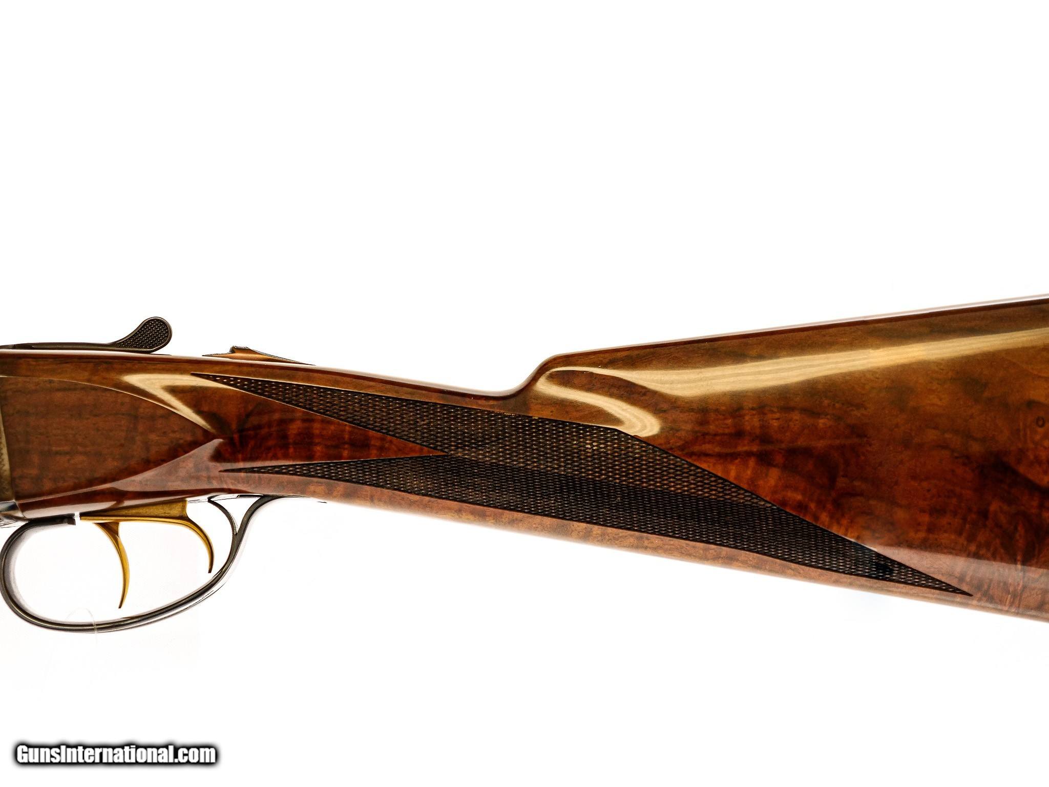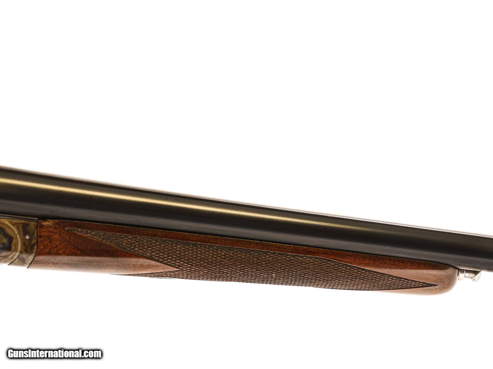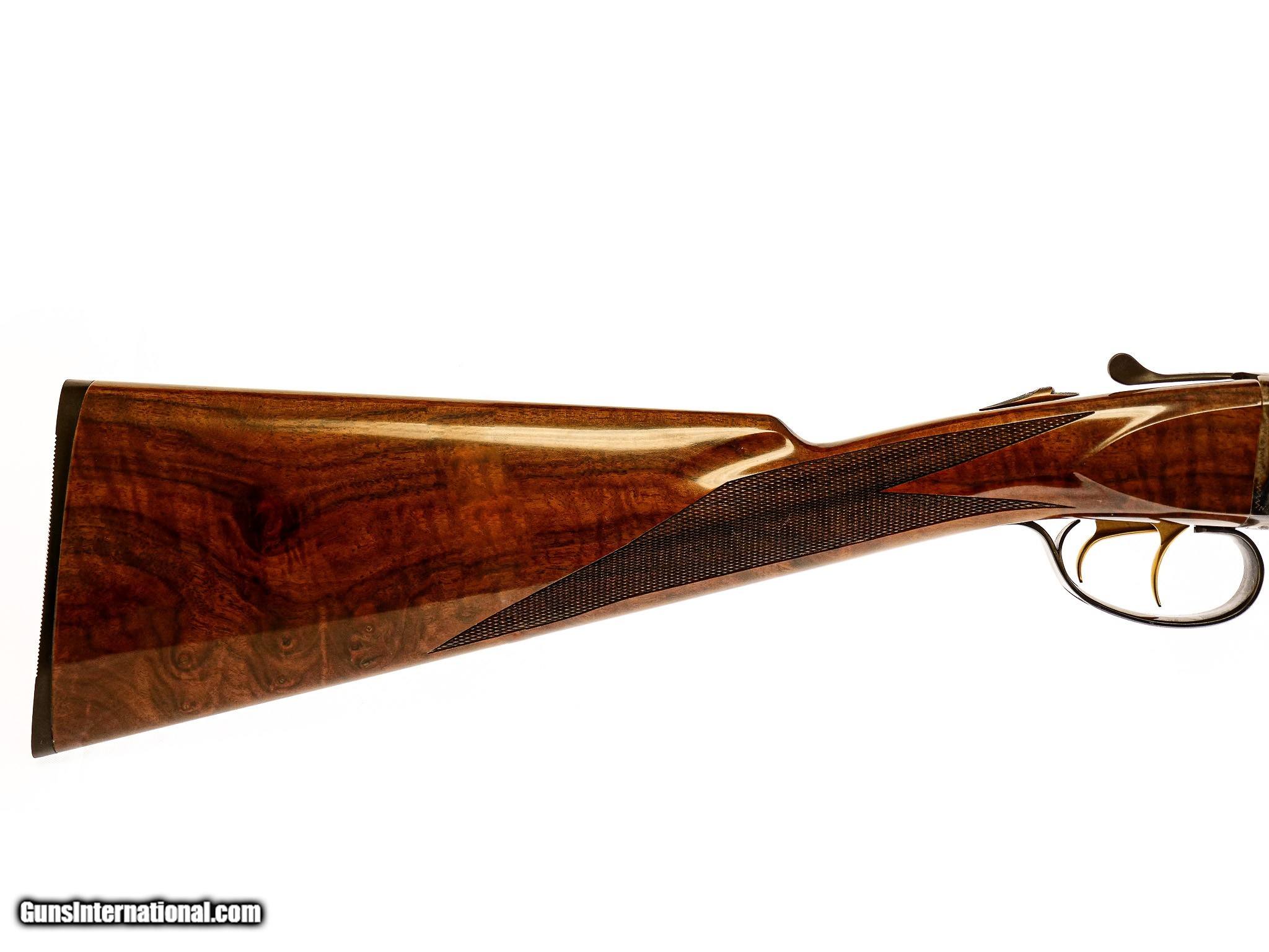 Description: SAVAGE - Fox A Grade, 20ga. 26" Barrels with Factory Screw-in Choke Tubes. Stunning highly figured burled walnut straight grip stock, factory butt plate, game rib, gold double triggers, automatic ejectors, A grade engraving over magnificent traditional bone and charcoal case coloring, 2 point checkering, rare opportunity, factory new gun, available for immediate delivery. S & H - $50.00. Inv: 52262 5 lbs. 12 oz. 14 ¼” x 1 ½” x 2 3/8” $4,250.00 SOLD |