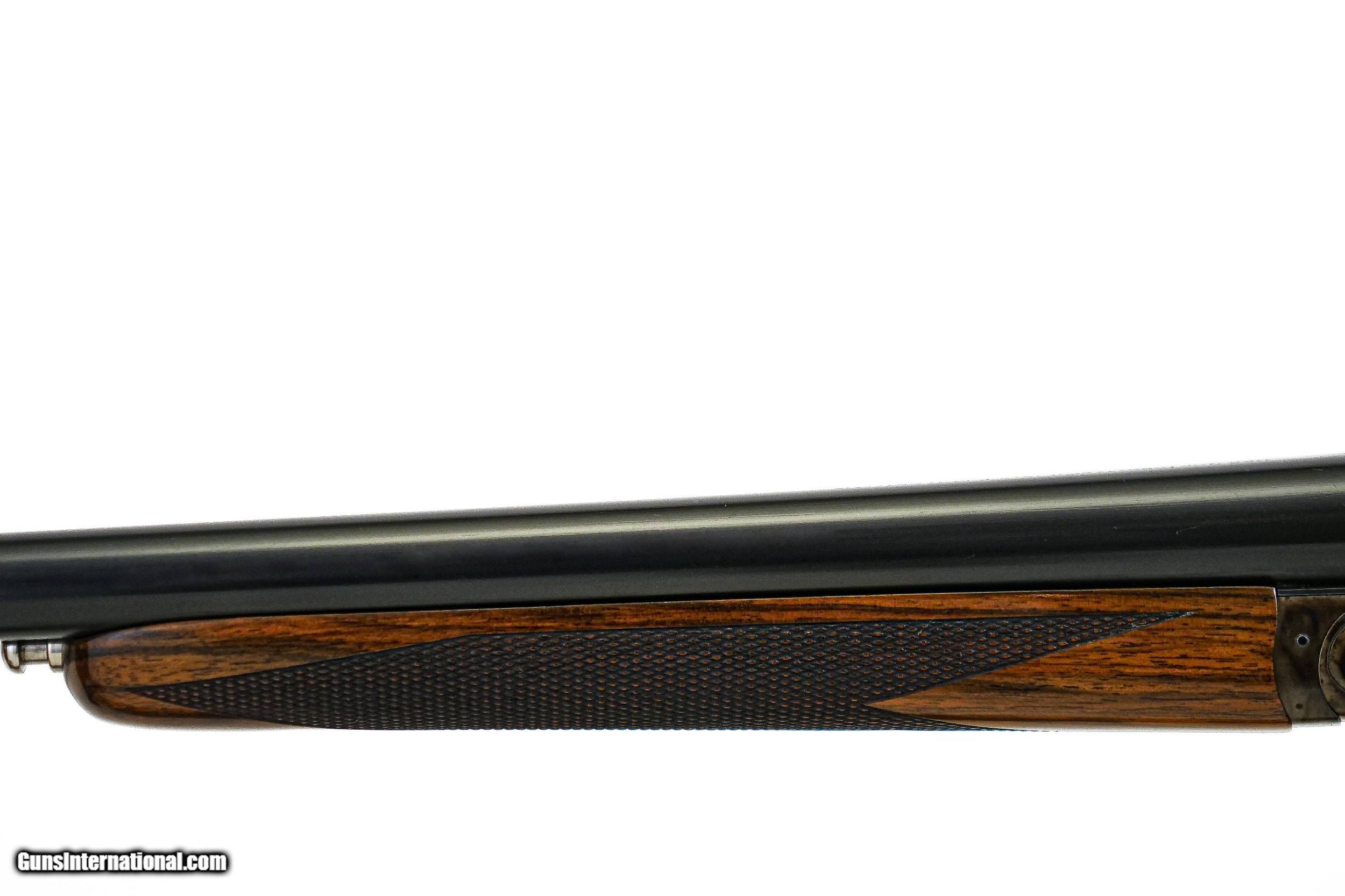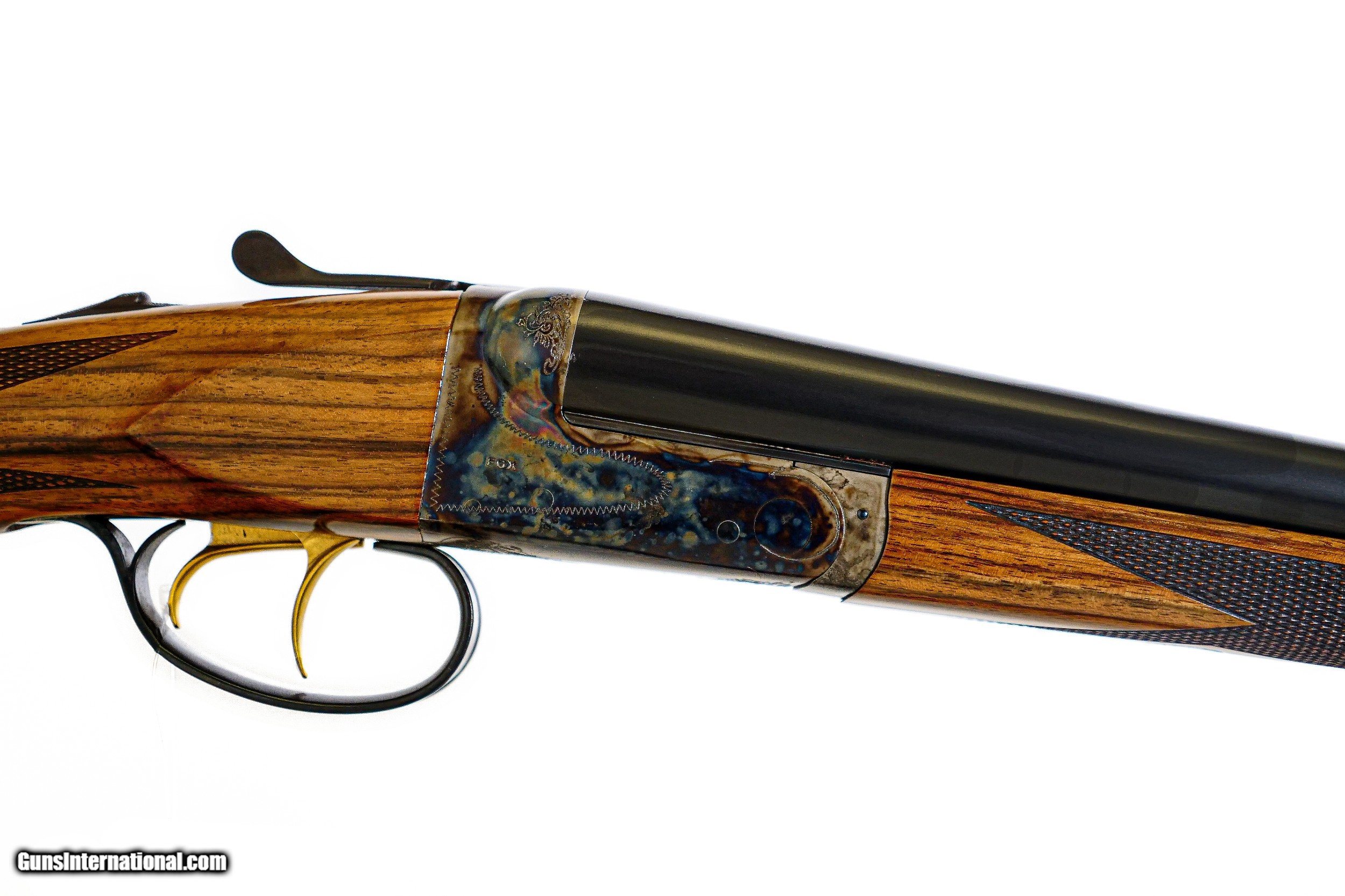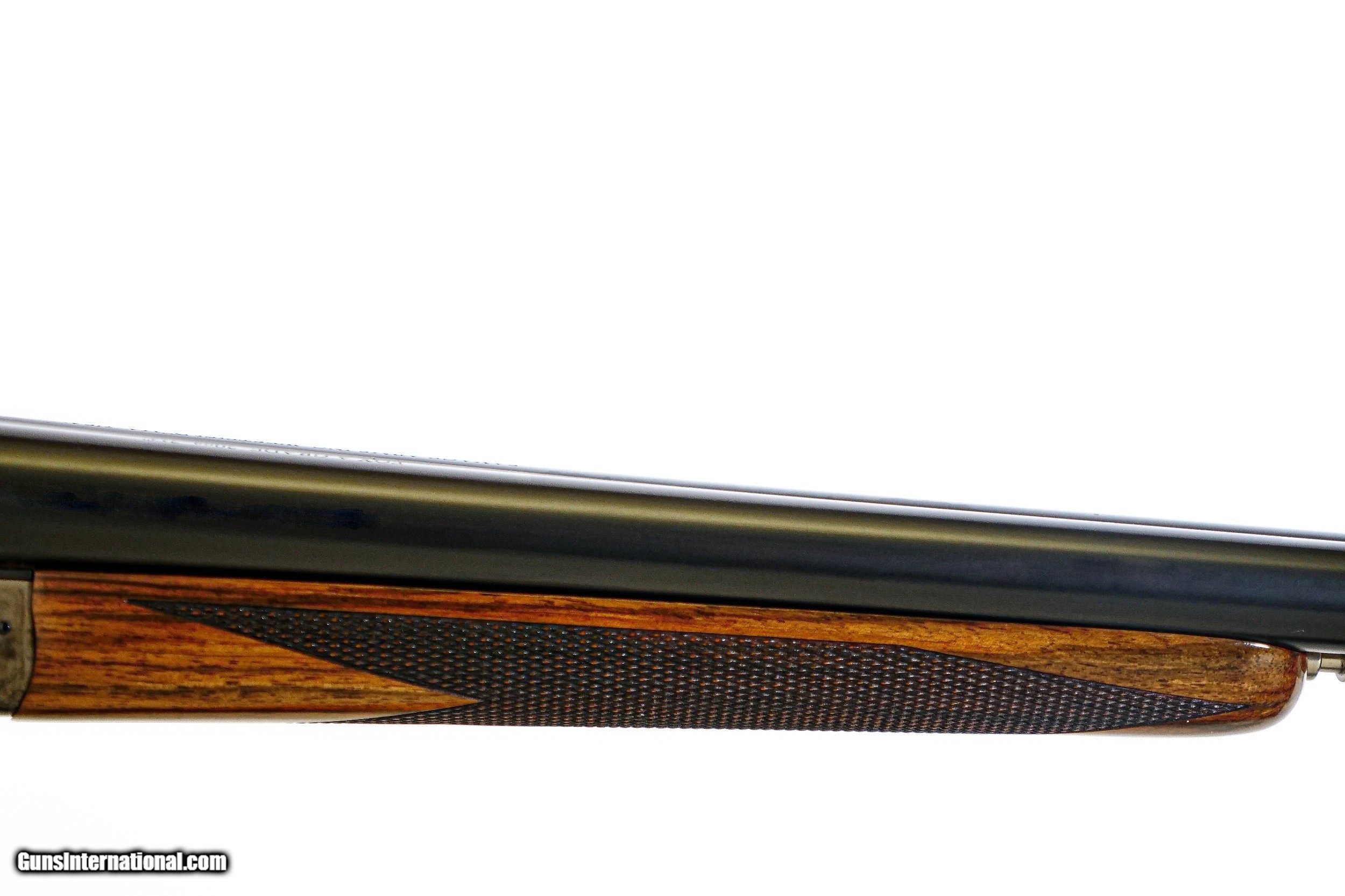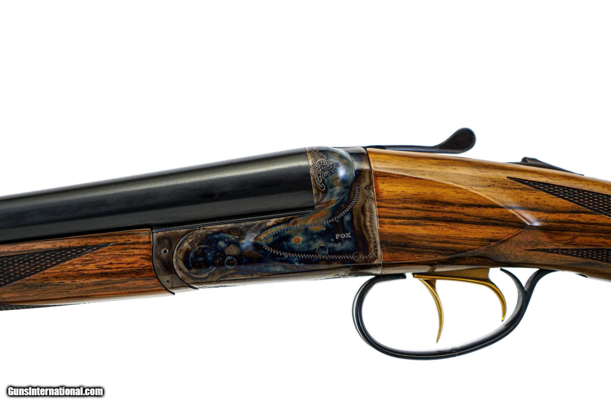 Description: SAVAGE – Fox A Grade, 20ga. 28” Barrels with Factory Screw-in Choke Tubes. Deluxe European walnut straight grip stock, factory serrated butt plate, game rib, gold double triggers, splinter forend, automatic ejectors, A grade engraving over magnificent traditional bone and charcoal case coloring, 2 point checkering, rare opportunity, factory new and unfired, cased, available for immediate delivery. S & H - $50.00. Inv: 51896 6 lbs. 0 oz. 14 ¼” x 1 ½” x 2 ¼” $4,250.00 SOLD |