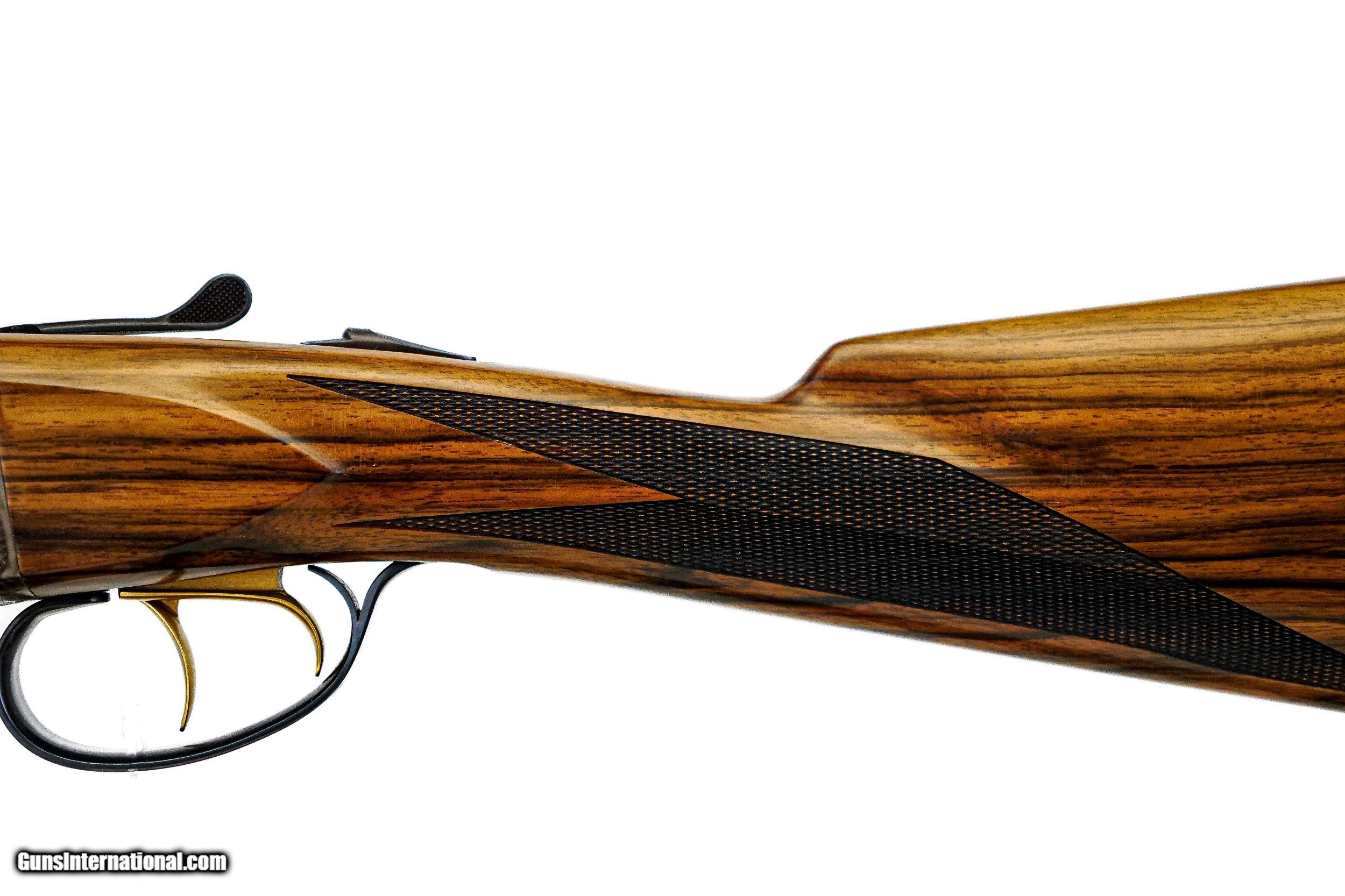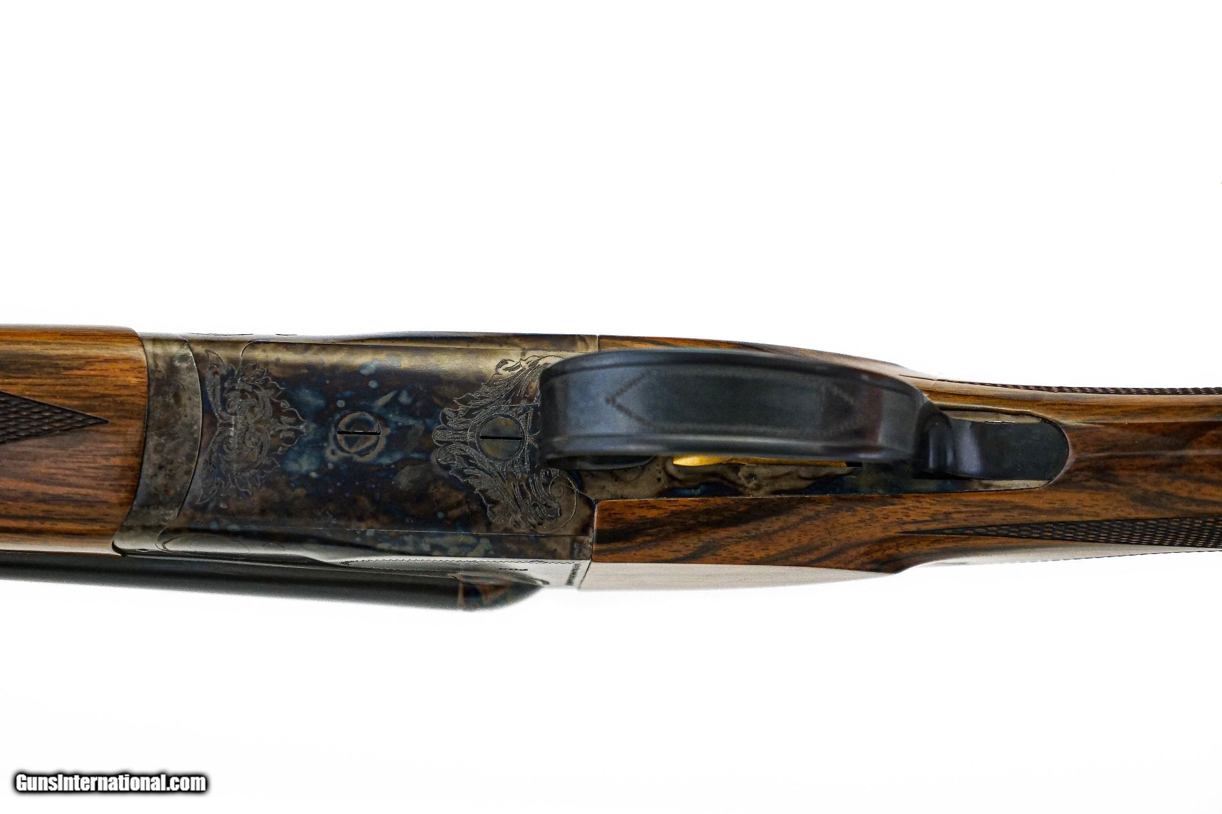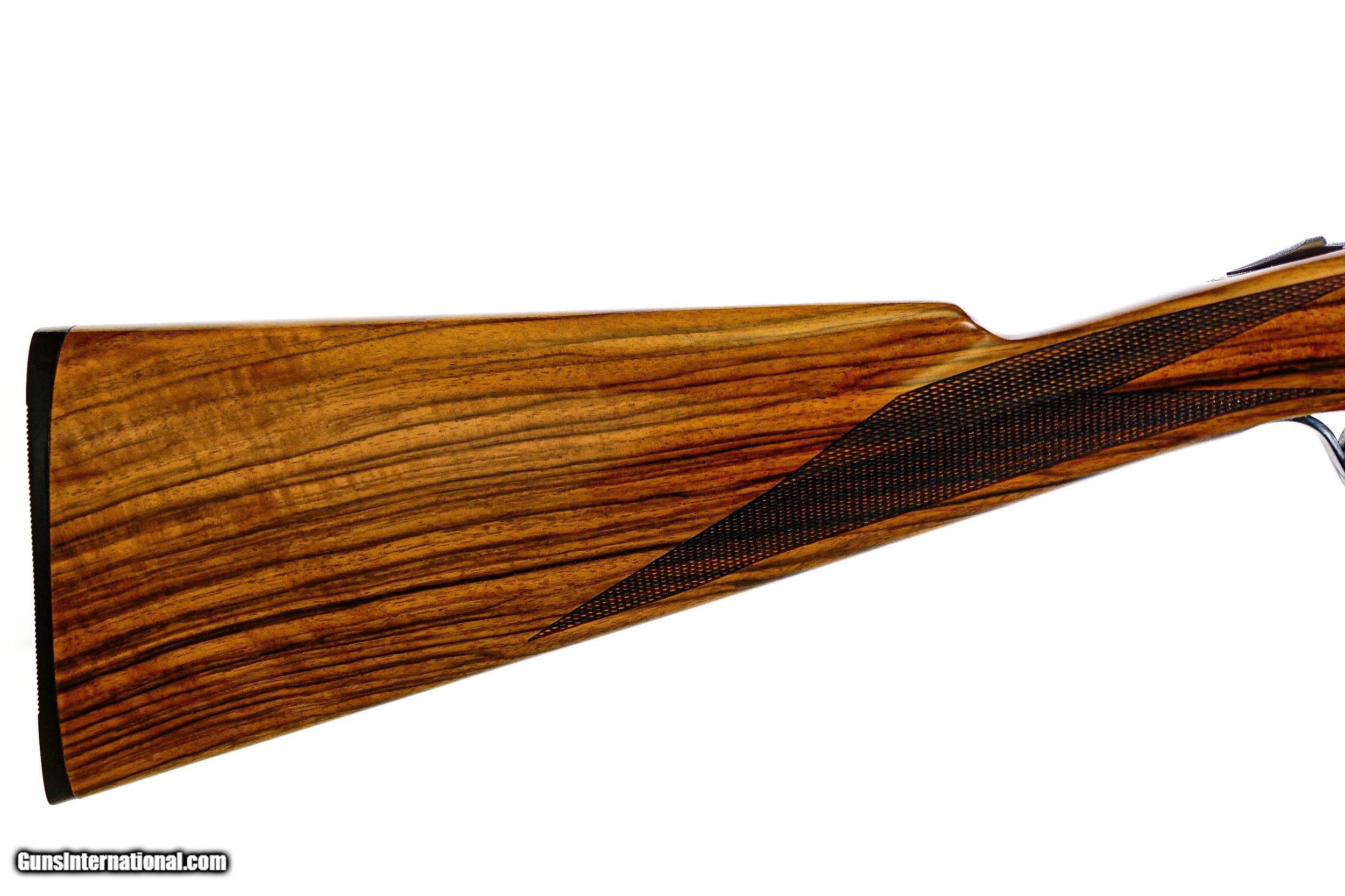 Description: SAVAGE – Fox A Grade, 20ga. 28” Barrels with Factory Screw-in Choke Tubes. Deluxe European walnut straight grip stock, factory serrated butt plate, game rib, gold double triggers, splinter forend, automatic ejectors, A grade engraving over magnificent traditional bone and charcoal case coloring, 2 point checkering, rare opportunity, factory new and unfired, cased, available for immediate delivery. S & H - $50.00. Inv: 51896 6 lbs. 0 oz. 14 ¼” x 1 ½” x 2 ¼” $4,250.00 SOLD |