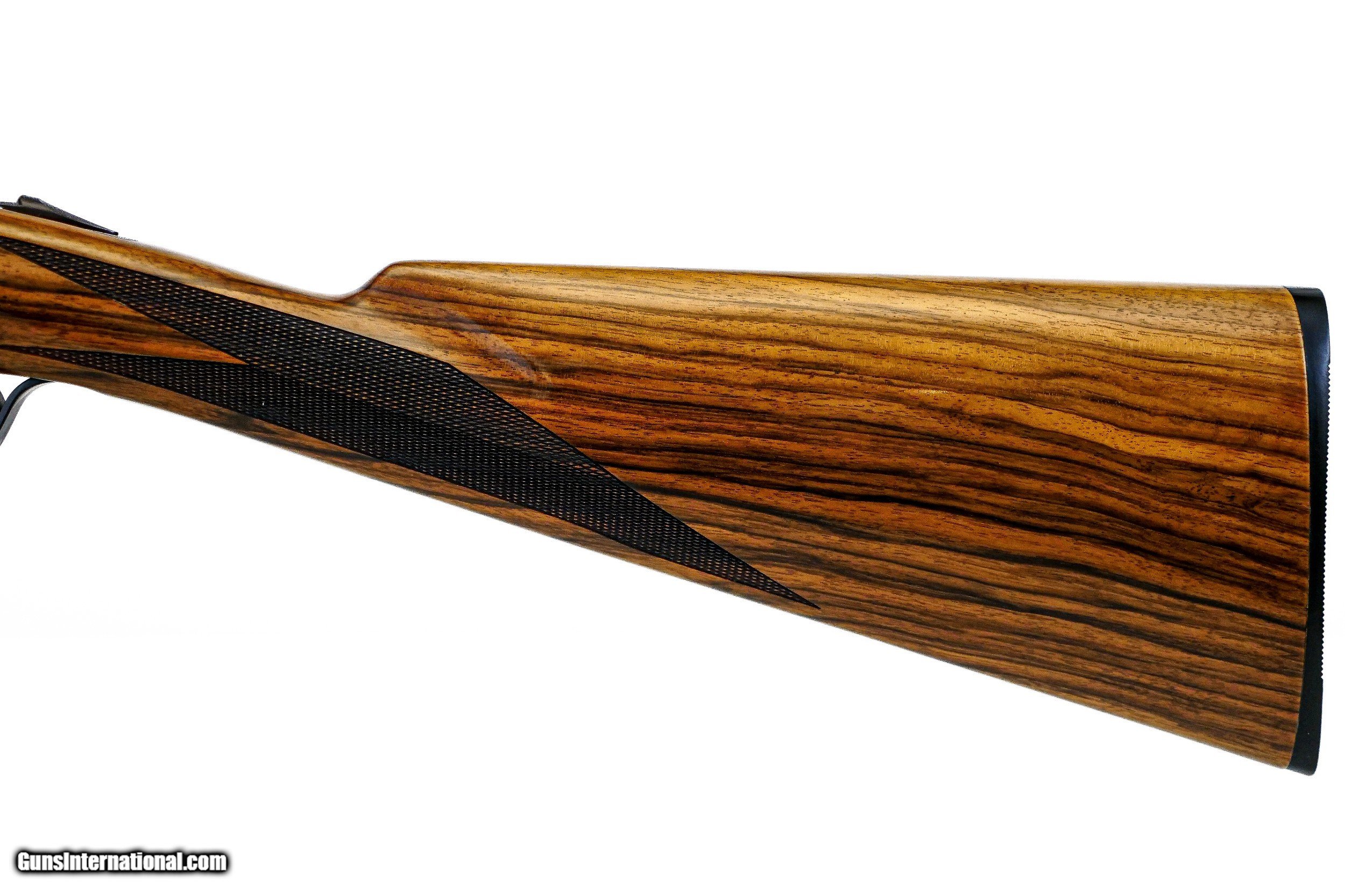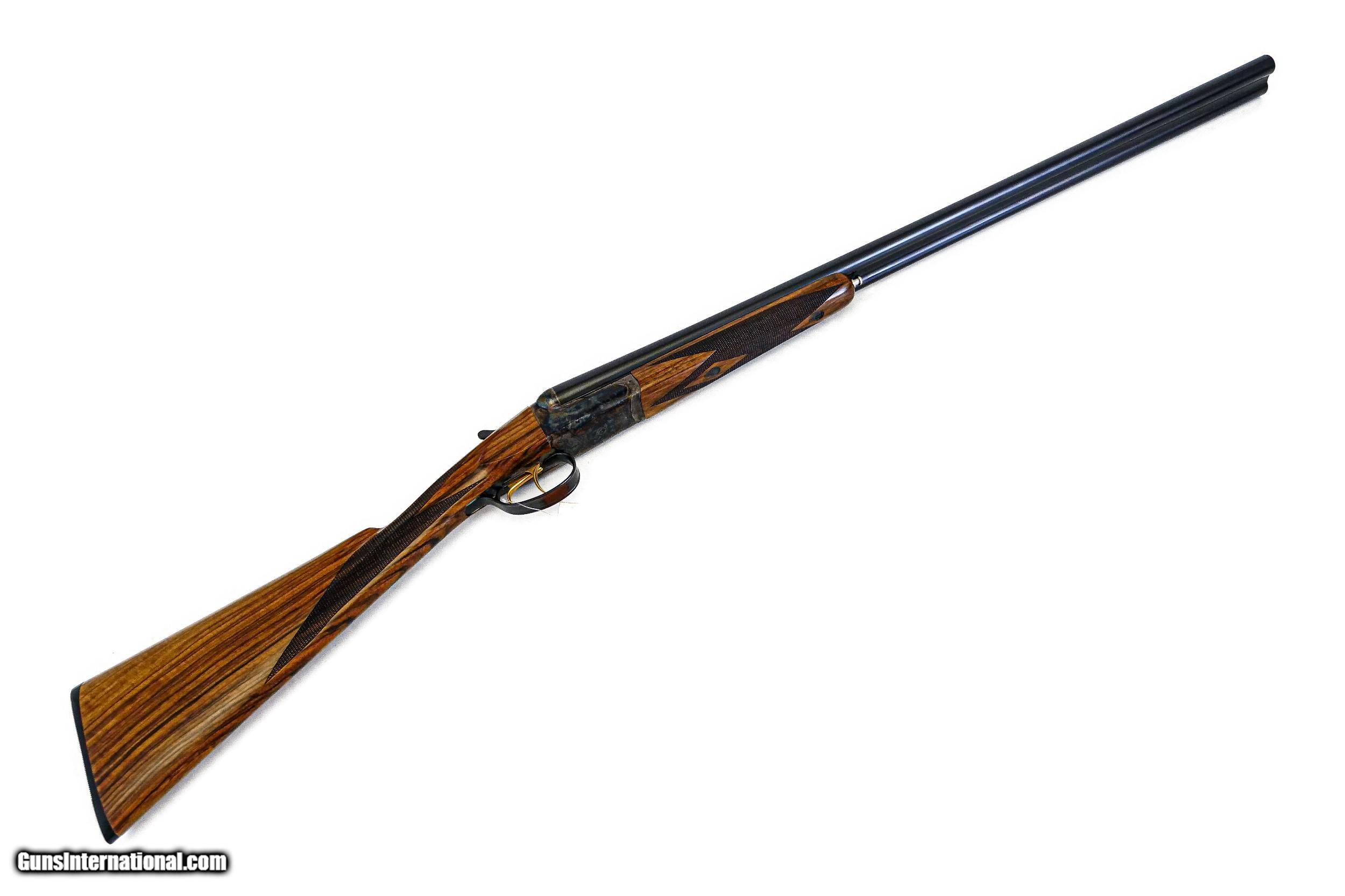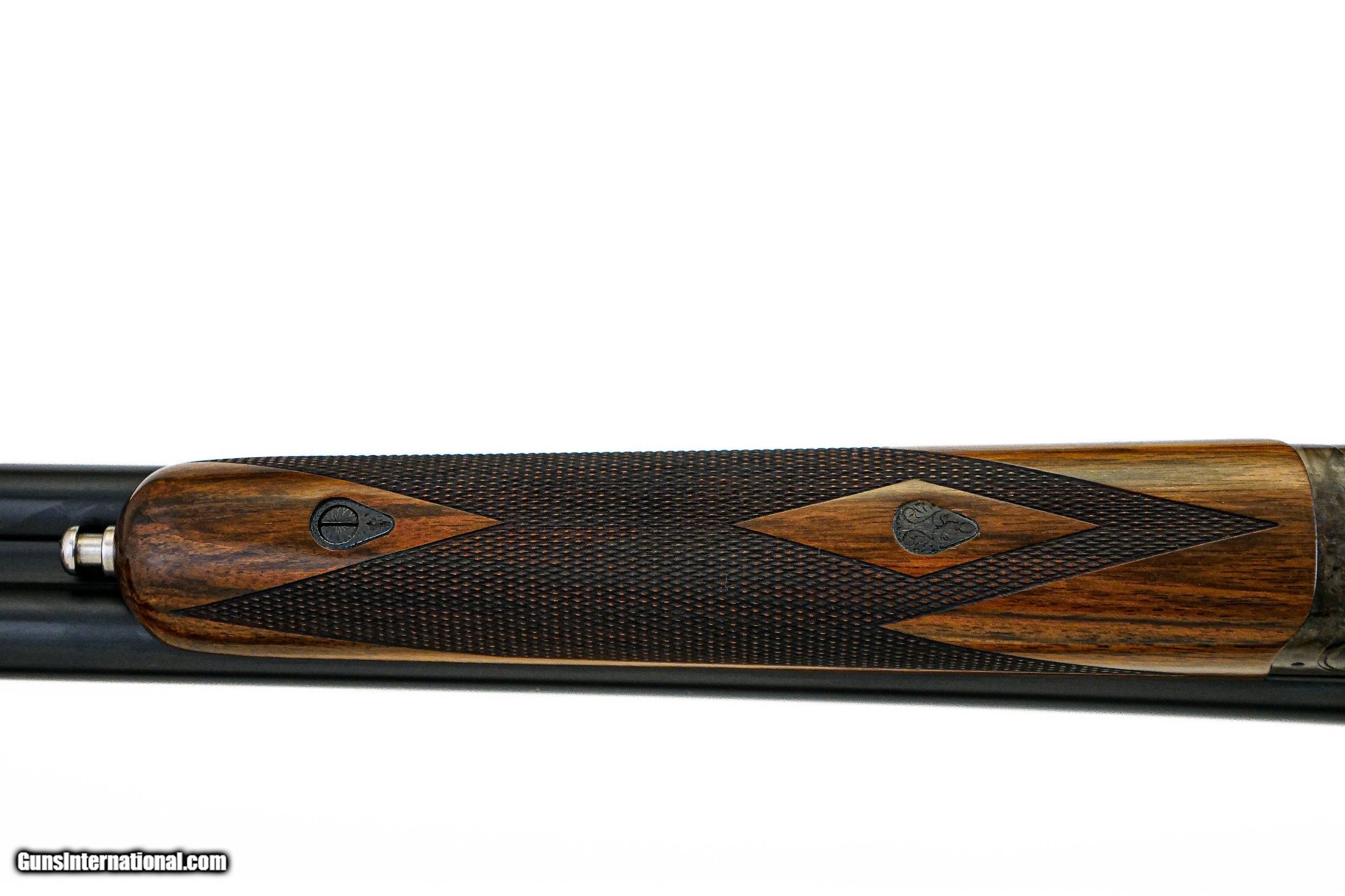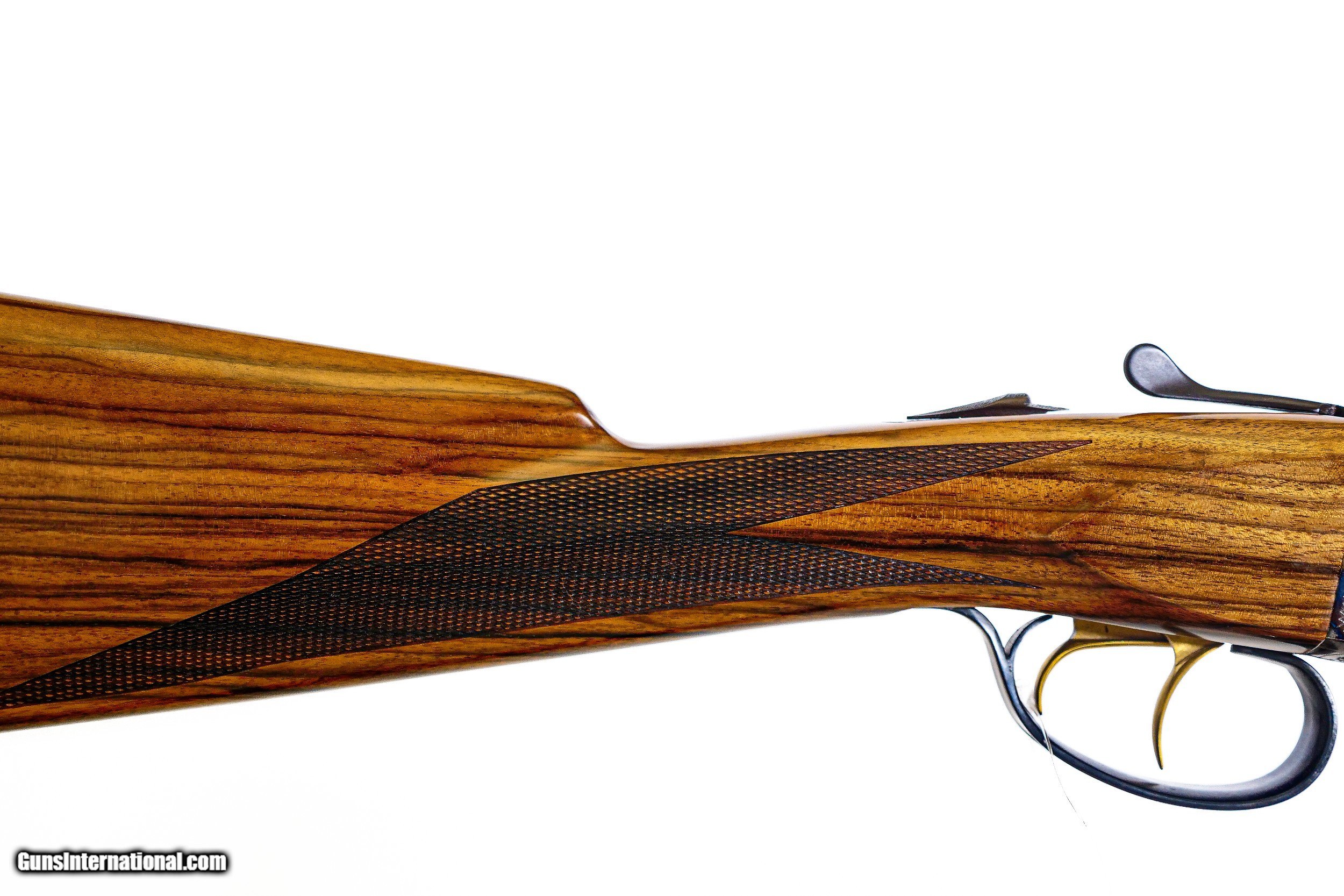 Description: SAVAGE – Fox A Grade, 20ga. 28” Barrels with Factory Screw-in Choke Tubes. Deluxe European walnut straight grip stock, factory serrated butt plate, game rib, gold double triggers, splinter forend, automatic ejectors, A grade engraving over magnificent traditional bone and charcoal case coloring, 2 point checkering, rare opportunity, factory new and unfired, cased, available for immediate delivery. S & H - $50.00. Inv: 51896 6 lbs. 0 oz. 14 ¼” x 1 ½” x 2 ¼” $4,250.00 SOLD |