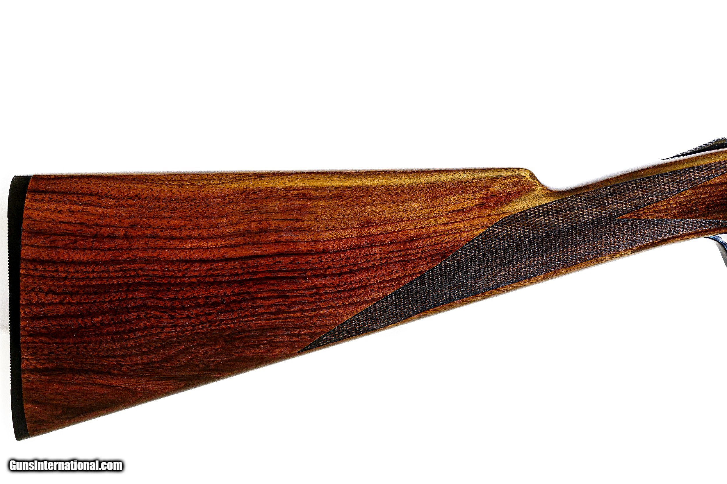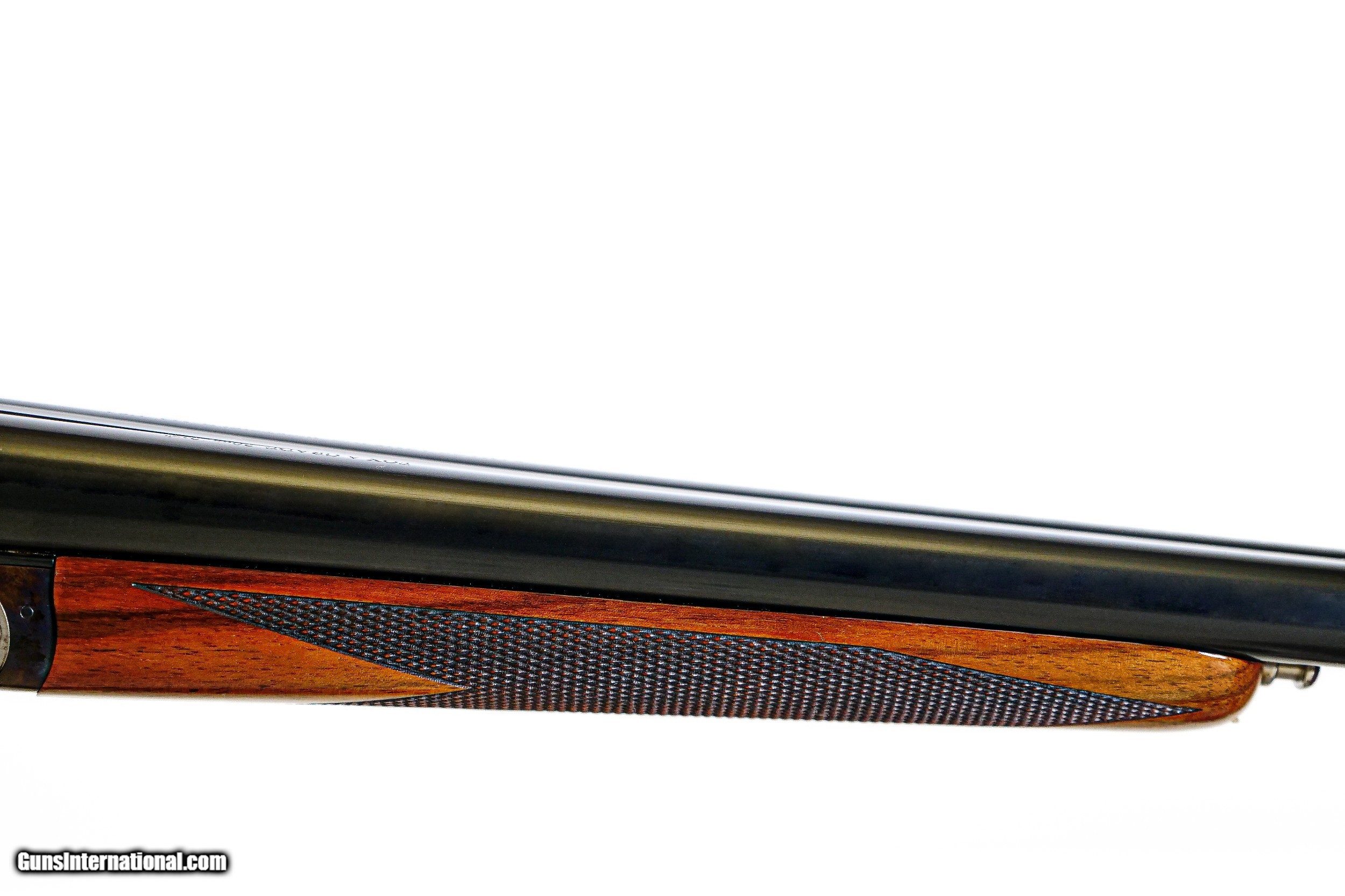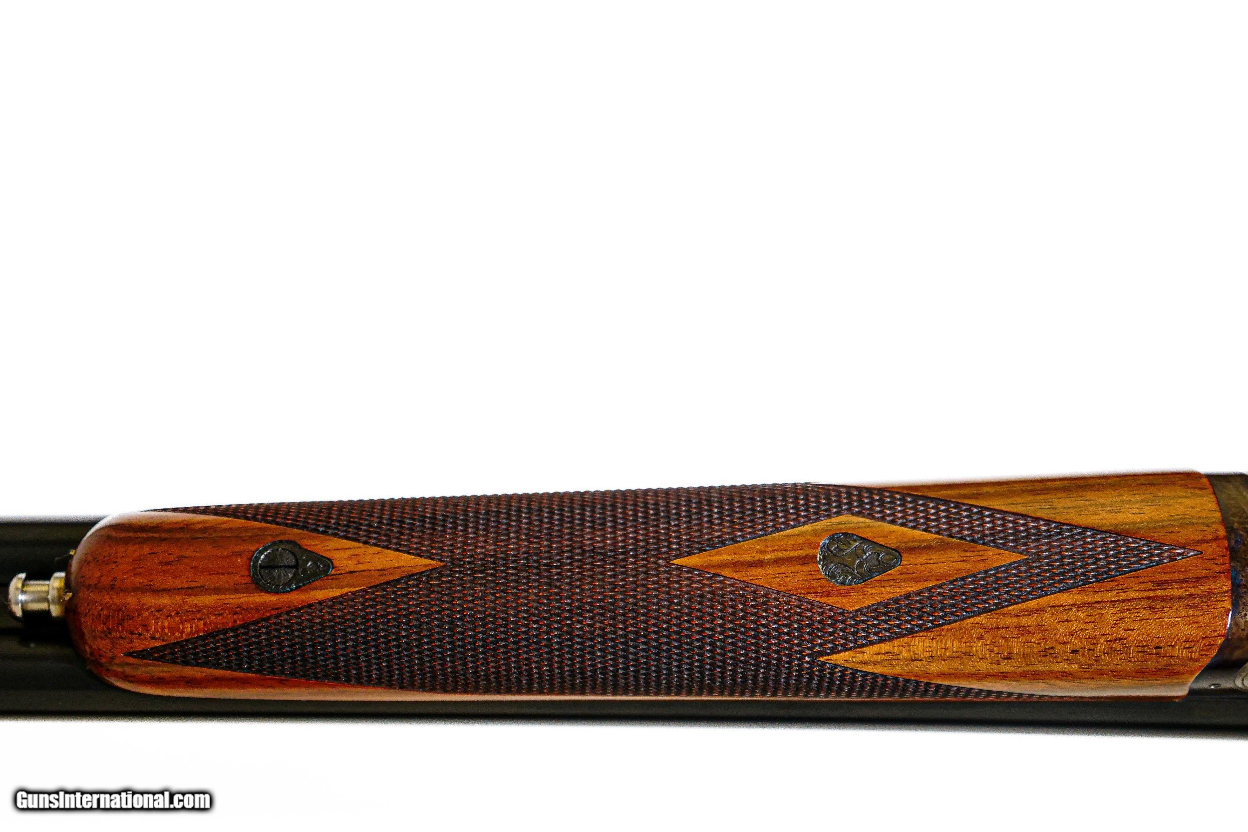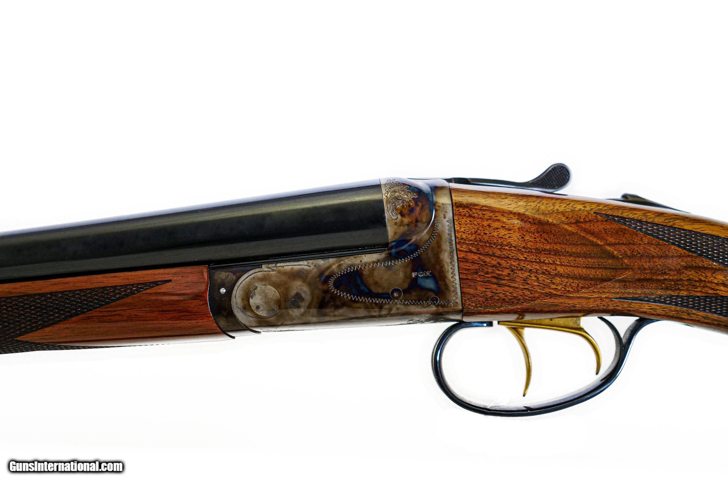 Description: SAVAGE - Fox A Grade, 20ga. 28” Barrels with Factory Screw-in Choke Tubes. Deluxe walnut straight grip stock, factory butt plate, game rib, gold double triggers, splinter forend, automatic ejectors, A grade engraving over magnificent traditional bone and charcoal case coloring, 2 point checkering, rare opportunity, factory new and unfired, cased, available for immediate delivery. S & H - $50.00. Inv: 51895 6 lbs. 0 oz. 14 3/8” x 1 ½” x 2 3/8” $4,250.00 SOLD |